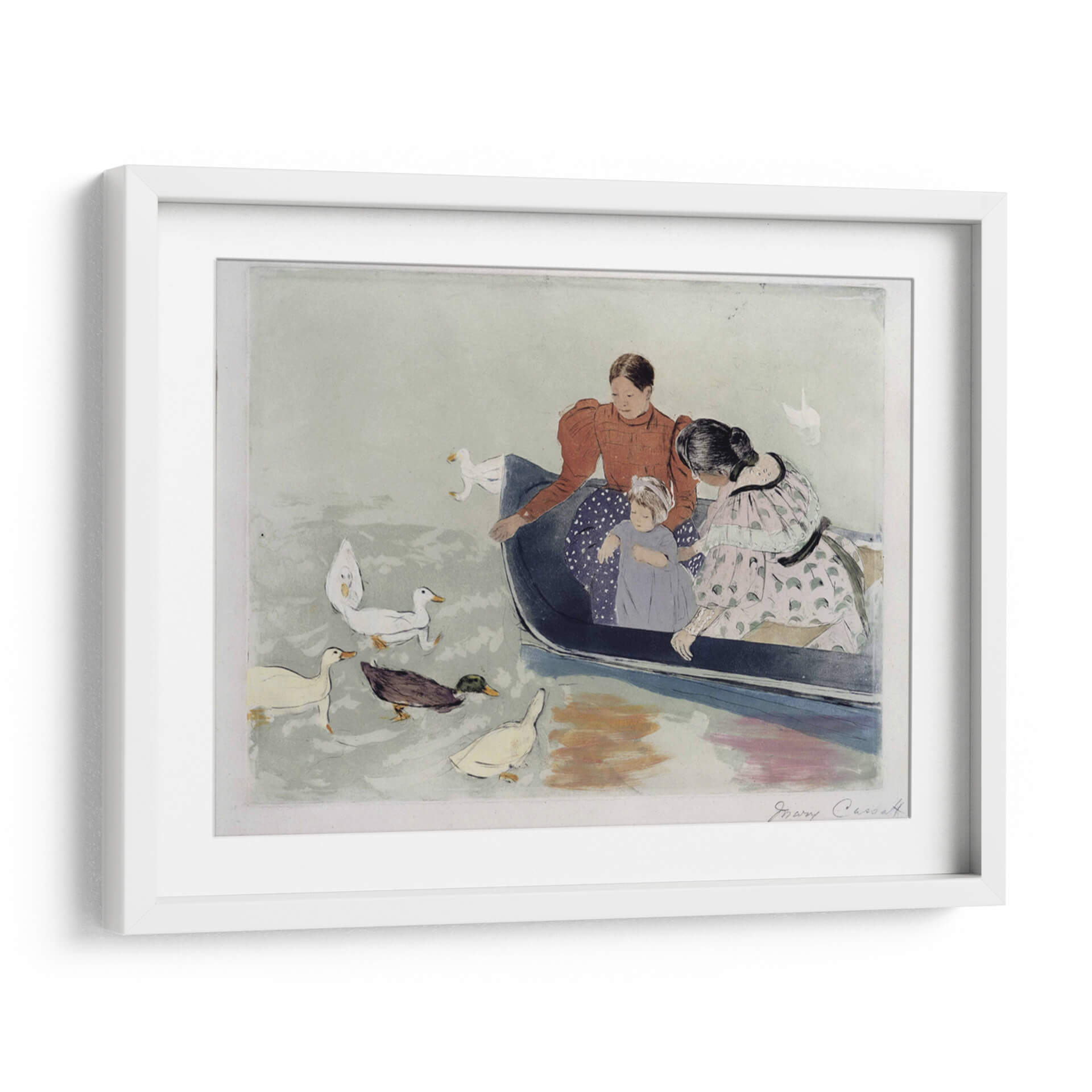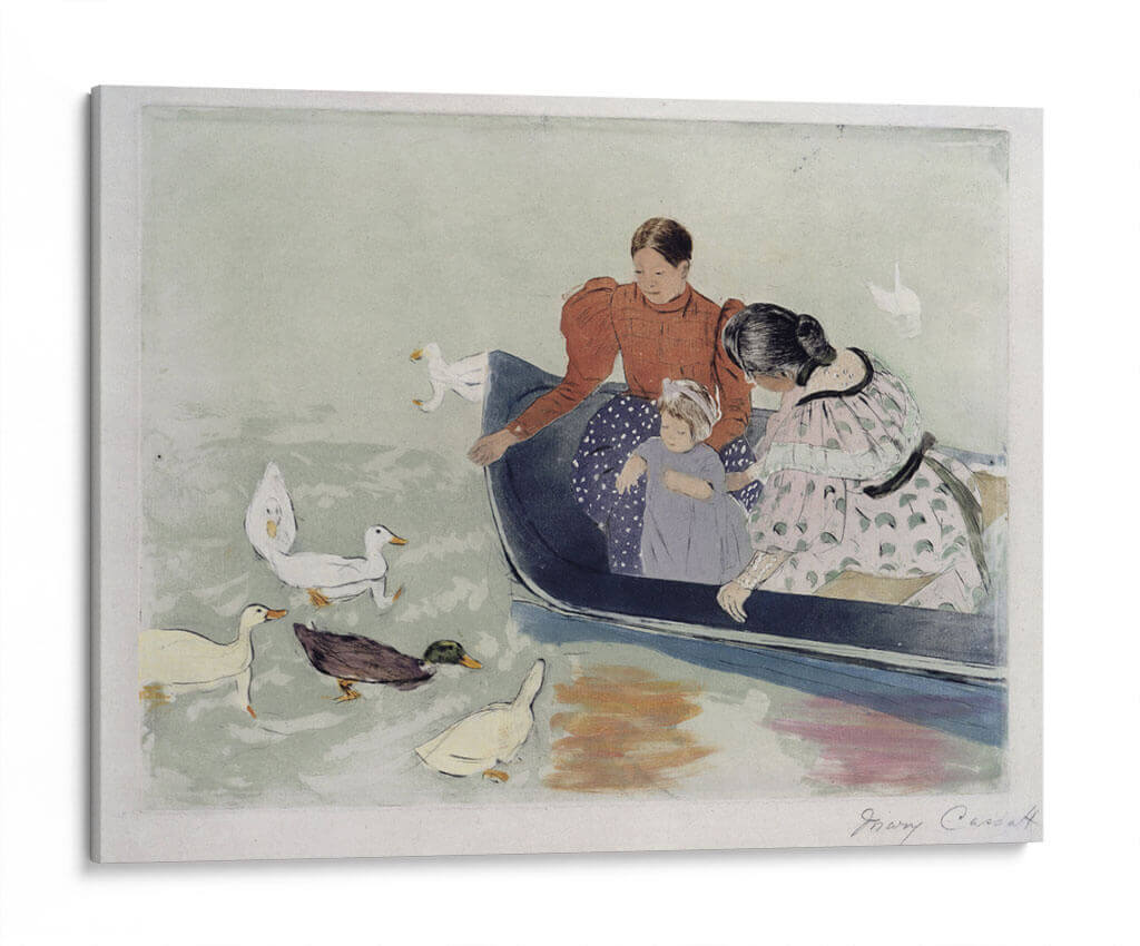 Sumérgete en la serenidad y la ternura con "Alimentando a los Patos", una obra maestra de Mary Cassatt que captura un instante de conexión familiar y la simple belleza de la naturaleza. Este cuadro decorativo presenta a dos mujeres y una niña en una barca, rodeadas por patos en un cuerpo de agua apacible. La paleta de colores, dominada por suaves tonos pastel y toques de colores tierra en el agua, crea una atmósfera de calma y calidez. El estilo impresionista de Cassatt se manifiesta en las pinceladas sueltas y la captura de la luz, dando vida a la escena con una sensibilidad única. La composición, centrada en la interacción entre las figuras y los animales, transmite una sensación de intimidad y asombro infantil. Es una pieza ideal para añadir un toque de dulzura y tranquilidad a un dormitorio, una sala de estar o incluso un espacio infantil. "Alimentando a los Patos" no es solo una decoración de pared, sino una ventana a un momento de paz y conexión humana con el entorno natural, perfecto para quienes buscan arte que inspire calma y refleje la belleza de la vida cotidiana. Añade esta encantadora obra a tu hogar y siente la paz que irradia.