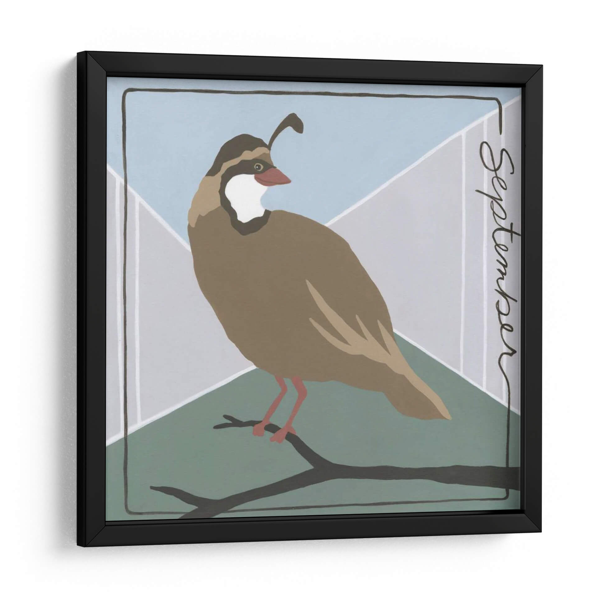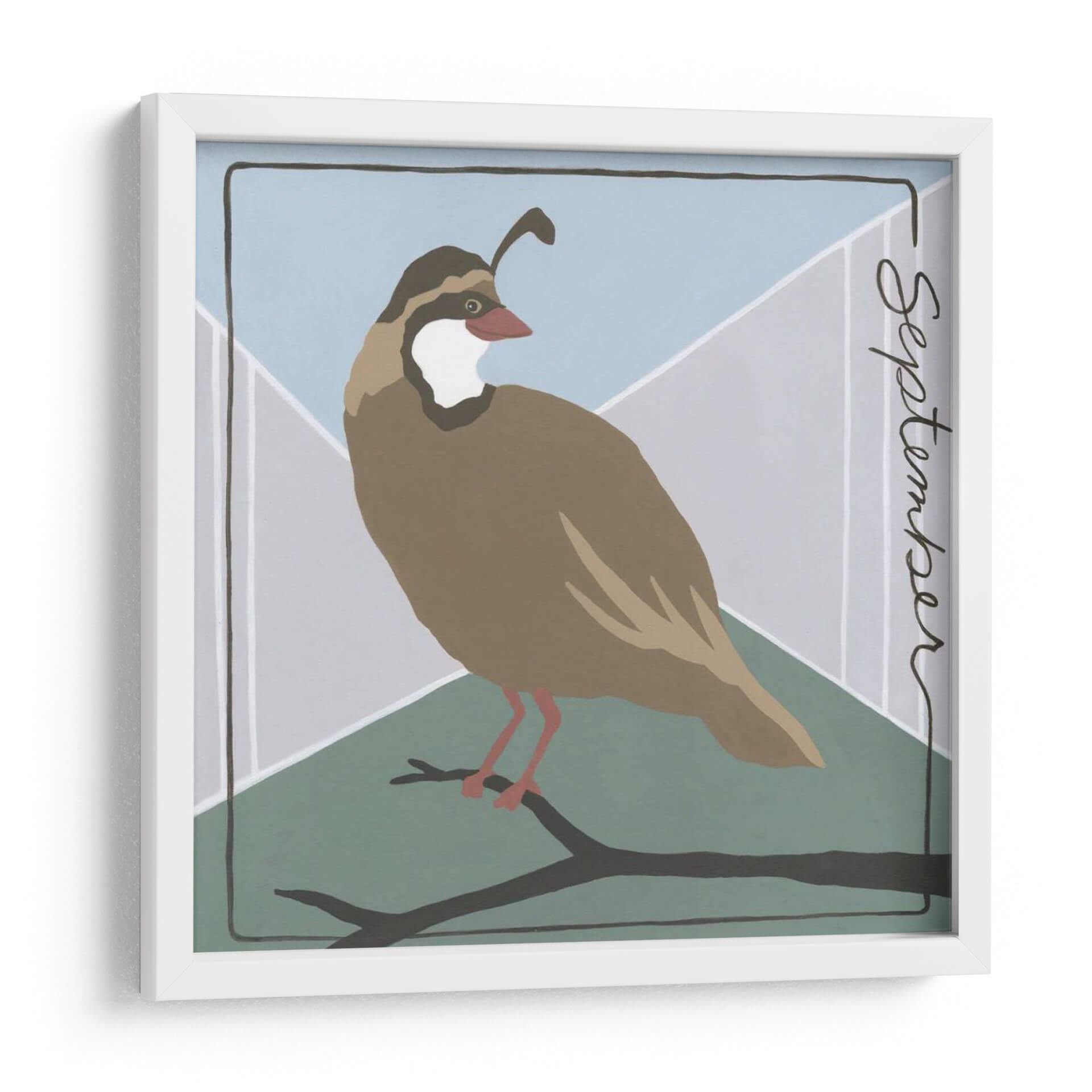 Inmortaliza la serena belleza de la naturaleza con "Avian Septiembre", una cautivadora obra de arte de Megan Meagher. Este cuadro decorativo presenta un codorniz detallado posado elegantemente sobre una rama, con el nombre "September" elegantemente escrito a un lado. La paleta de colores, dominada por tonos tierra, azules suaves y grises apagados, crea una atmósfera de tranquilidad y conexión con el mundo natural. Las formas geométricas sutiles en el fondo añaden un toque moderno a esta pieza inspirada en la fauna. "Avian Septiembre" es perfecta para añadir un toque de sofisticación y calma a cualquier espacio, ya sea un hogar acogedor o una oficina moderna. Su estilo único, que combina elementos de la ilustración de la naturaleza con un diseño contemporáneo, la convierte en una adición versátil a diversas decoraciones. Imagina este cuadro como un punto focal que invita a la contemplación y aporta un aire de elegancia discreta a tus paredes. Ideal para amantes de las aves, la naturaleza y el arte que buscan una pieza con carácter y estilo.