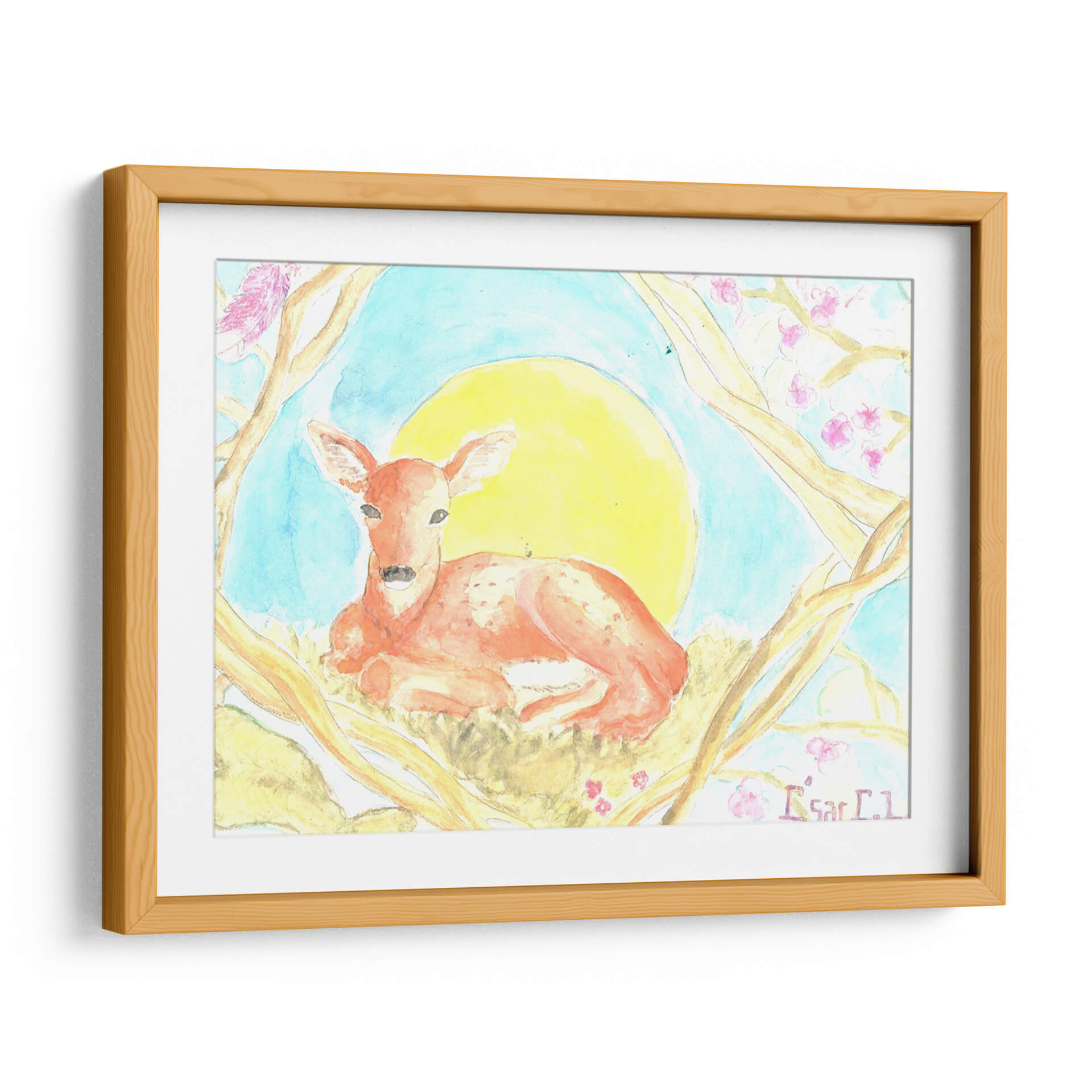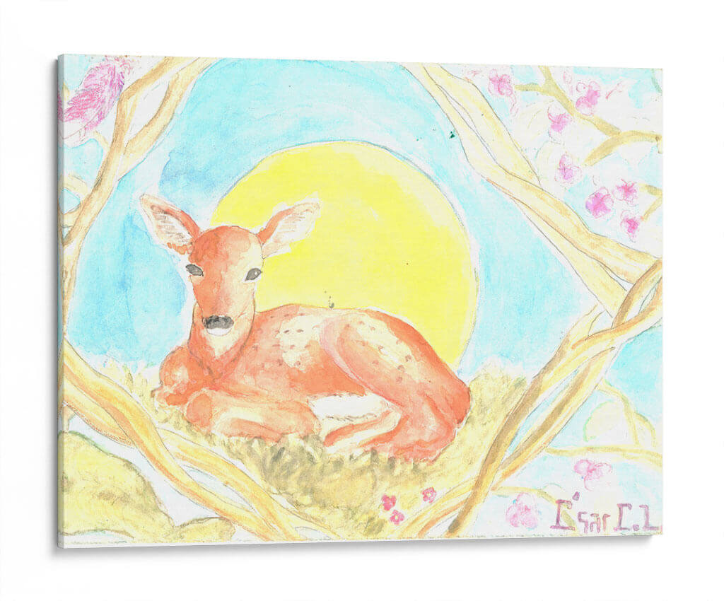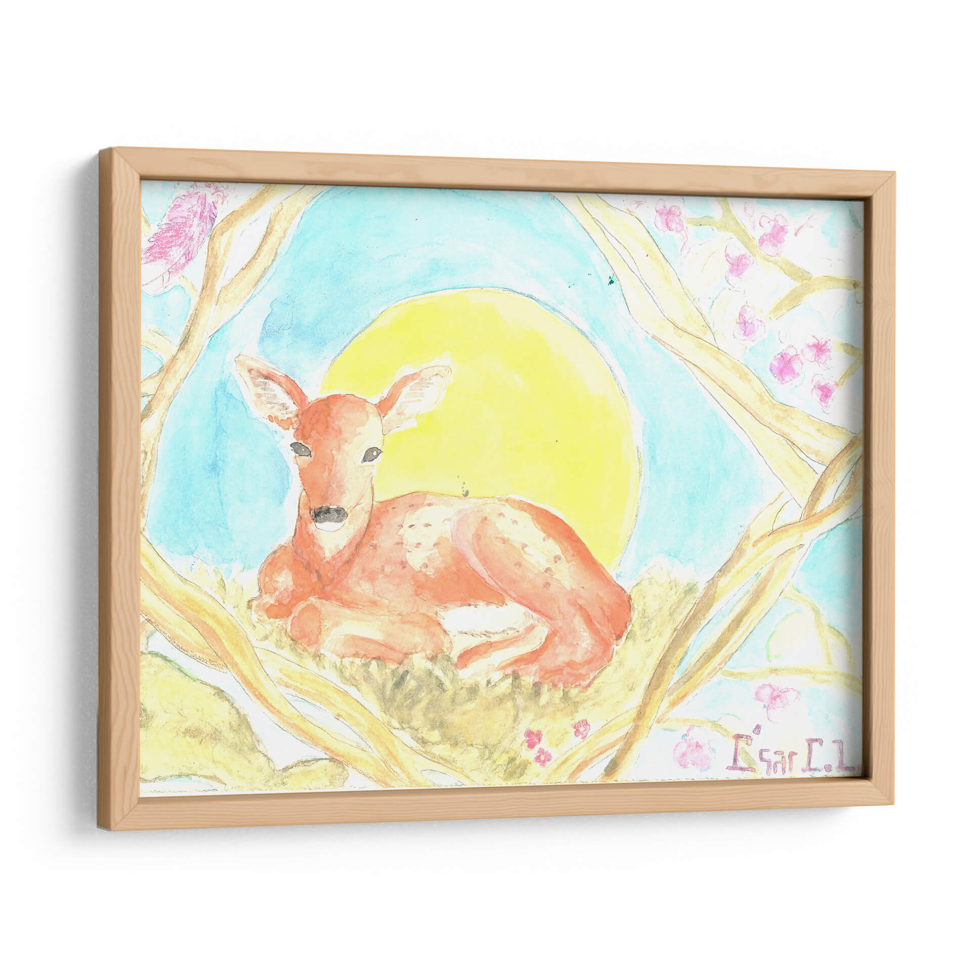Sumérgete en la dulzura y la tranquilidad con "Busco refugio", una obra de arte original que captura la inocencia de un cervatillo acurrucado en un entorno natural idílico. El artista César Cristóbal Lorenzo, a través de la "Casa de la Amistad", nos presenta una pieza con una paleta de colores cálidos y vibrantes, dominada por el amarillo del sol poniente y el azul sereno del cielo, contrastando con los tonos tierra y ocres del entorno y el naranja rojizo del tierno animal. La composición, enmarcada por ramas delicadas y flores de cerezo, crea una sensación de protección y calidez, invitando a la contemplación y la paz. Este cuadro decorativo es ideal para añadir un toque de serenidad y naturaleza a cualquier espacio, ya sea un dormitorio infantil, una sala de estar acogedora o un rincón de lectura. Su estilo, que evoca una mezcla de realismo tierno y una pincelada suave, lo convierte en una pieza versátil para una decoración que busca transmitir calma, armonía y un vínculo profundo con el mundo natural. "Busco refugio" no es solo una imagen, es una invitación a encontrar tu propio santuario de paz.