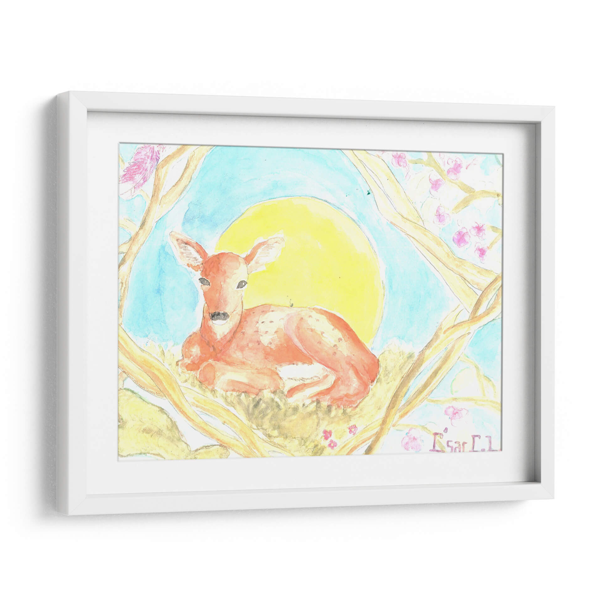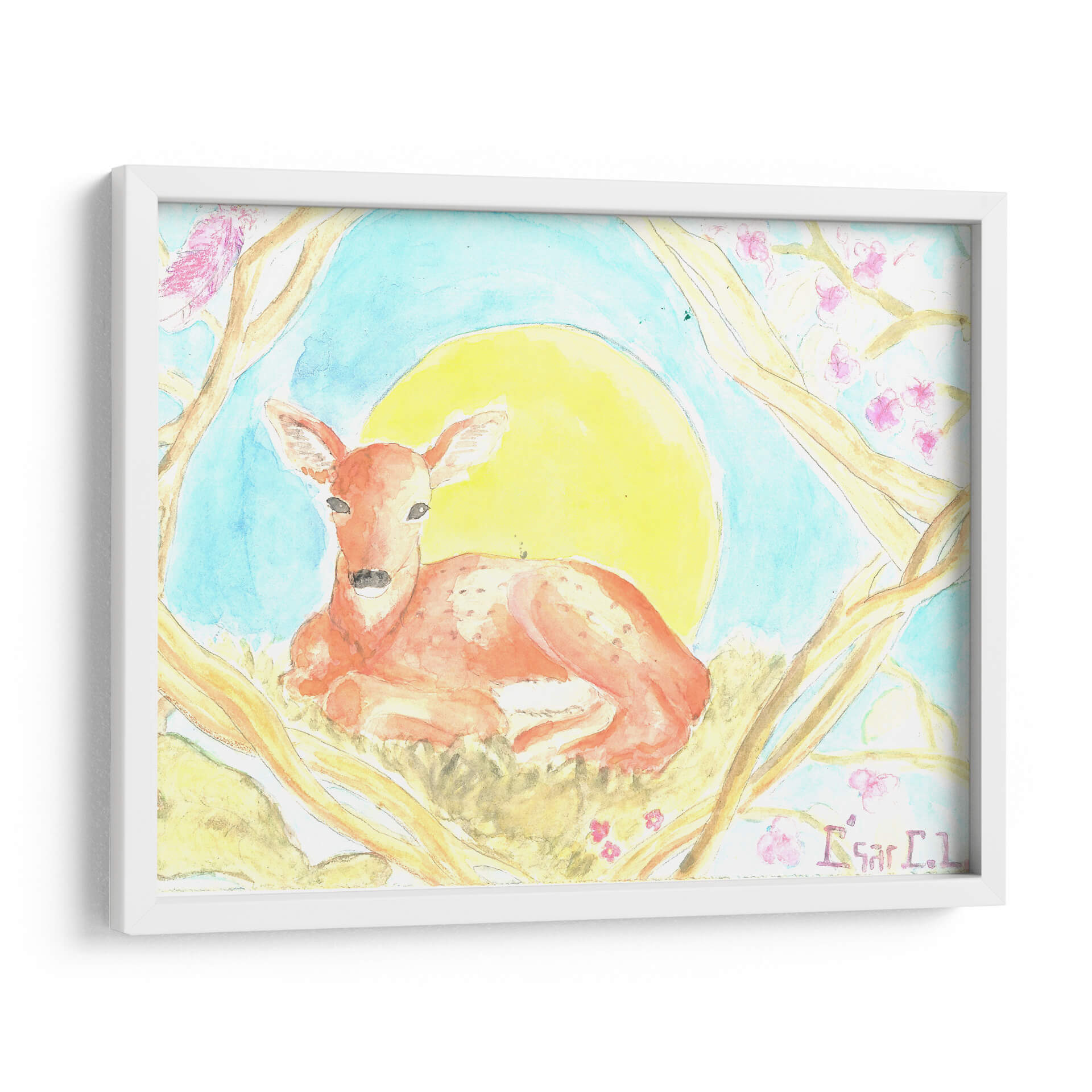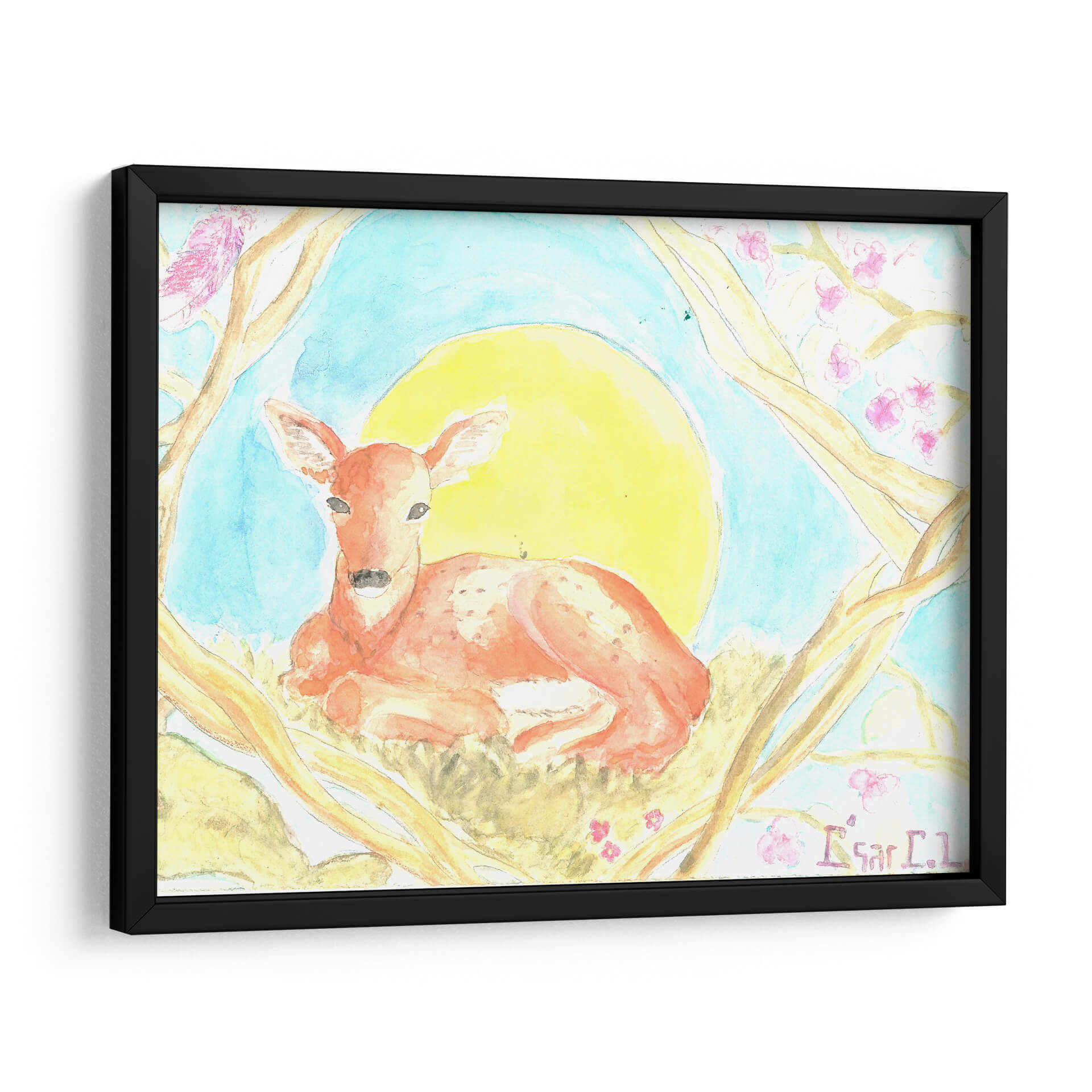 Sumérgete en la dulzura y la tranquilidad con "Busco refugio", una obra de arte original que captura la inocencia de un cervatillo acurrucado en un entorno natural idílico. El artista César Cristóbal Lorenzo, a través de la "Casa de la Amistad", nos presenta una pieza con una paleta de colores cálidos y vibrantes, dominada por el amarillo del sol poniente y el azul sereno del cielo, contrastando con los tonos tierra y ocres del entorno y el naranja rojizo del tierno animal. La composición, enmarcada por ramas delicadas y flores de cerezo, crea una sensación de protección y calidez, invitando a la contemplación y la paz. Este cuadro decorativo es ideal para añadir un toque de serenidad y naturaleza a cualquier espacio, ya sea un dormitorio infantil, una sala de estar acogedora o un rincón de lectura. Su estilo, que evoca una mezcla de realismo tierno y una pincelada suave, lo convierte en una pieza versátil para una decoración que busca transmitir calma, armonía y un vínculo profundo con el mundo natural. "Busco refugio" no es solo una imagen, es una invitación a encontrar tu propio santuario de paz.