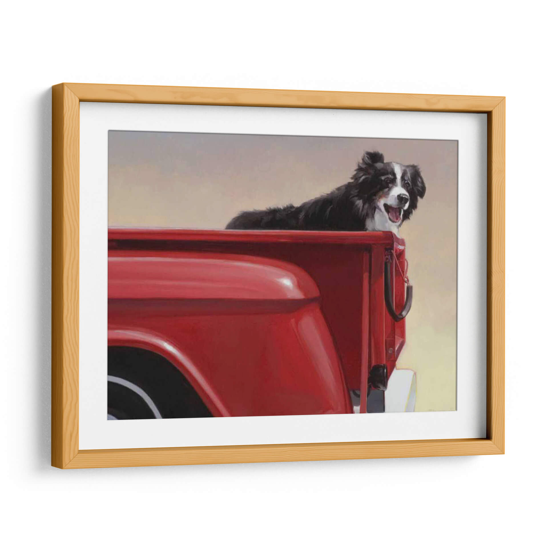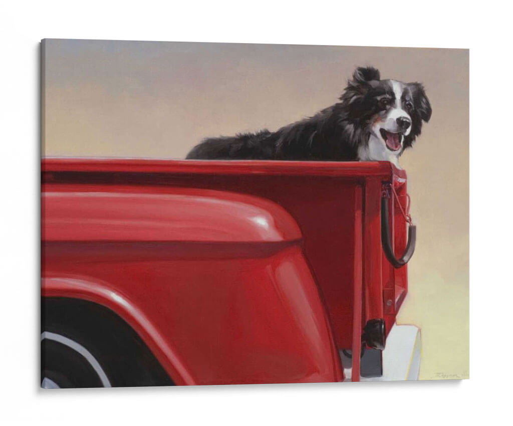 Captura la alegría y la aventura con este encantador cuadro decorativo que presenta a un perro Border Collie expectante, asomándose desde la parte trasera de una vibrante camioneta roja. La obra de arte, titulada "Clásico" por Julie T. Chapman, evoca una sensación de nostalgia y camaradería, perfecta para amantes de los animales y entusiastas de los vehículos clásicos. Los colores cálidos y el detallado realismo de la pintura invitan a la contemplación, mientras que la expresión vivaz del perro añade un toque de personalidad y calidez al espacio. Esta pieza es ideal para añadir un punto de interés y carácter a salas de estar, estudios o incluso oficinas, creando un ambiente acogedor y lleno de vida. Su composición equilibra la fuerza del vehículo con la dulzura del animal, resultando en una obra visualmente atractiva que seguramente generará conversaciones. Añade un toque de encanto rústico y alegría a tu decoración con este impresionante cuadro decorativo que celebra la lealtad y el espíritu libre de nuestros compañeros caninos.