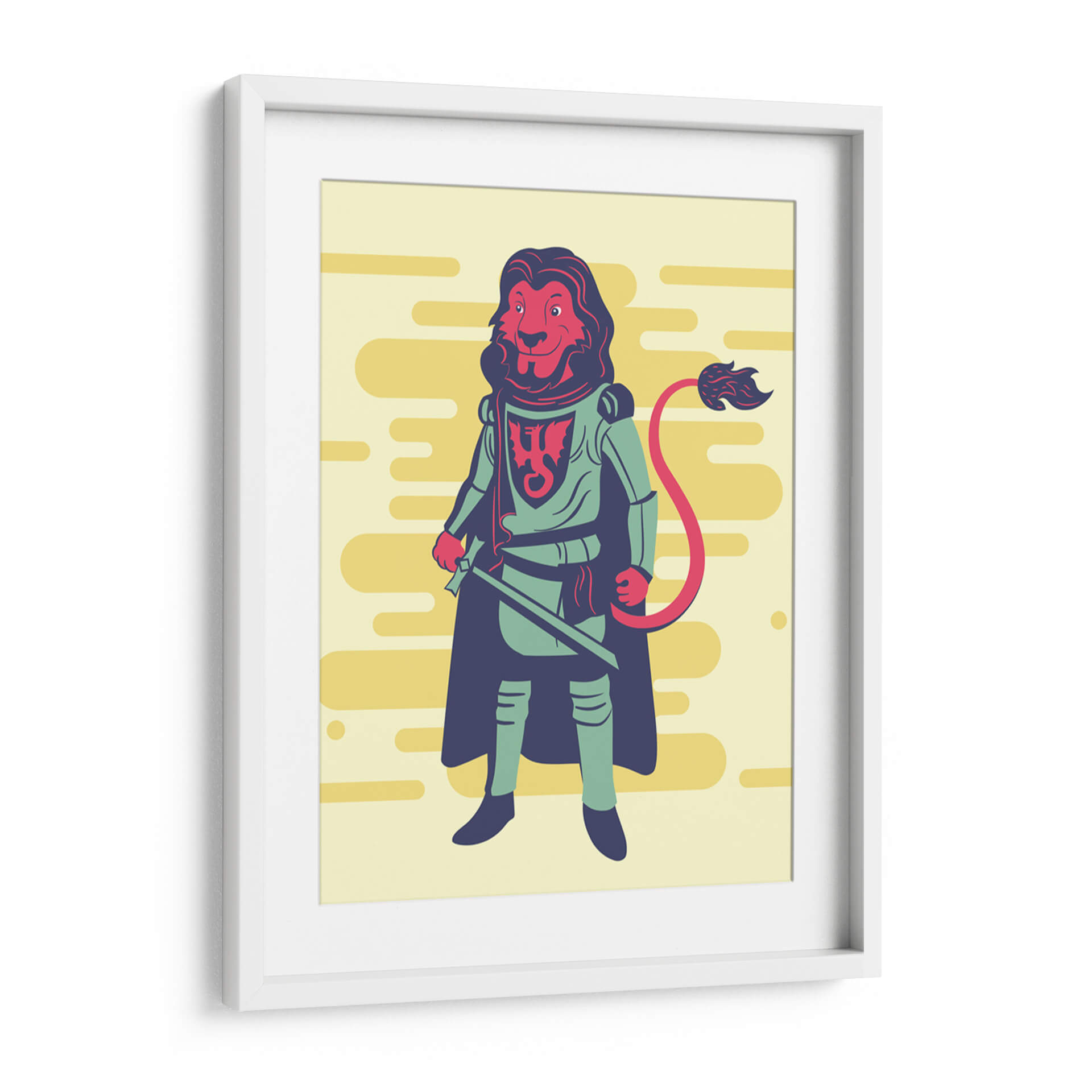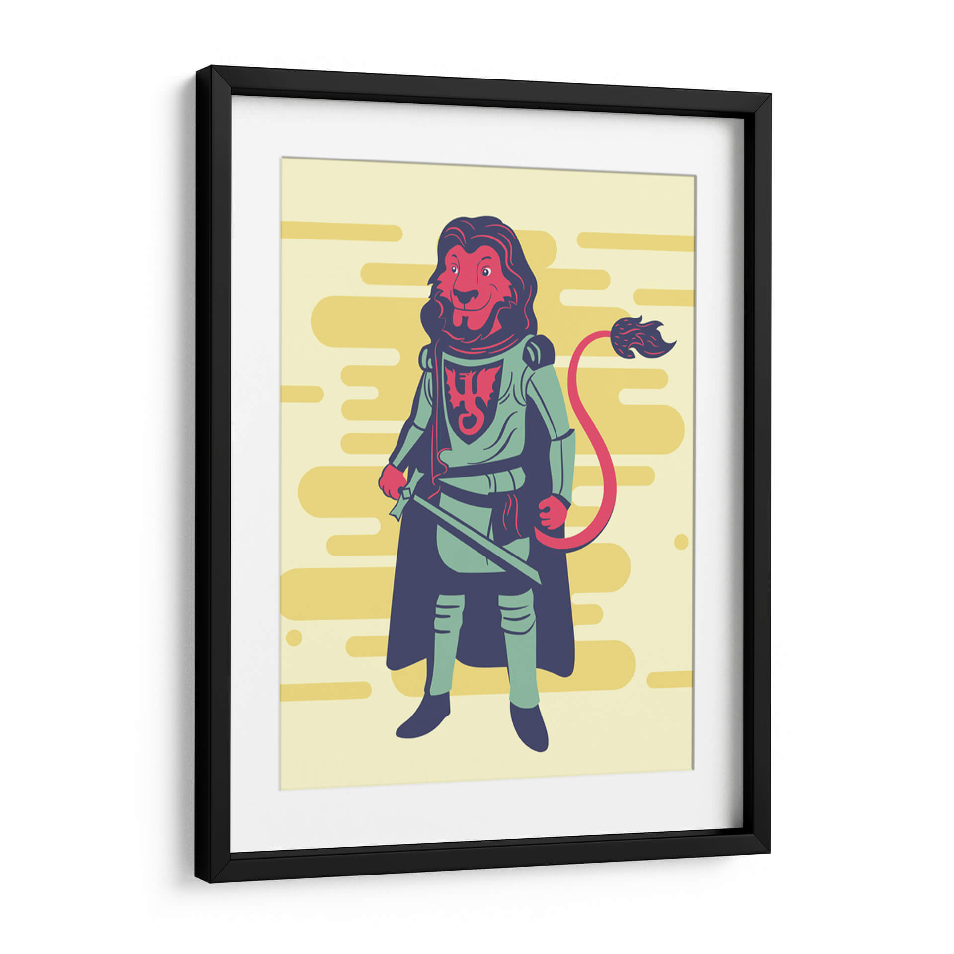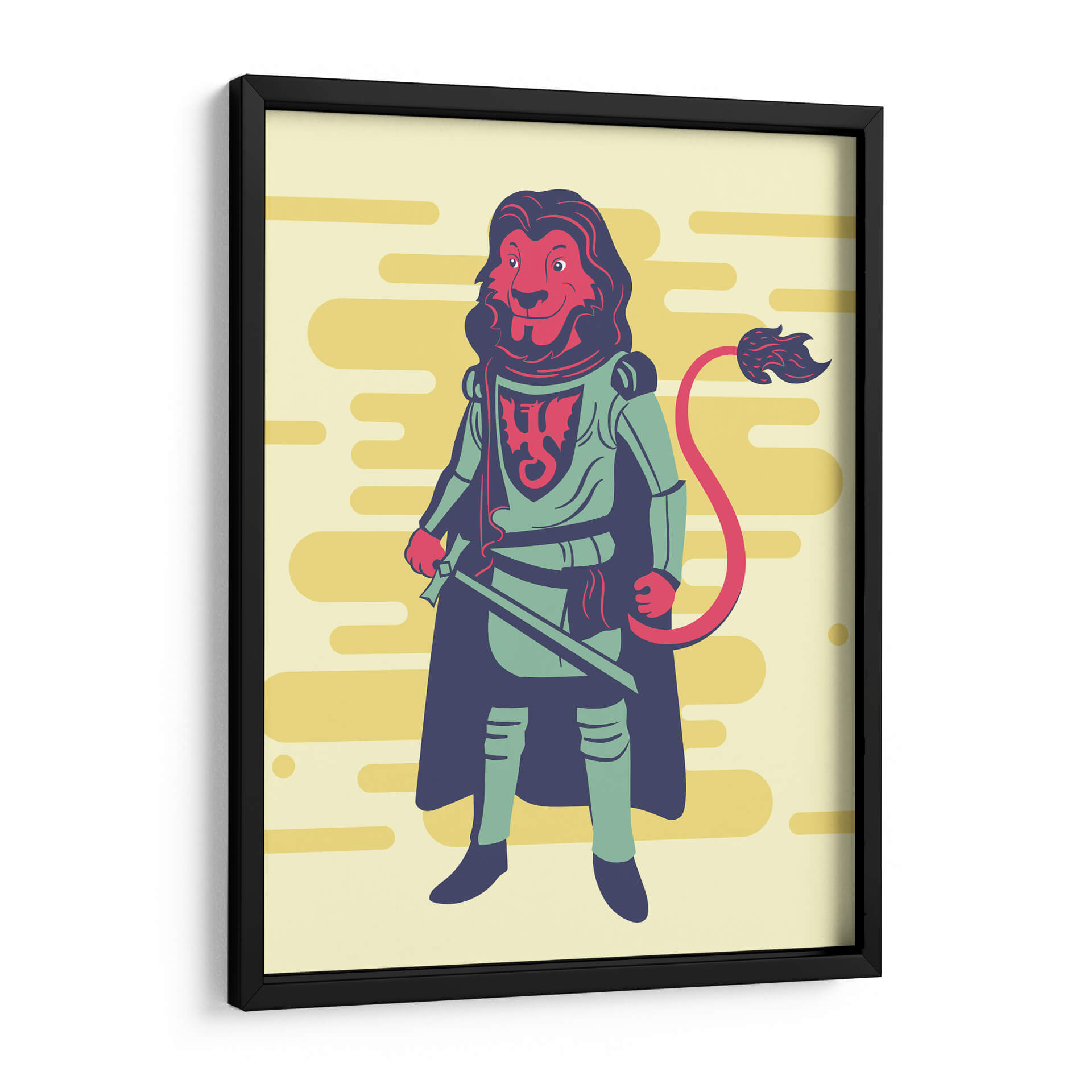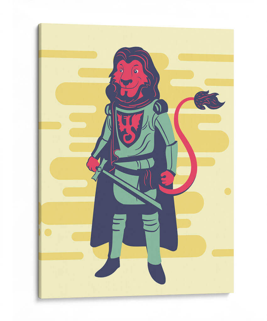 Adéntrate en el mundo de la fantasía y la nobleza con "El León Caballero" de Najesi, una obra de arte en lienzo que evoca valentía y un estilo distintivo. Esta pieza vibrante presenta a un león antropomórfico, ataviado con una armadura de caballero detallada, empuñando una espada con determinación. La paleta de colores, dominada por tonos de verde menta, azul marino y un llamativo rosa para el león y su cola, crea un contraste visual cautivador. El fondo, con sus formas abstractas en amarillo pálido, complementa la figura central sin restarle protagonismo. El estilo de la obra, que fusiona elementos del arte pop con una estética de ilustración de cuentos de hadas, transmite una sensación de fuerza y carácter único. "El León Caballero" es una pieza ideal para añadir un toque de personalidad y sofisticación a cualquier sala de estar, estudio u oficina, inspirando conversaciones y admiración. Su composición centrada y la calidad del diseño lo convierten en un punto focal excepcional para un espacio moderno o ecléctico.