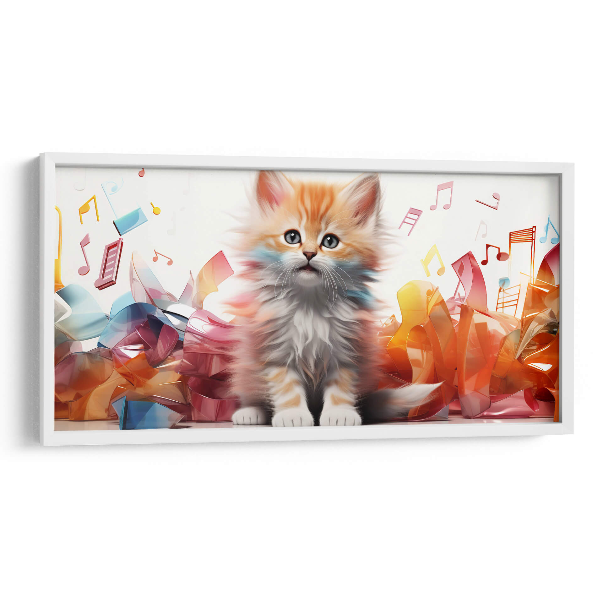 Descubre la encantadora obra "GATITO MUSICAL" de Cecilia Flores, un cuadro decorativo que captura la inocencia y la alegría de un tierno gatito rodeado de un vibrante entorno musical. Esta pieza única presenta a un adorable felino de pelaje anaranjado y blanco, con unos grandes ojos azules que irradian curiosidad y dulzura. La composición se ve realzada por la presencia de notas musicales flotando en el aire y una base de formas abstractas y translúcidas en tonos de azul, rosa y naranja, que sugieren melodías y ritmos en movimiento. La paleta de colores cálidos y alegres, junto con un estilo que combina realismo tierno con toques de fantasía, crea una atmósfera lúdica y optimista. Este cuadro decorativo es perfecto para añadir un toque de personalidad y calidez a cualquier espacio, desde una habitación infantil o un estudio, hasta una sala de estar o una oficina. Su estilo artístico moderno y su temática universal lo convierten en una elección ideal para quienes buscan una pieza que transmita felicidad y encanto. Transforma tu hogar con este vibrante lienzo que celebra la música y la ternura felina, asegurando un punto focal que deleitará a todos los visitantes. Es una adición perfecta para amantes de los gatos y la música, infundiendo alegría y color a tus paredes.
