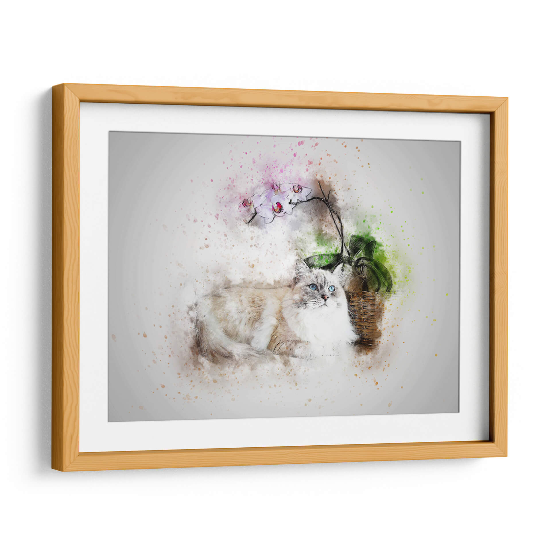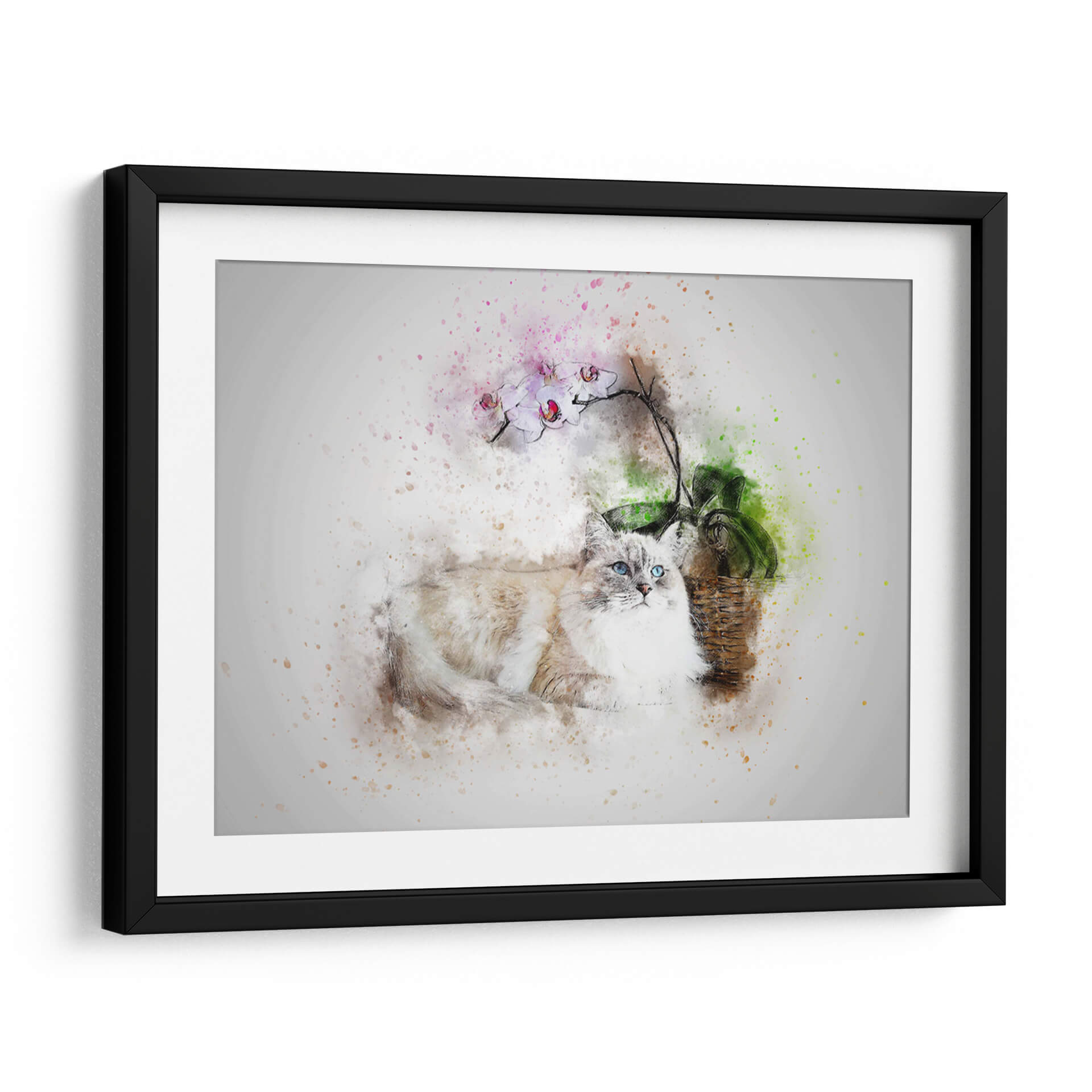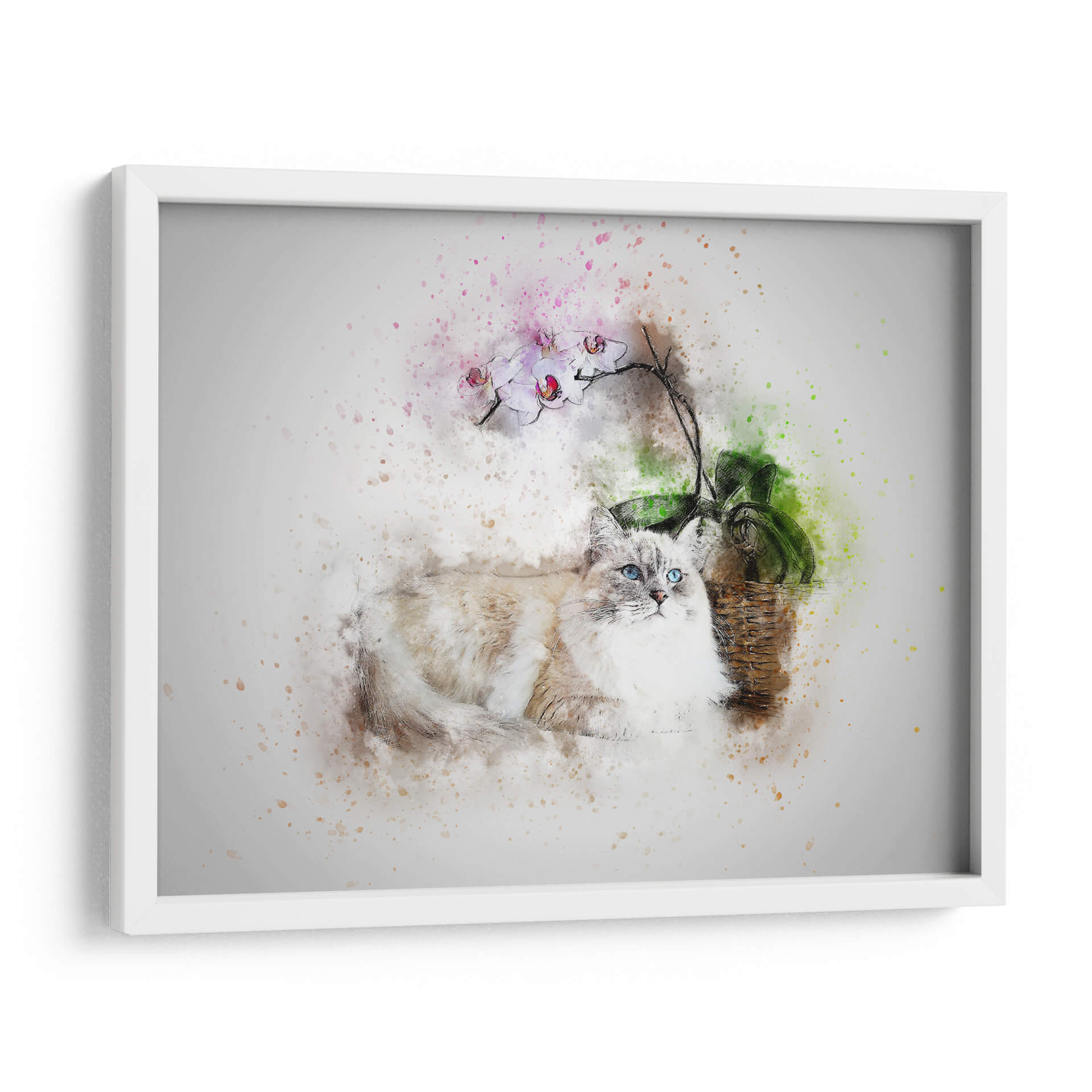 Captura la elegancia y la serenidad con esta exquisita obra de arte de un gato, magistralmente representada con detalles de acuarela. La pieza presenta un felino de pelaje blanco y grisáceo, con penetrantes ojos azules, recostado plácidamente junto a una planta de orquídeas en plena floración. El estilo de acuarela aporta una ligereza etérea y un toque artístico distintivo, con salpicaduras de color rosa, verde y ocre que crean una atmósfera vibrante pero delicada. La composición, centrada en la figura del gato y la floración, transmite una sensación de calma y contemplación. Este lienzo es perfecto para añadir un punto focal de belleza natural y sofisticación a cualquier sala de estar, dormitorio o estudio. Su paleta de colores suaves y los toques de acuarela lo convierten en una pieza decorativa ideal para espacios que buscan un ambiente acogedor y con carácter. Ideal para amantes de los gatos y apreciadores del arte contemporáneo con un toque de suavidad.