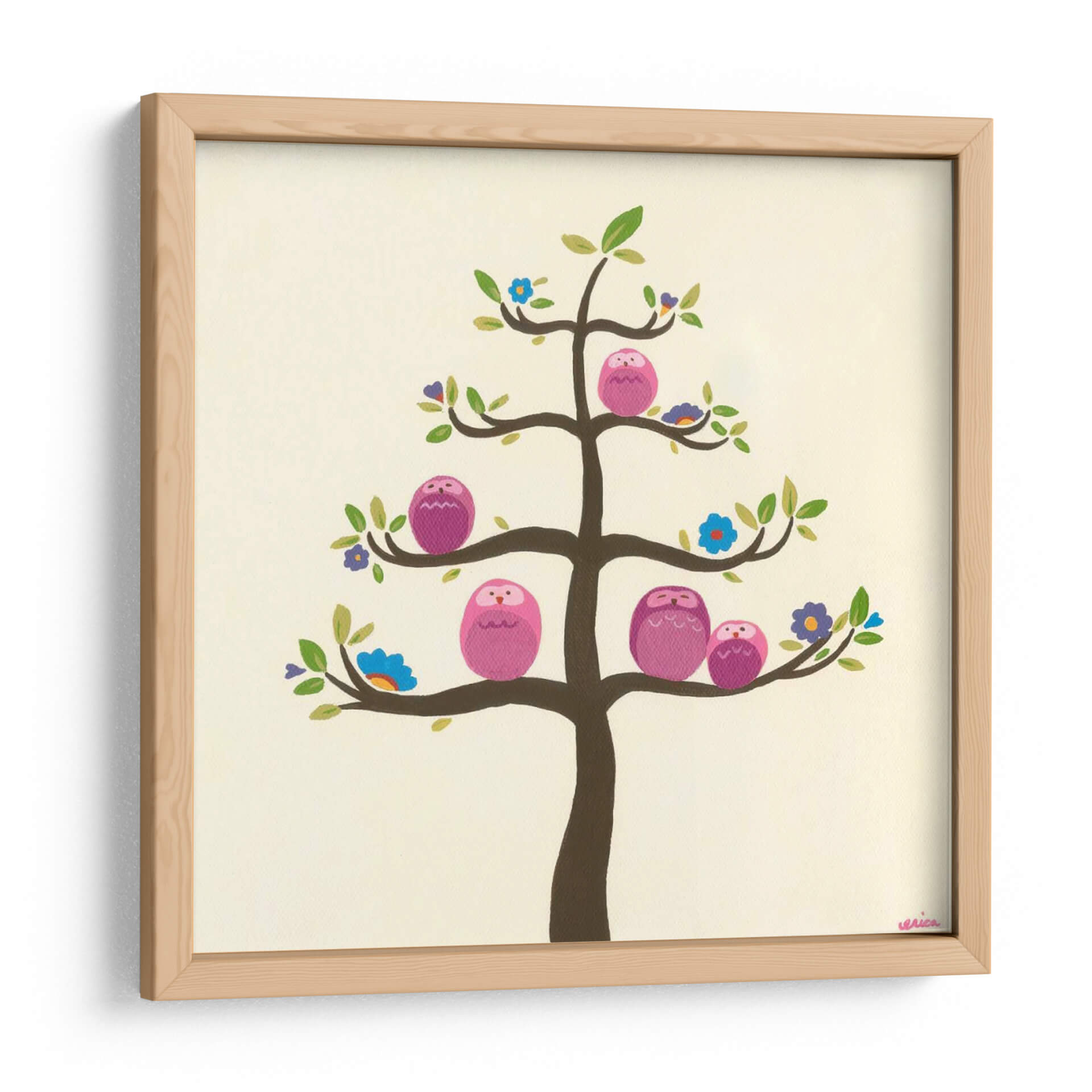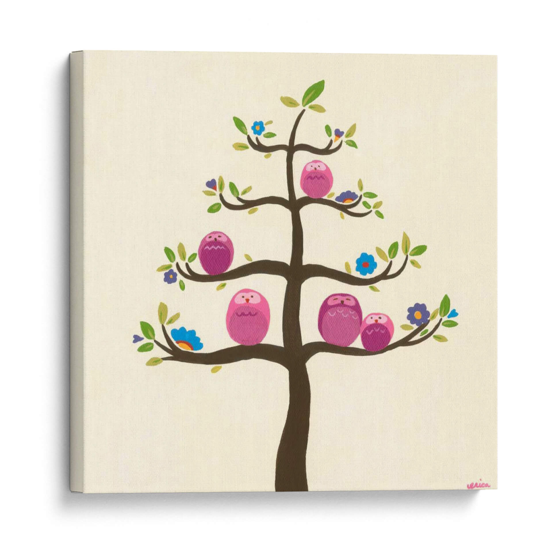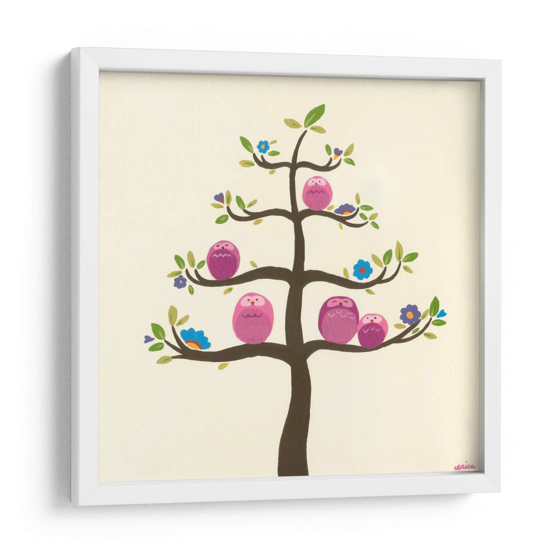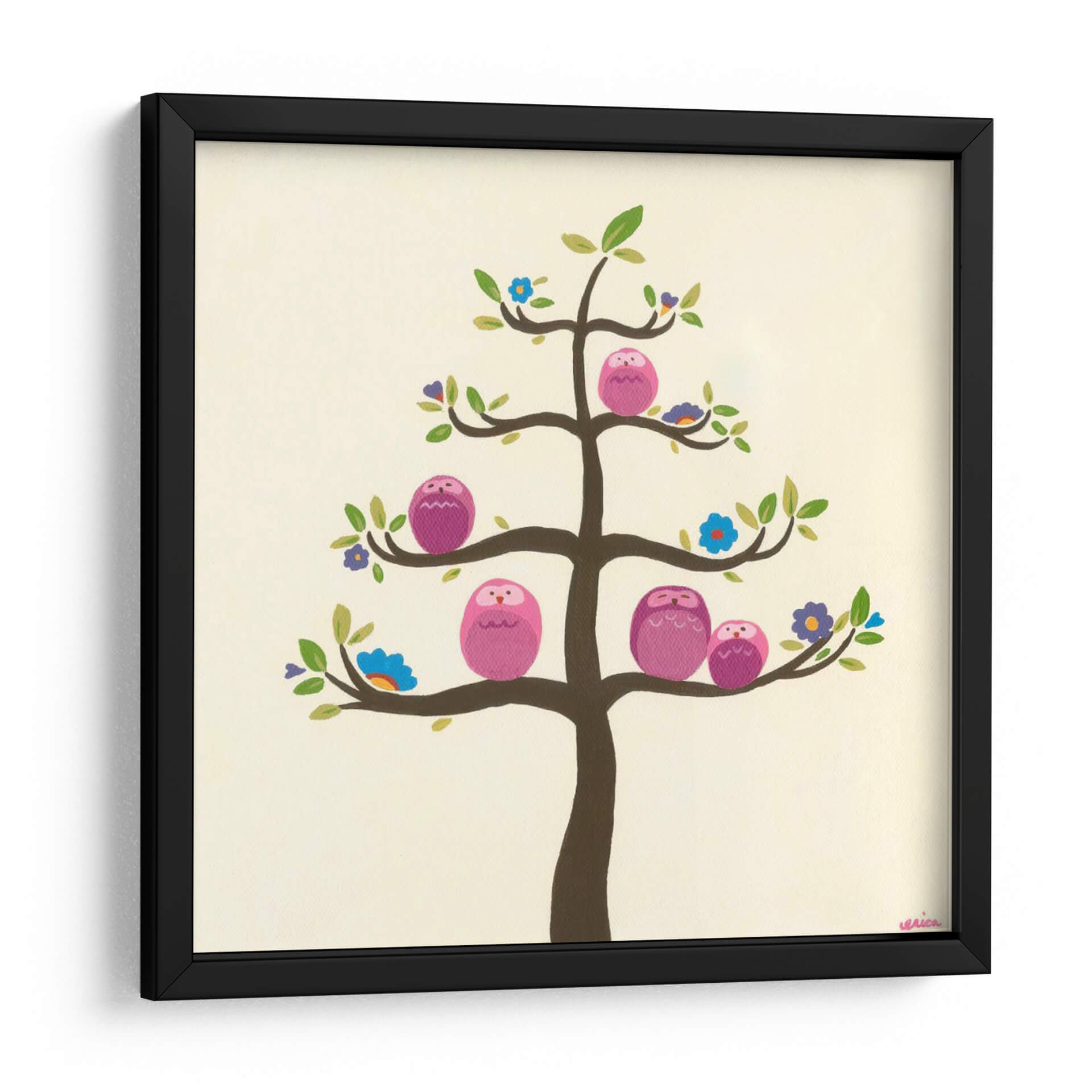 Sumérgete en la dulzura y la serenidad con el cuadro decorativo "Huerta Búhos V" de June Erica Vess. Esta encantadora obra captura la esencia de la naturaleza y la familia a través de una vibrante representación de búhos rosados posados en las ramas de un árbol estilizado. La paleta de colores, dominada por tonos tierra suaves y acentos de rosa, azul y verde, crea una atmósfera cálida y acogedora, ideal para cualquier espacio que busque un toque de alegría y tranquilidad. El estilo artístico, con sus formas simplificadas y su composición equilibrada, aporta una sensación de armonía y paz. Los pequeños detalles, como las diminutas flores que adornan el árbol, añaden un encanto lúdico y sofisticado a la pieza. "Huerta Búhos V" no es solo una decoración de pared, sino una invitación a la calma y la conexión. Perfecta para habitaciones infantiles, dormitorios, salas de estar o incluso oficinas, este cuadro decorativo transformará tu ambiente en un refugio de serenidad y estilo contemporáneo, transmitiendo un mensaje de unidad y calidez familiar. Descubre la magia de June Erica Vess y dale vida a tus paredes con arte que inspira y reconforta.