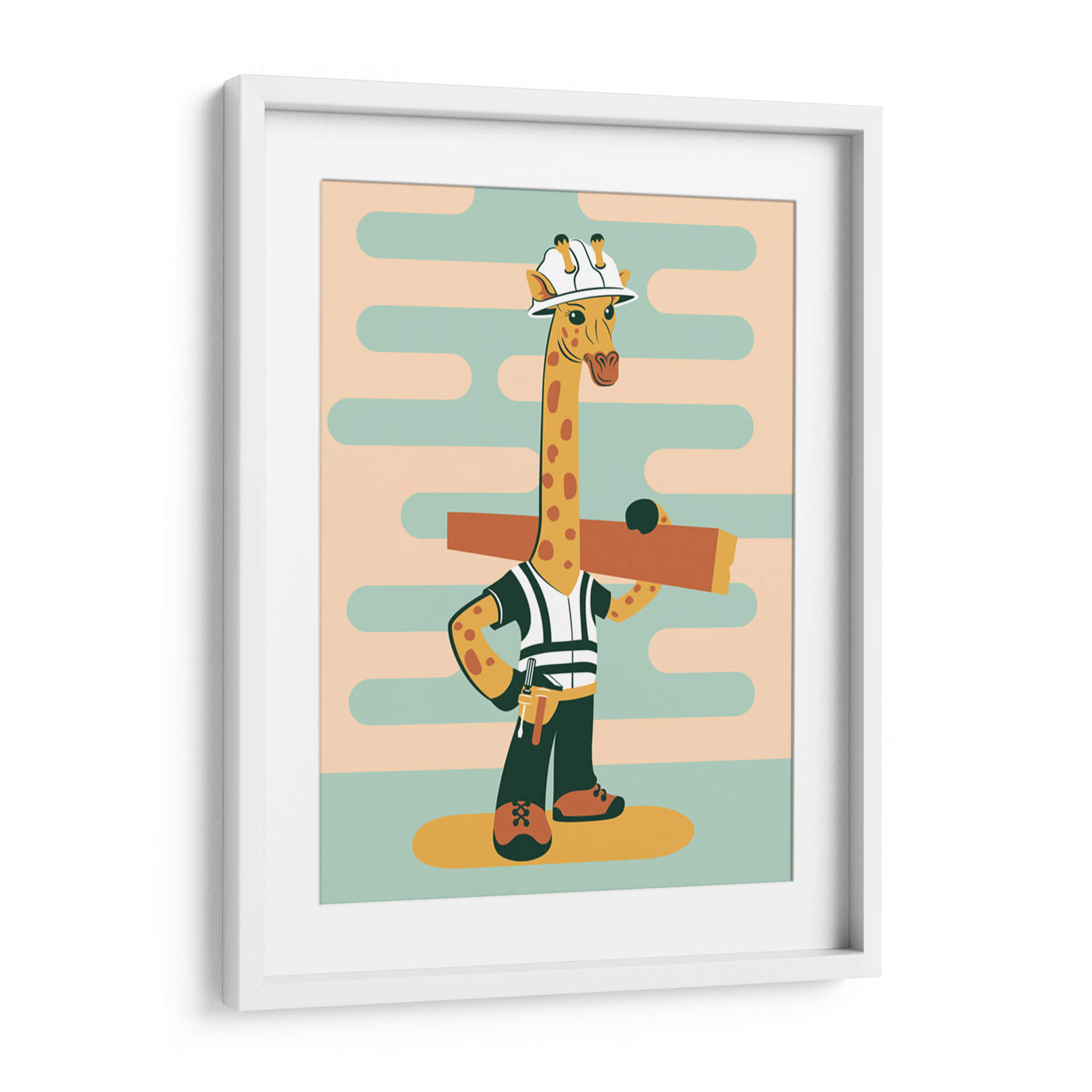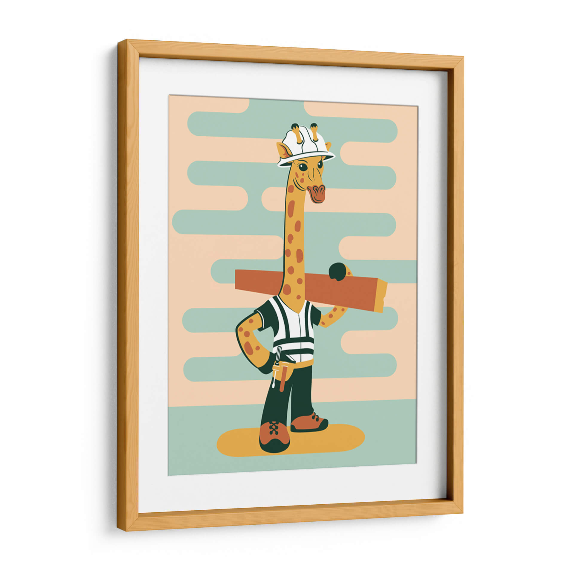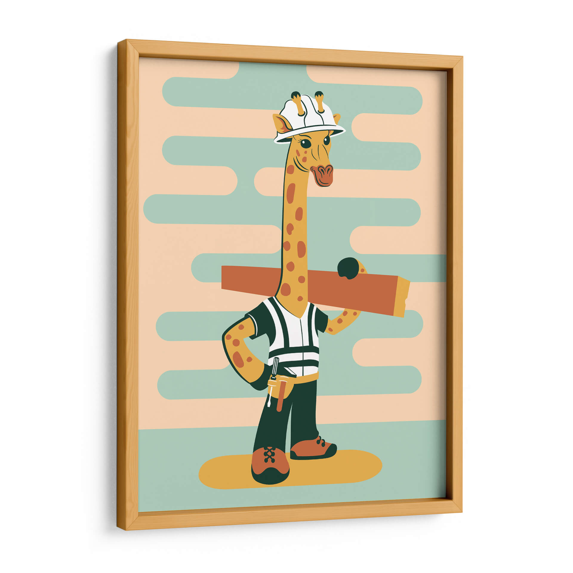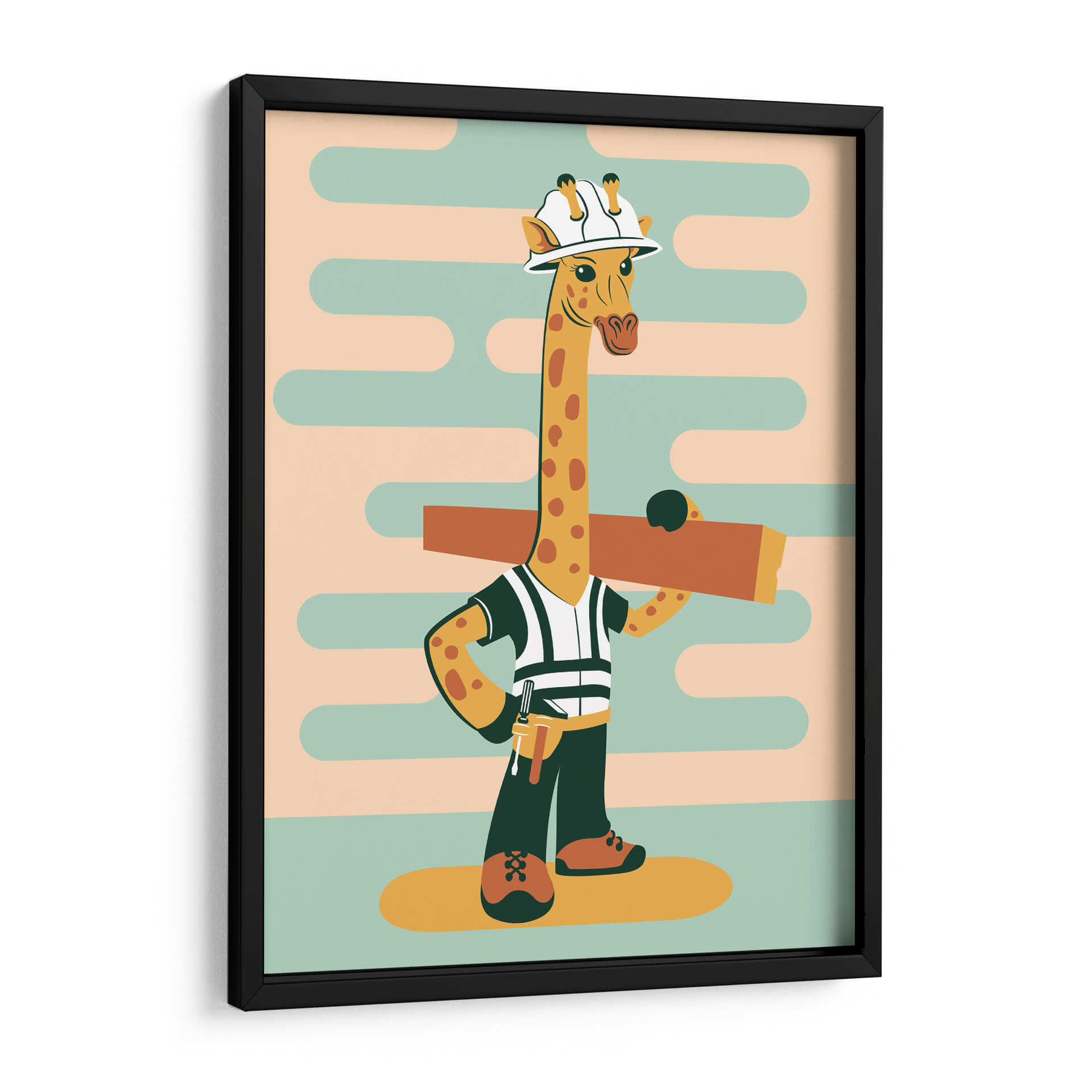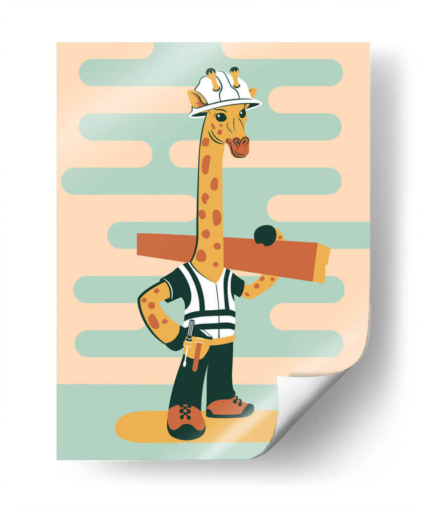 Transforma tu espacio con "La Jirafa Albañil", una obra de arte contemporáneo que combina humor y estilo. Esta pieza vibrante presenta a una jirafa antropomórfica vestida con atuendo de construcción, cargando un tablón de madera y luciendo un casco protector. La paleta de colores, dominada por tonos pastel de melocotón y verde menta, crea una atmósfera lúdica y moderna, mientras que el fondo con líneas curvas añade un toque abstracto y dinámico. La composición centrada en la figura de la jirafa, con su pose confiada y detalles como la herramienta en el cinturón, genera una narrativa visual intrigante. Este lienzo es perfecto para añadir personalidad y un toque de ingenio a salas de estar, oficinas o cualquier espacio que busque una decoración única y memorable. Ideal para quienes aprecian el arte con un giro inesperado y divertido, "La Jirafa Albañil" es una elección audaz que seguramente iniciará conversaciones y aportará alegría a tu hogar.
