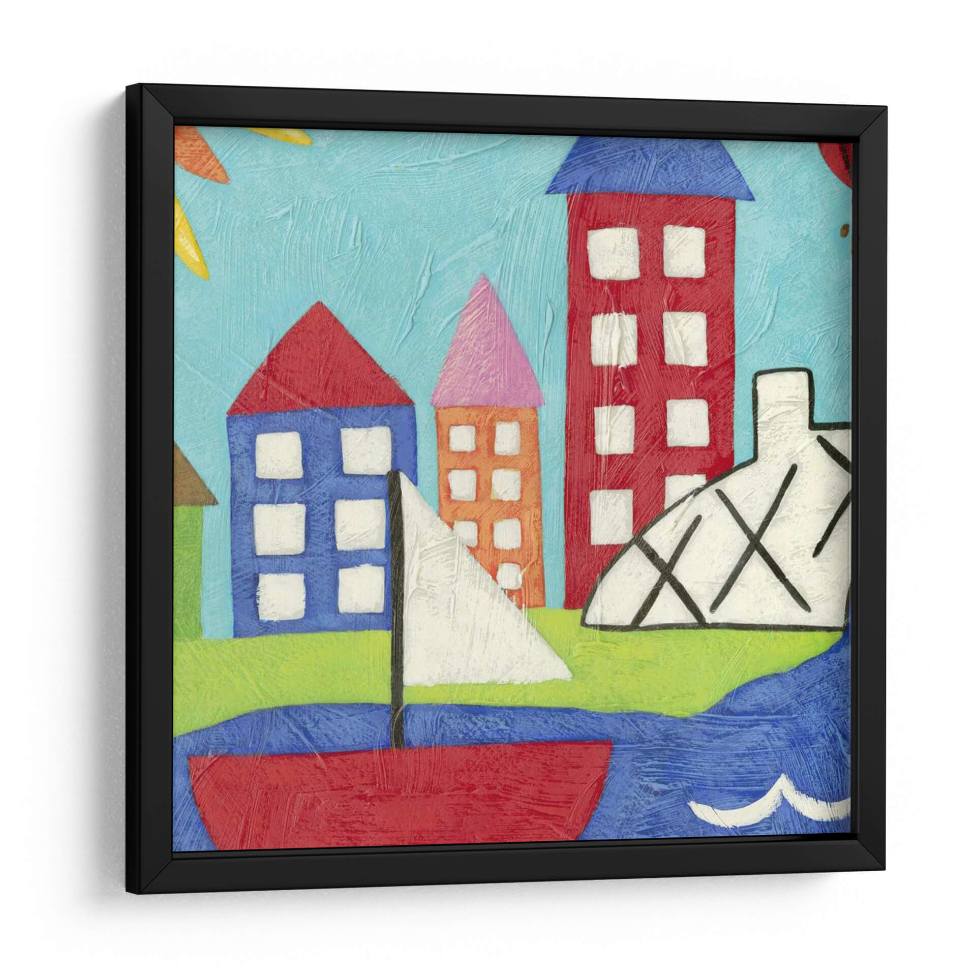 Sumérgete en la vibrante y alegre escena costera de 'Lejos Y Lejos', una obra de arte original del artista Chariklia Zarris. Este cuadro decorativo captura la esencia de un día soleado en un puerto pintoresco, con casas coloridas de tejados rojos, azules y rosados, junto a un mástil de barco blanco y un casco rojo que navegan por aguas azules y serenas. El cielo, de un azul vibrante salpicado de soles amarillos, evoca una sensación de calidez y optimismo. La textura visible de la pintura añade una dimensión táctil a la pieza, invitando al espectador a perderse en sus detalles. El estilo ingenuo y audaz de Zarris, con sus formas simplificadas y colores primarios contrastantes, crea una atmósfera lúdica y nostálgica. Es el detalle perfecto para añadir un toque de color y personalidad a cualquier habitación, desde una sala de estar moderna hasta un dormitorio infantil. Este cuadro decorativo es ideal para aquellos que buscan una pieza que irradie felicidad y transporte a un estado de paz vacacional. Añade un toque de encanto artístico y vitalidad a tu hogar con esta encantadora representación de un mundo de ensueño.