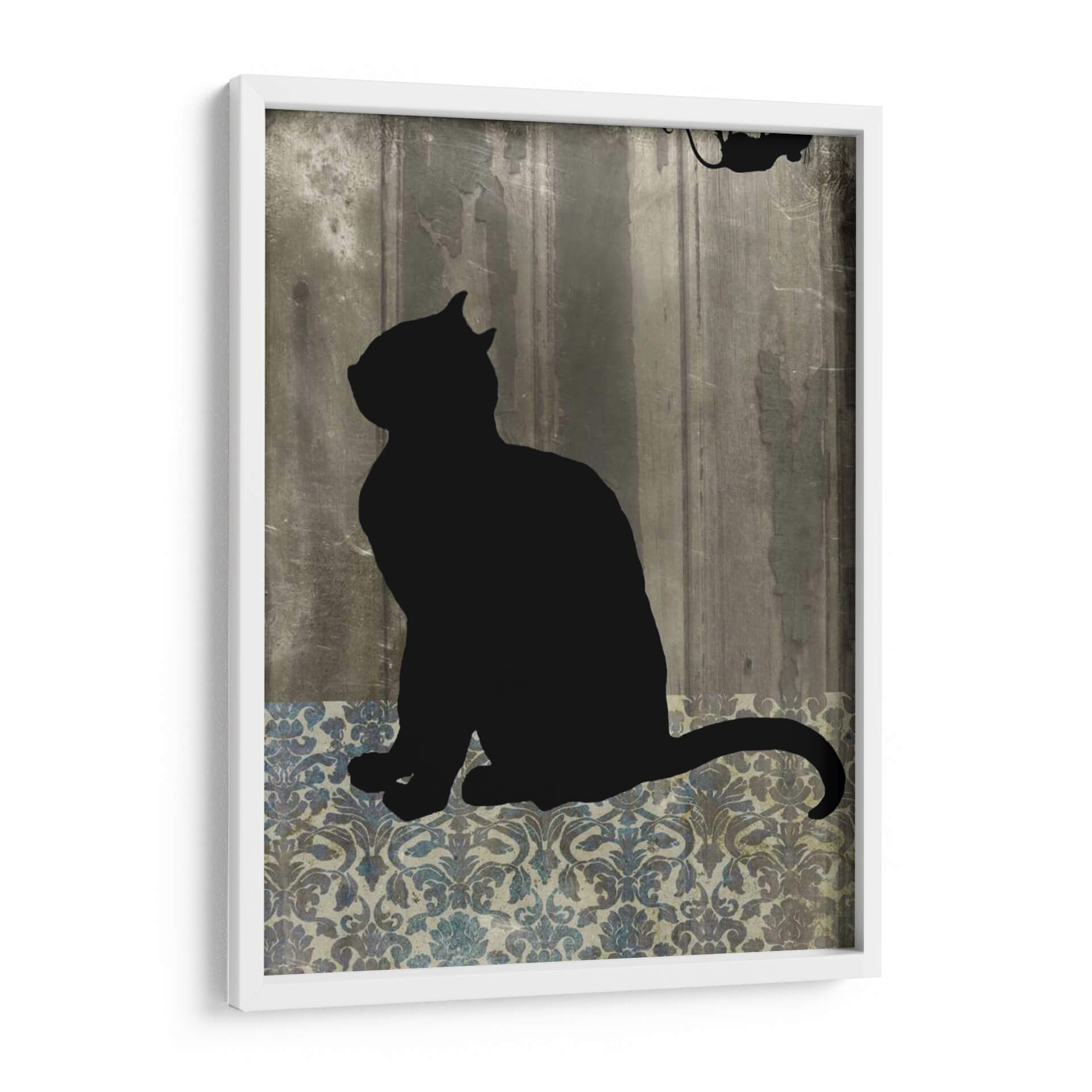 Sumérgete en el enigmático mundo de "Mouse Hunt II" de Alicia Ludwig, una obra de arte que captura la esencia de la intriga felina con un estilo visual cautivador. La silueta oscura de un gato, sentado majestuosamente sobre un intrincado patrón damasco en tonos azules y grises, domina el primer plano. El fondo, con su textura rústica y verticalidad que evoca tablones de madera desgastados, añade una capa de profundidad y carácter a la composición. Los colores predominantes, una paleta sobria de grises, toques de azul desaturado y el negro profundo del felino, crean una atmósfera de misterio y elegancia atemporal. Esta pieza es perfecta para quienes buscan añadir un toque de sofisticación sutil y un aire de misterio a su hogar u oficina. Imagina este cuadro decorativo como un punto focal en una sala de estar moderna, un estudio o incluso un dormitorio, aportando una narrativa visual intrigante y un toque de personalidad única. "Mouse Hunt II" no es solo una imagen, es una invitación a contemplar la calma y la concentración de un cazador en su elemento, presentado con un diseño contemporáneo y evocador que atraerá miradas y generará conversación.