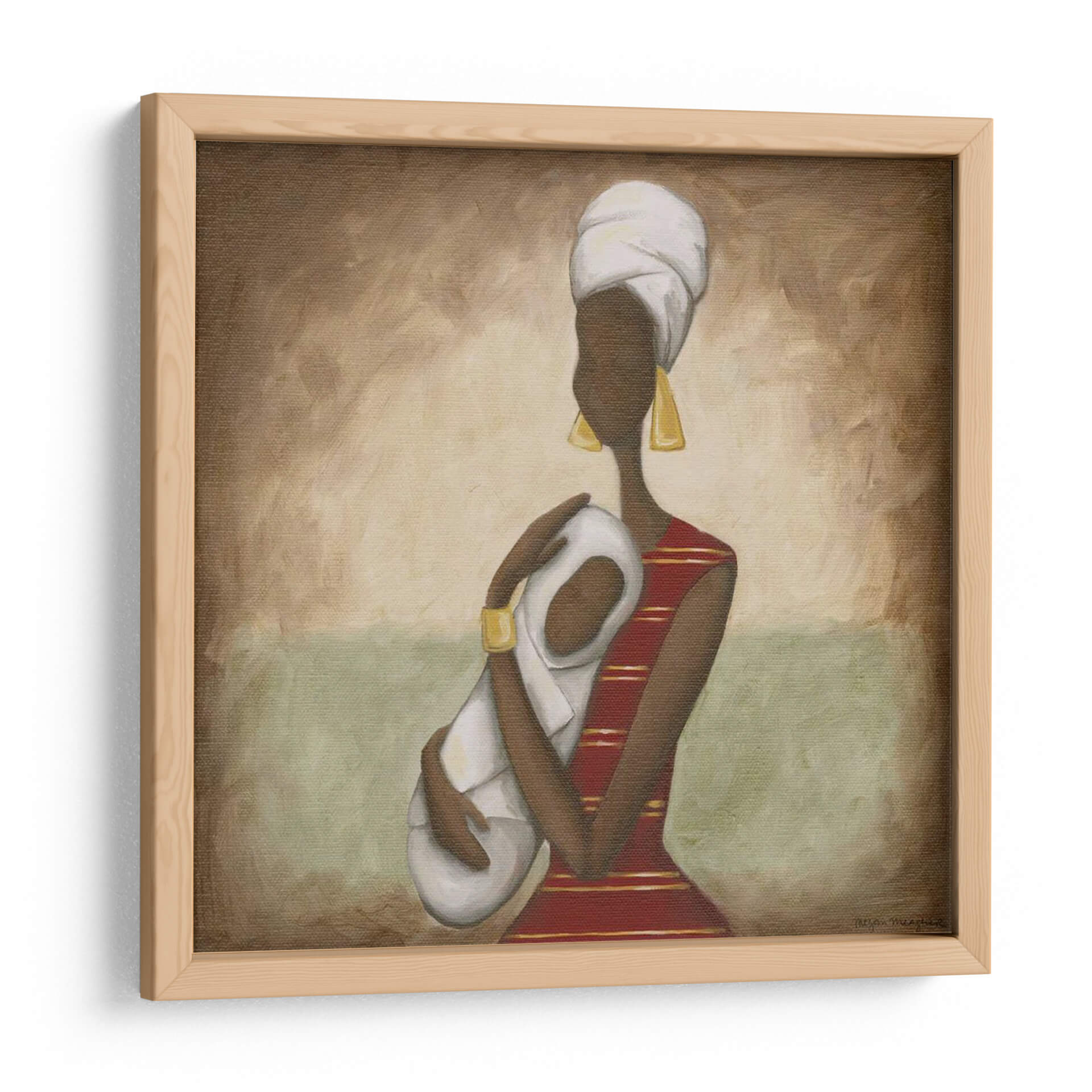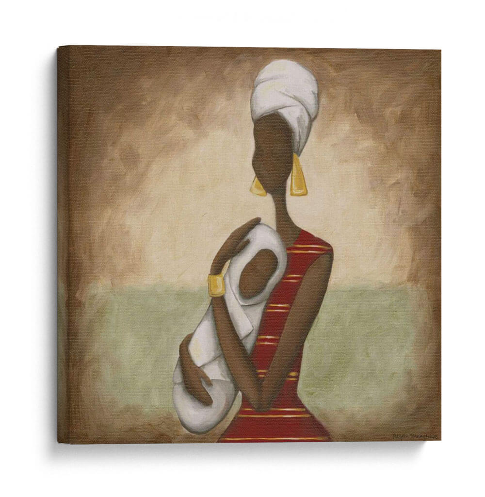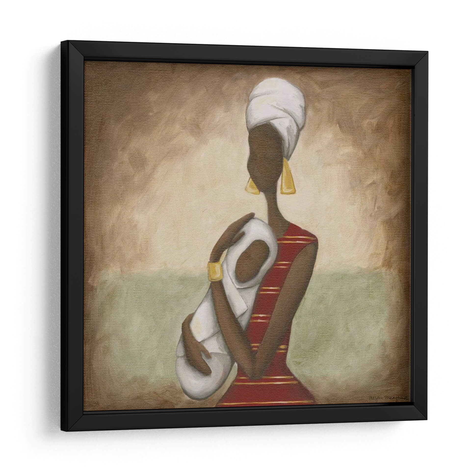 Sumérgete en la ternura y la conexión profunda con "Nutrir", una obra de arte que captura la esencia del amor maternal. Megan Meagher nos presenta una figura femenina estilizada, envuelta en un turbante blanco y con un vestido rojo vibrante adornado con sutiles rayas doradas, que abraza con devoción a un bebé acunado en sus brazos. La paleta de colores, dominada por tonos tierra cálidos y un suave verde esmeralda en el fondo, crea una atmósfera serena y acogedora, evocando sentimientos de seguridad y calidez. El estilo pictórico, con pinceladas visibles que añaden textura y profundidad, confiere a la pieza un carácter orgánico y artístico. Este cuadro decorativo es ideal para cualquier espacio que busque transmitir paz y un sentido de pertenencia, como un dormitorio, una sala de estar o incluso un santuario personal. La poderosa representación de este vínculo universal hace de "Nutrir" una pieza conmovedora que resonará con quienes valoran la familia y el cuidado. Añade este lienzo a tu colección y deja que su mensaje de amor incondicional llene tu hogar de una energía positiva y reconfortante.