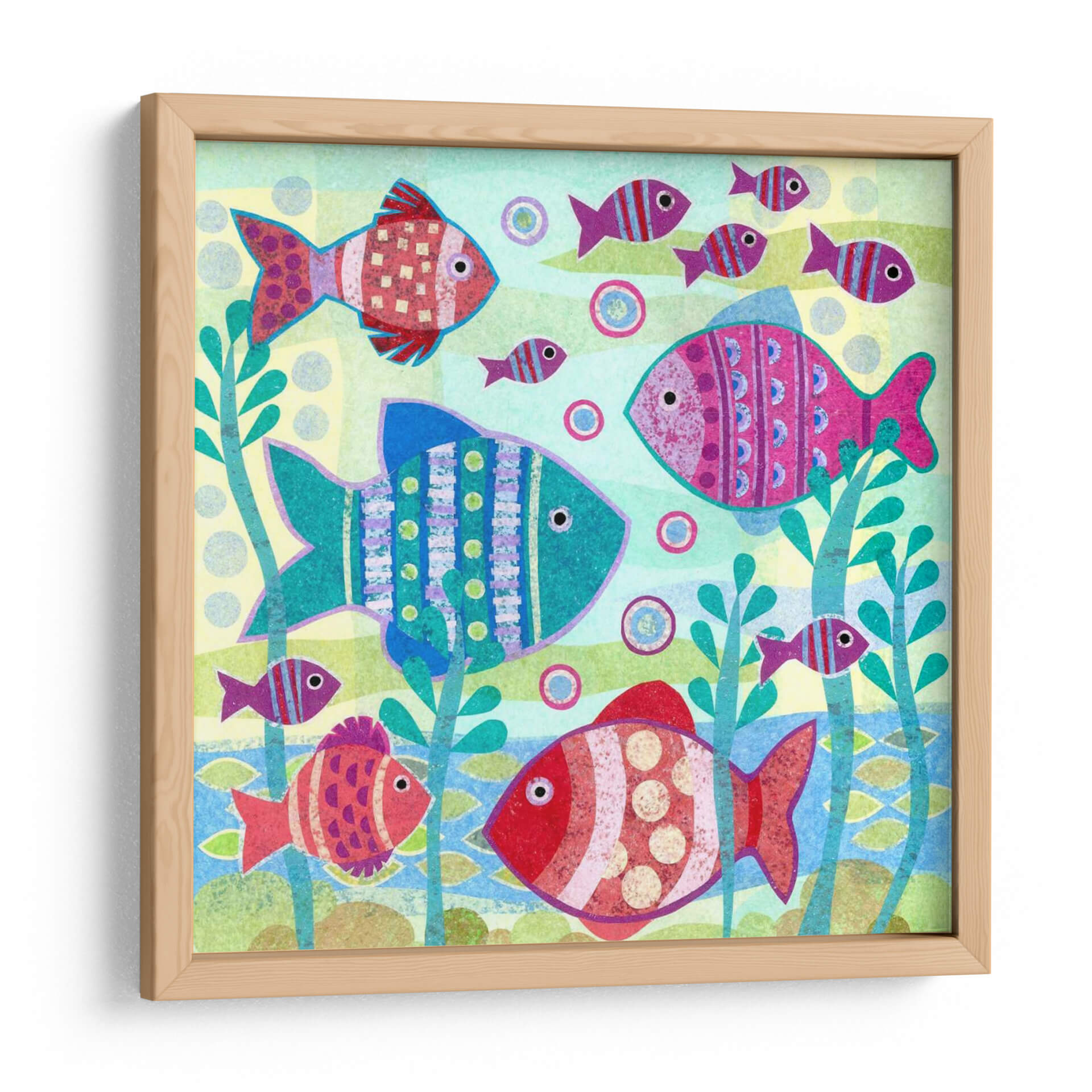 Sumérgete en un vibrante mundo submarino con este encantador cuadro decorativo 'Ocean Fish I' de Kim Conway. La obra presenta una colorida colección de peces en tonos alegres como el azul turquesa, rosa fucsia y rojo vibrante, nadando entre delicada vegetación acuática y burbujas circulares. La composición, con su estilo lúdico y texturas detalladas, evoca una sensación de alegría y movimiento, transportando al espectador a un ecosistema marino lleno de vida. Los patrones intrincados en cada pez, desde las escamas hasta las aletas, añaden profundidad y un toque artesanal único a la pieza. Ideal para añadir un toque de color y frescura a cualquier espacio, este cuadro decorativo es perfecto para salones, dormitorios infantiles o cualquier rincón que necesite una dosis de vitalidad marina. La paleta de colores pastel y brillantes crea un ambiente sereno pero enérgico, haciendo de 'Ocean Fish I' una adición cautivadora a tu decoración de pared contemporánea. Transforma tu hogar en un oasis de tranquilidad y estilo con esta pieza artística que celebra la belleza del océano y la creatividad de Kim Conway.
