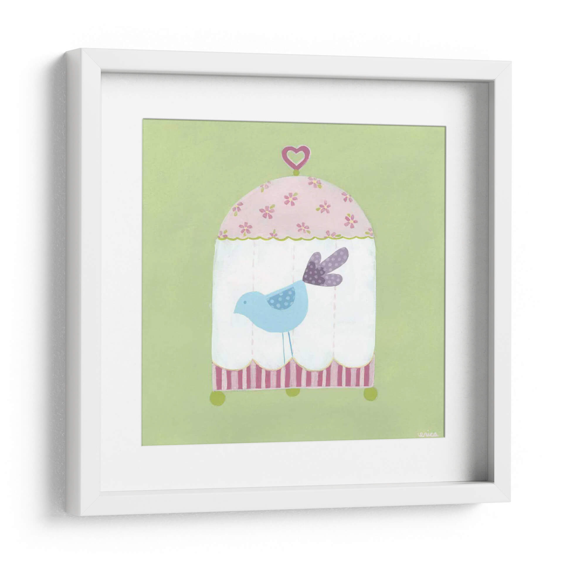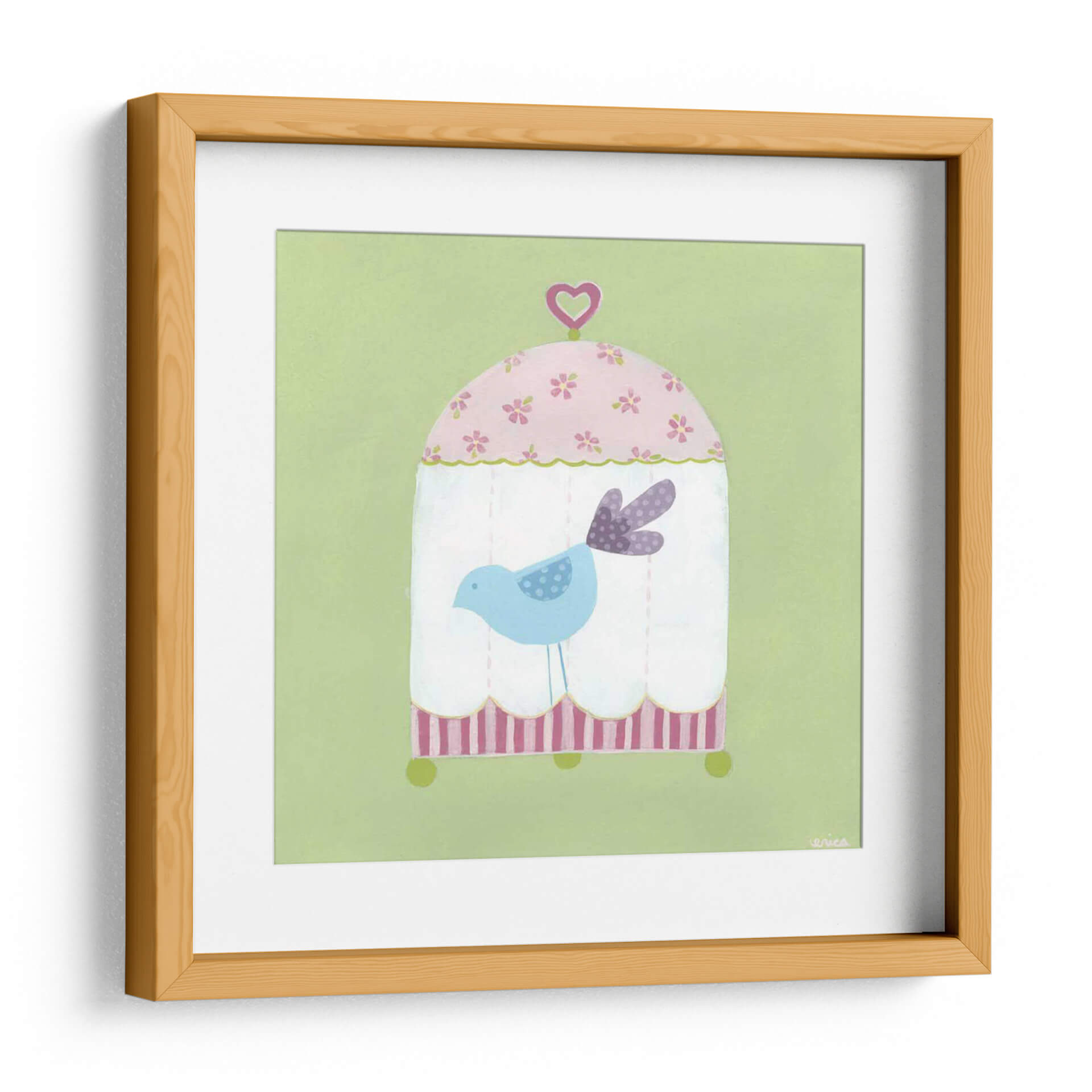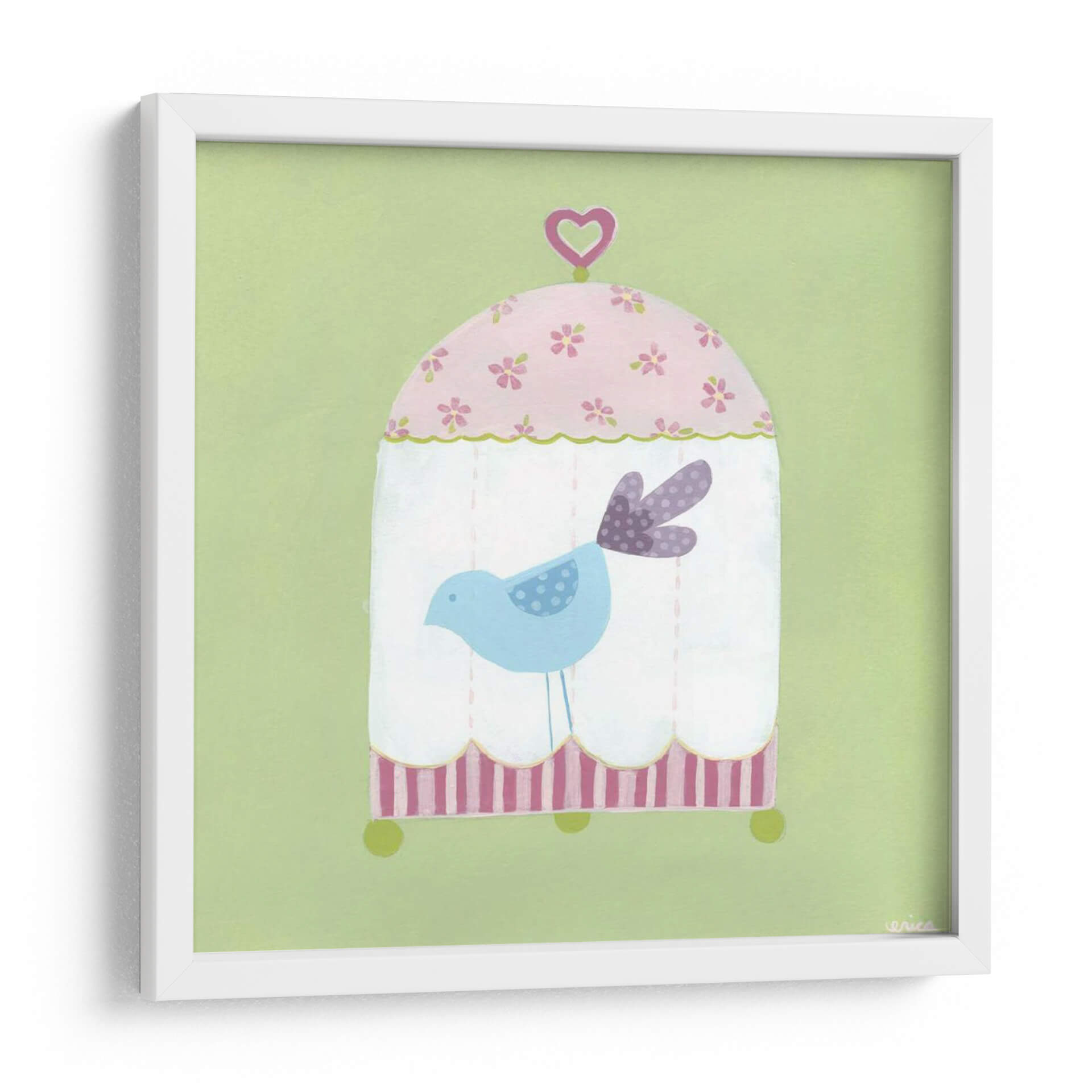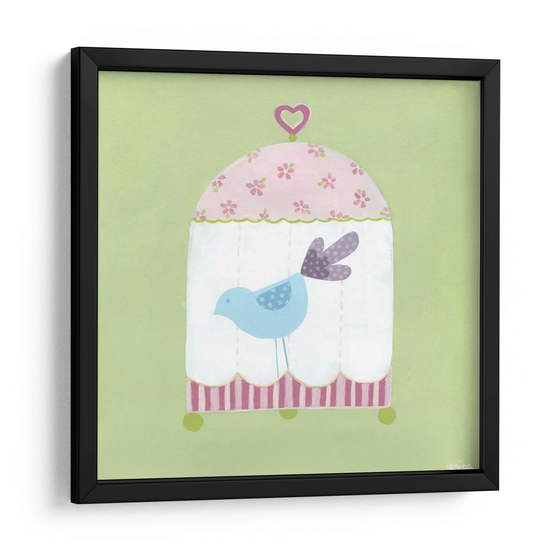 Añada un toque de encanto y serenidad a su hogar con el cuadro decorativo 'Patchwork Birdcage II' de June Erica Vess. Esta encantadora obra de arte presenta un pájaro azul pastel, delicadamente representado dentro de una jaula de pájaros estilizada, con detalles en rosa y verde que evocan una sensación de dulzura y tranquilidad. La paleta de colores suaves, dominada por el verde menta y los toques florales en rosa, crea un ambiente relajante y acogedor, perfecto para cualquier espacio que busque transmitir paz y armonía. El estilo artístico, con sus formas sencillas y un toque de arte popular, lo convierte en una pieza versátil que puede complementar tanto decoraciones infantiles como ambientes más sofisticados que busquen un acento lúdico. Imagine este cuadro aportando una atmósfera de calma y alegría a un dormitorio, una sala de estar o incluso una guardería. Es una pieza ideal para quienes aprecian el arte con un mensaje sutil de libertad y belleza natural. El diseño único y la ejecución cuidadosa de June Erica Vess hacen de 'Patchwork Birdcage II' una adición memorable y encantadora a cualquier colección de arte mural.