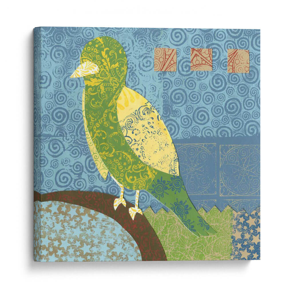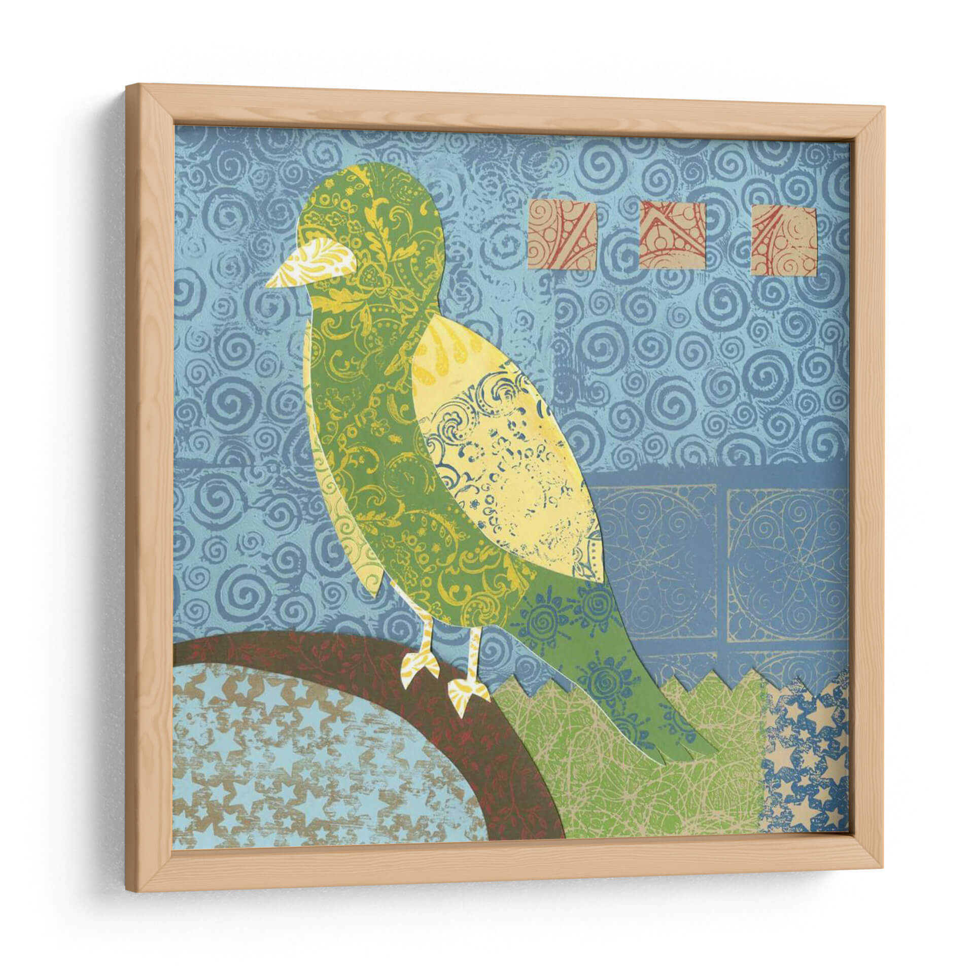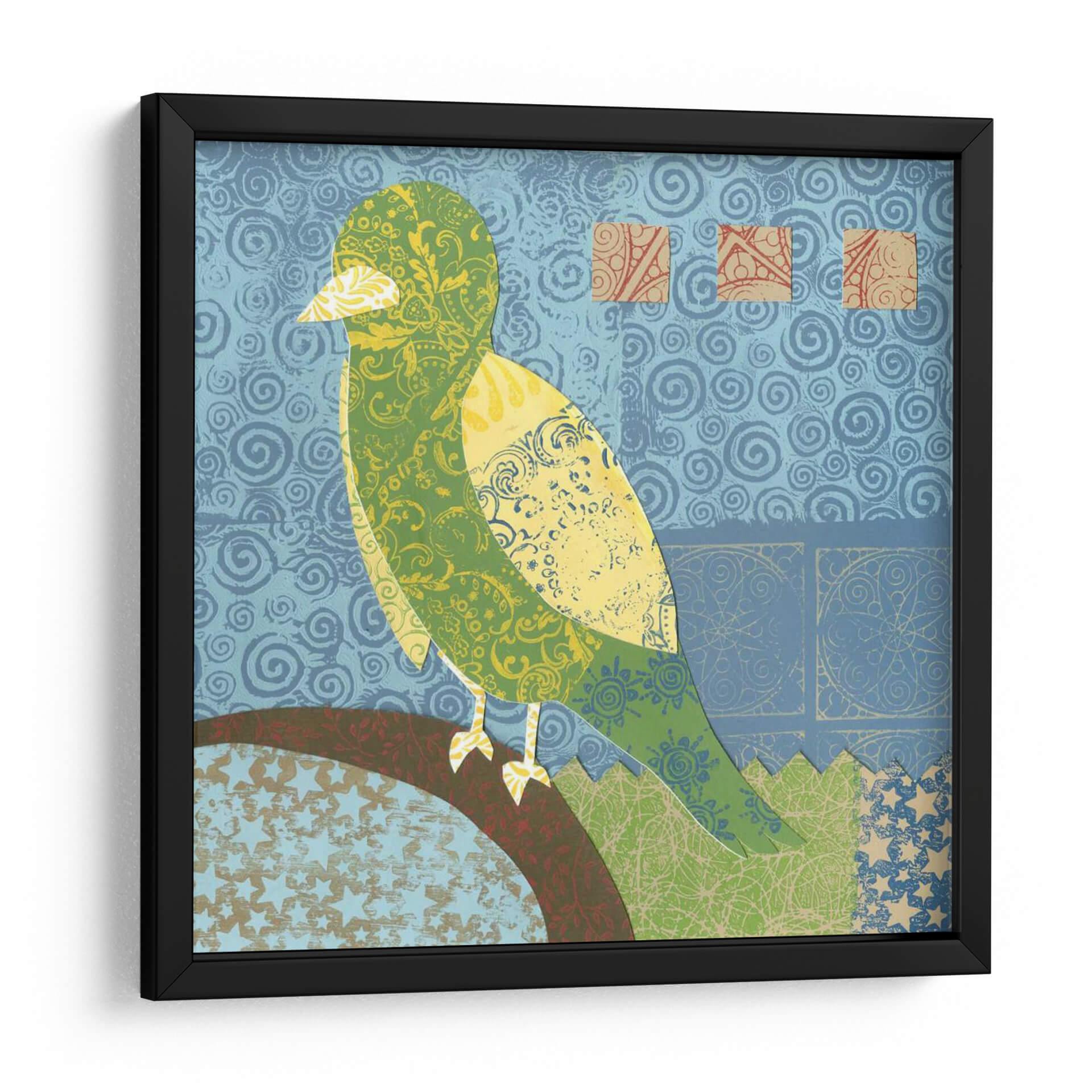 Eleva la decoración de tu hogar con el encantador cuadro decorativo "Patrones De Vuelo IV" de Megan Meagher. Esta cautivadora obra de arte presenta un vibrante pájaro compuesto por intrincados patrones y texturas, posado sobre una rama estilizada. La paleta de colores, dominada por tonos verdes y amarillos para el pájaro y contrastada con un fondo azul lleno de remolinos y cuadrados decorativos, crea una atmósfera juguetona y enérgica. El estilo distintivo de Meagher, que combina elementos de collage y diseño gráfico, da vida a esta pieza de una manera única y contemporánea. Ideal para añadir un toque de color y personalidad a cualquier habitación, desde la sala de estar hasta una oficina creativa, este cuadro decorativo invita a la contemplación y celebra la belleza de la naturaleza a través de una lente abstracta y moderna. Su composición equilibrada y sus detalles intrincados lo convierten en un punto focal fascinante que seguramente generará conversación y admiración en tu espacio.
