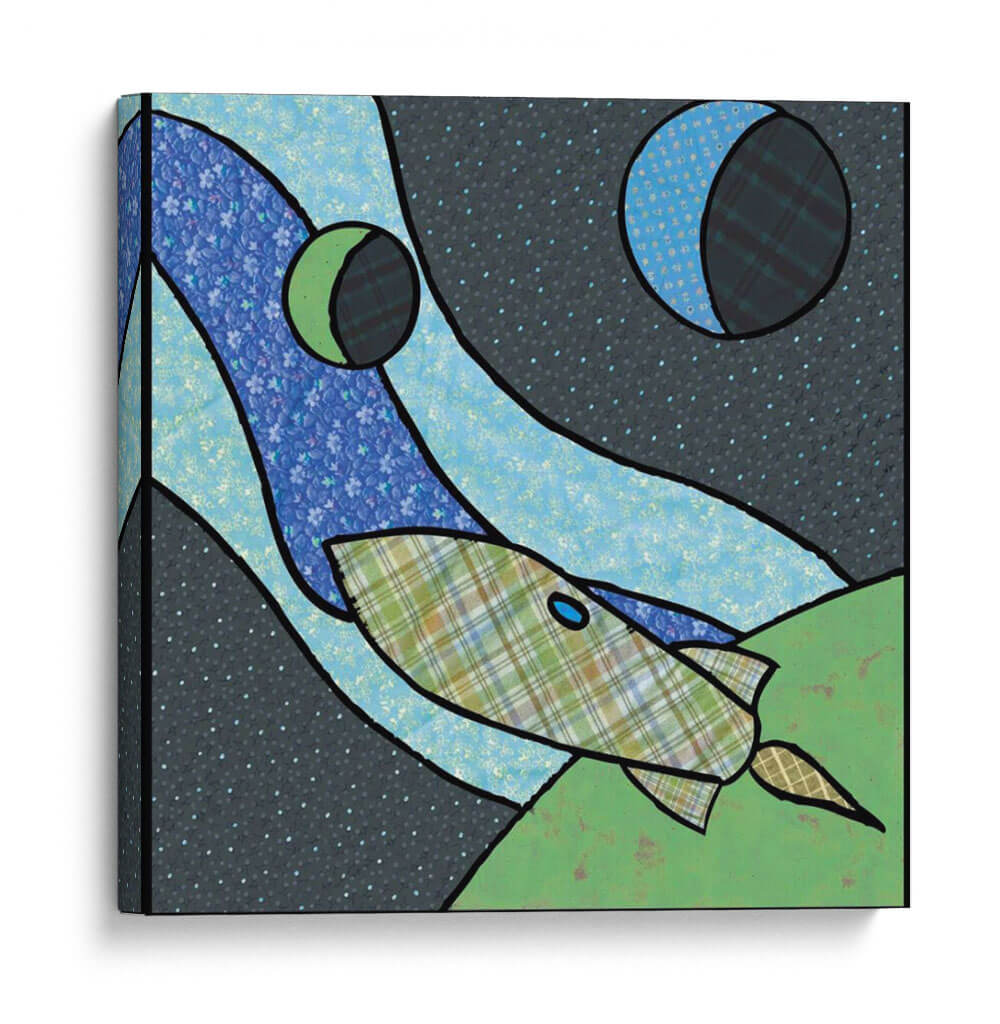 Embárquese en un viaje visual al cosmos con "Planetas De Remiendo I", una obra de arte que fusiona la exploración espacial con un estilo artístico audaz y texturizado. Este cuadro decorativo presenta un cohete estilizado, confeccionado con un patrón a cuadros verde y beige, surcando un paisaje celestial vibrante. El universo está representado a través de patrones intrincados y una paleta de colores que combina azules profundos, verdes terrosos y grises texturizados, evocando tanto la inmensidad del espacio como la calidez de elementos familiares. Las formas orgánicas y las líneas definidas crean una composición dinámica que atrae la mirada y estimula la imaginación. Es una pieza ideal para añadir un toque de fantasía y aventura a la decoración de un dormitorio infantil, una sala de juegos o un espacio de trabajo creativo. Su estética única, que recuerda a un collage o patchwork, le confiere una originalidad que capturará la atención y generará conversación, convirtiéndose en el punto focal de cualquier ambiente moderno o ecléctico. "Planetas De Remiendo I" no es solo una decoración, es una invitación a soñar y explorar los límites de lo posible.