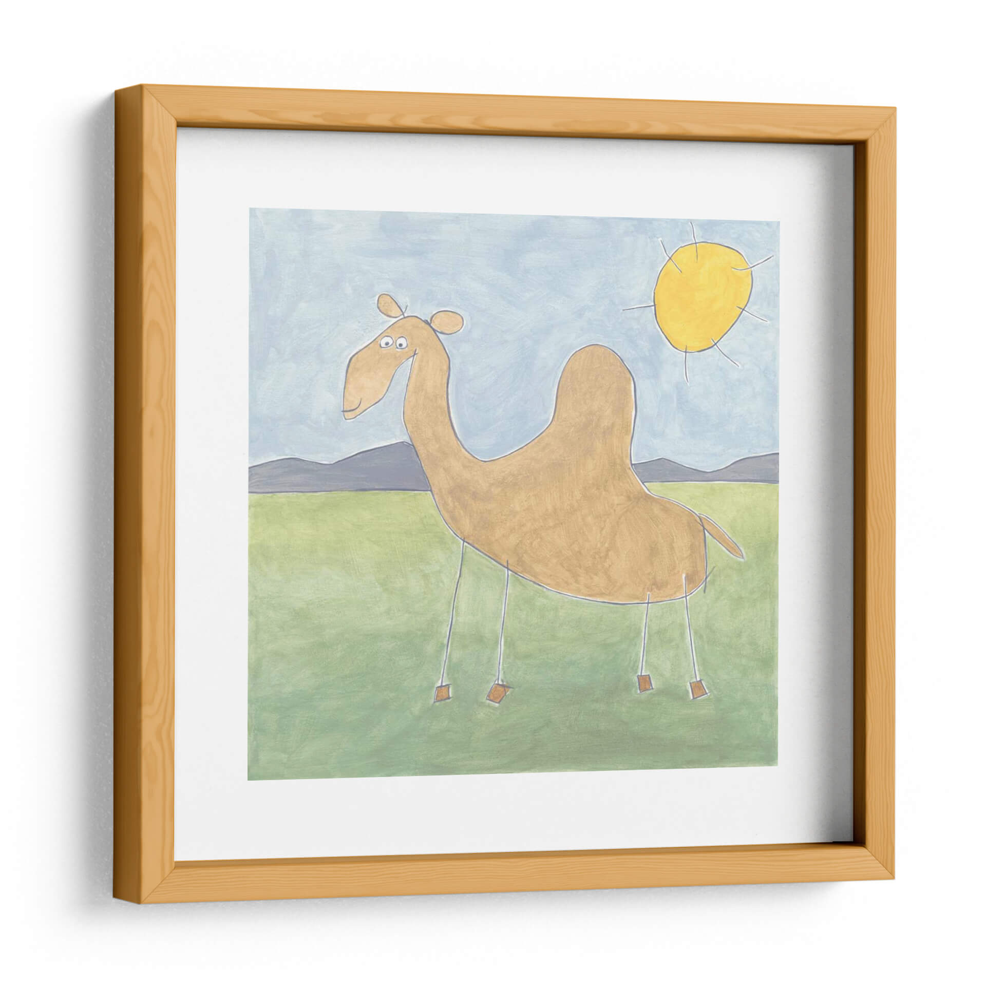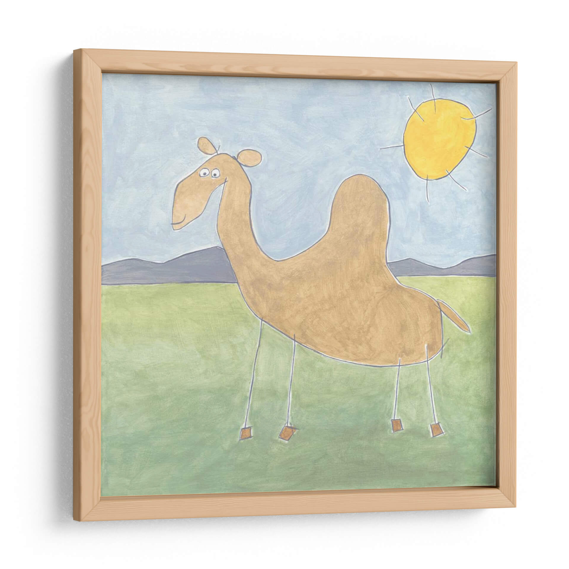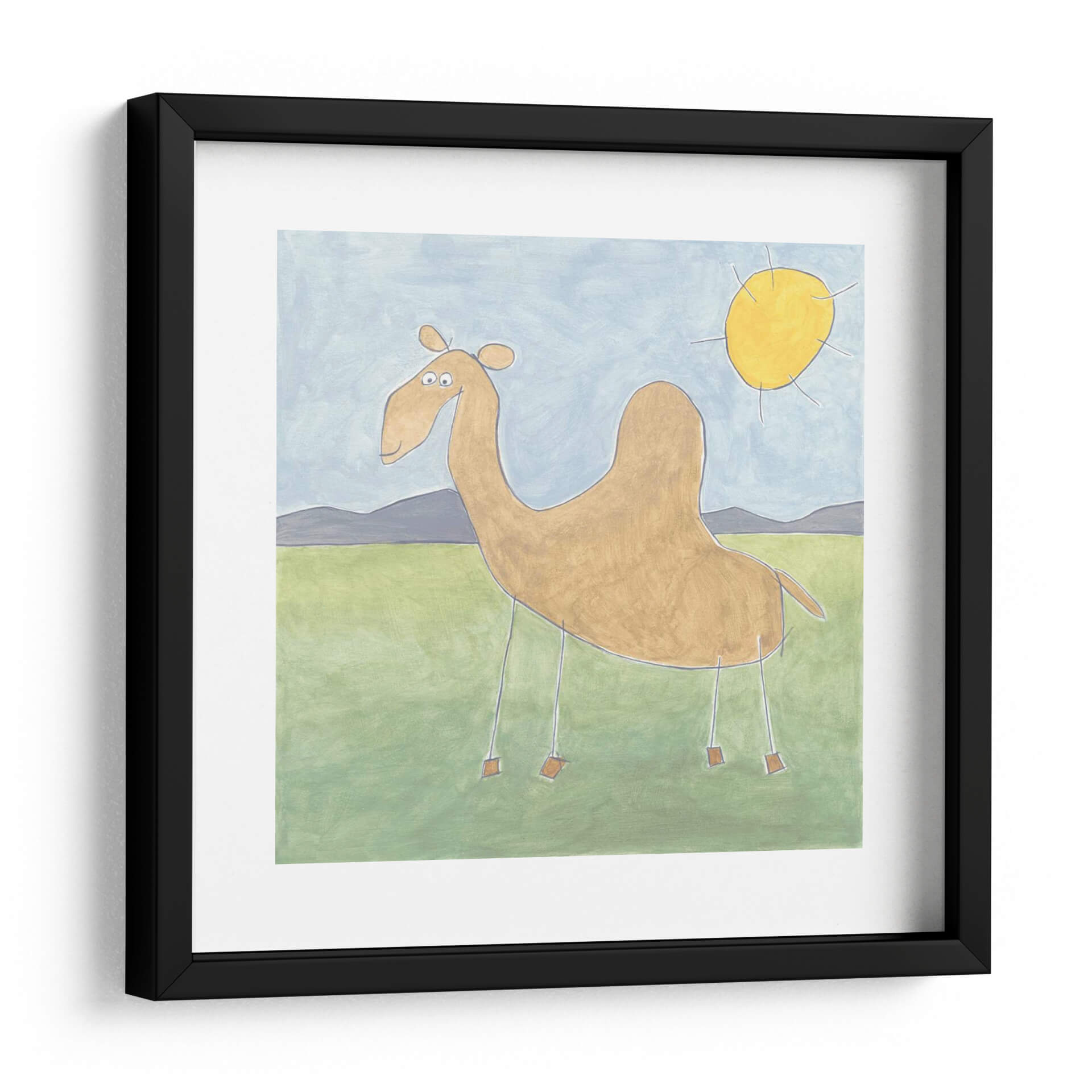 Aporta un toque de encanto y serenidad a tu hogar con este cautivador cuadro decorativo, "Quinns Camello" de Megan Meagher. Esta obra de arte presenta un camello de estilo peculiar y amigable, con una paleta de colores suaves que evocan la tranquilidad de un paisaje desértico bañado por el sol. El cielo de tono azul pálido se encuentra con colinas grises etéreas y un campo verde sereno, creando una atmósfera pacífica y acogedora. El sol amarillo brillante añade un toque de calidez y optimismo a la composición. El estilo artístico, que recuerda a una ilustración infantil pero con una ejecución sofisticada, hace que esta pieza sea accesible y encantadora para todas las edades. Ideal para añadir un punto de interés visual a la sala de estar, el dormitorio o incluso un espacio de oficina, este cuadro decorativo es perfecto para quienes buscan infundir sus ambientes con una sensación de calma y originalidad. La simplicidad de sus líneas y la armonía de sus colores lo convierten en una adición versátil a cualquier estilo de decoración, desde el moderno hasta el bohemio. Descubre la magia de "Quinns Camello" y transforma tus paredes en un lienzo de emociones positivas.