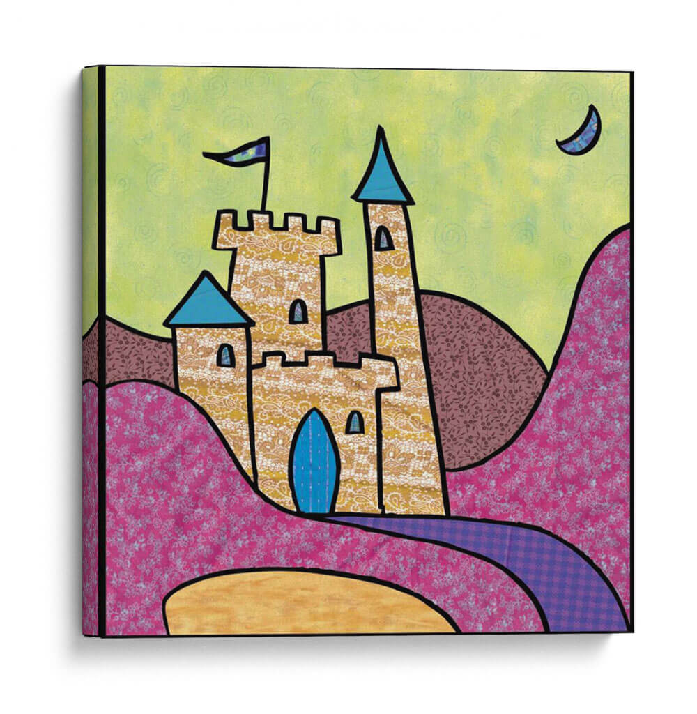 Adéntrate en un mundo de fantasía con "Reino de Calico III", una obra de arte vibrante y encantadora del artista Charles Swinford. Este cuadro decorativo presenta un castillo de cuento de hadas con un diseño texturizado en tonos dorados y marfiles, acentuado por puertas y techos de torreta de un azul profundo. El paisaje circundante se despliega en capas de colinas ondulantes, con una audaz paleta de colores que incluye vibrantes rosas con intrincados patrones y un fondo verde lima que evoca un cielo caprichoso, salpicado por una luna creciente. El estilo distintivo de Swinford, con sus líneas audaces y el uso de patrones repetitivos, crea una pieza visualmente cautivadora que irradia alegría y asombro. "Reino de Calico III" es ideal para añadir un toque de magia y color a cualquier habitación, desde la sala de estar hasta un dormitorio infantil, o para infundir un ambiente lúdico en una oficina. Esta pieza invita a soñar despierto y es perfecta para quienes buscan una decoración de pared que combine el arte moderno con un toque de nostalgia y fantasía. Descubre la magia de este cuadro decorativo y transforma tu espacio en un reino de imaginación.