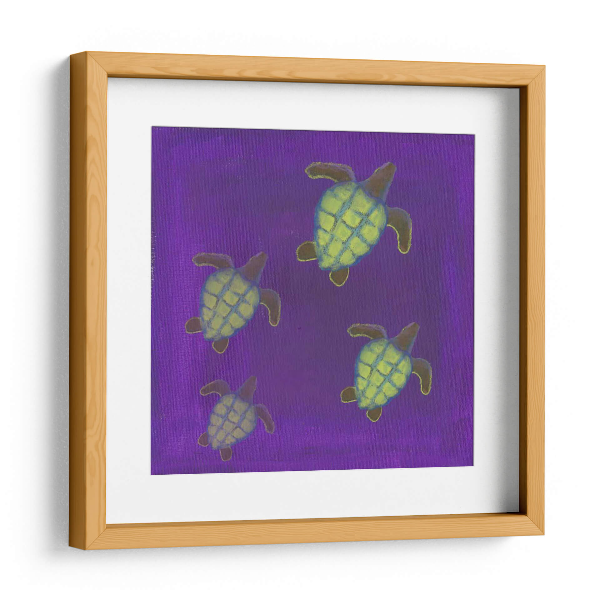 Sumérgete en la serenidad del océano con "Riders Wave Iv", una obra de arte cautivadora de Alicia Ludwig. Este cuadro decorativo presenta una composición lúdica de cuatro tortugas marinas nadando en un vibrante fondo púrpura, evocando una sensación de movimiento y tranquilidad. La paleta de colores, dominada por verdes brillantes y morados profundos, crea una atmósfera submarina mágica y envolvente. El estilo distintivo de Ludwig, con sus trazos texturizados y la representación estilizada de las tortugas, añade un toque contemporáneo y artístico. Ideal para cualquier espacio que busque infundir calma y un toque de la naturaleza marina, esta pieza es perfecta para dormitorios, salas de estar o incluso una guardería. "Riders Wave Iv" no es solo una decoración de pared, sino una invitación a la contemplación y al asombro del mundo submarino. Transforma tu hogar en un oasis de paz con este cuadro decorativo que combina arte moderno y la belleza atemporal de la vida marina. Descubre la magia de las profundidades con esta pieza única que seguro inspirará y deleitará.