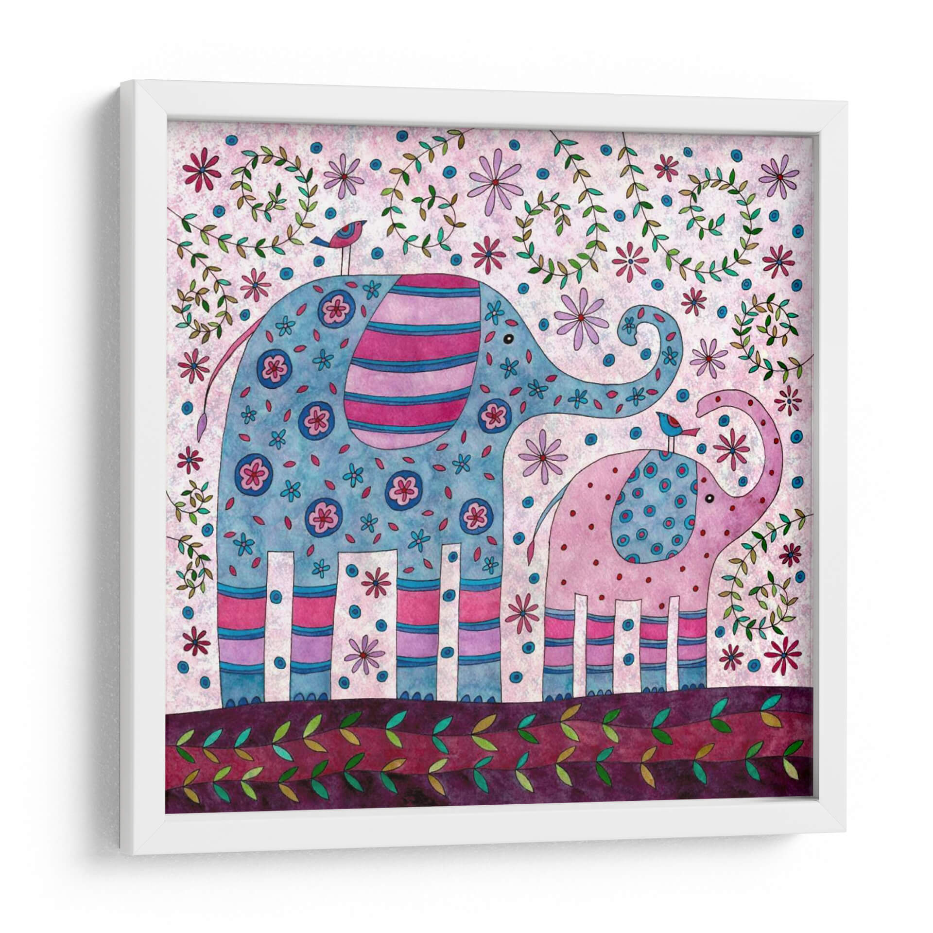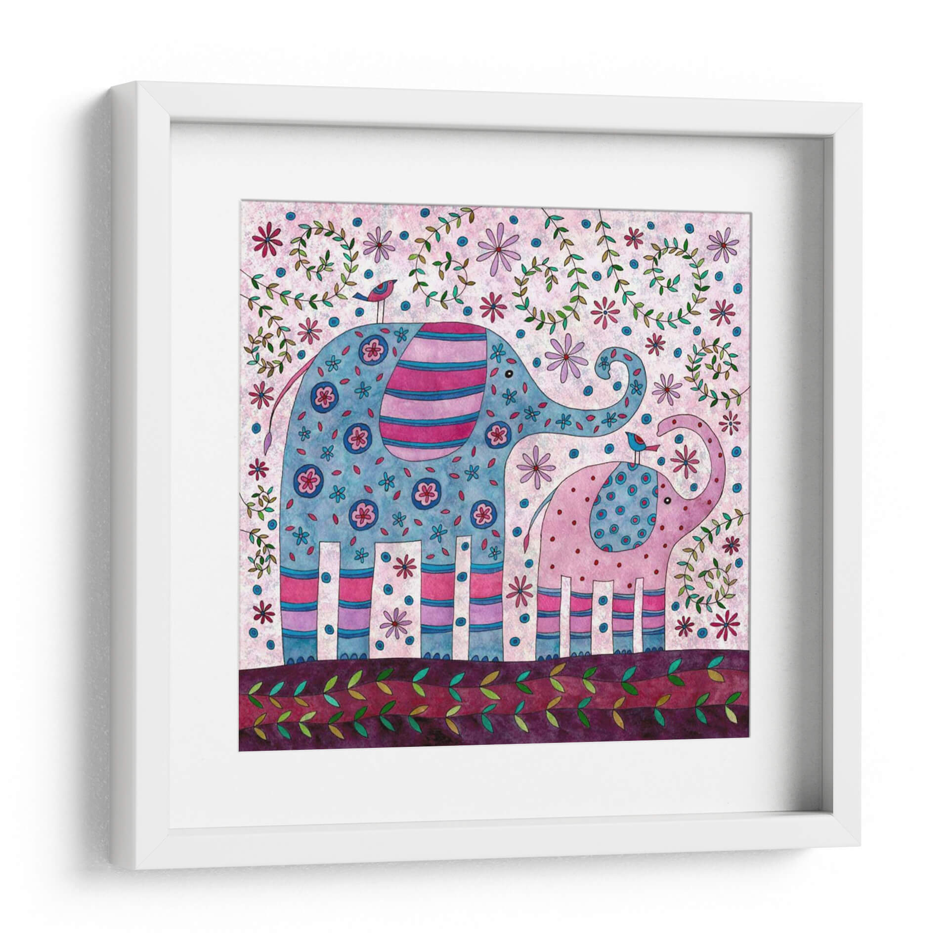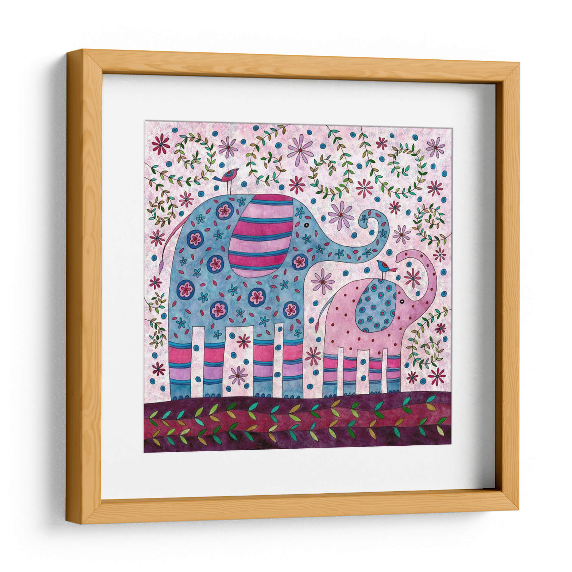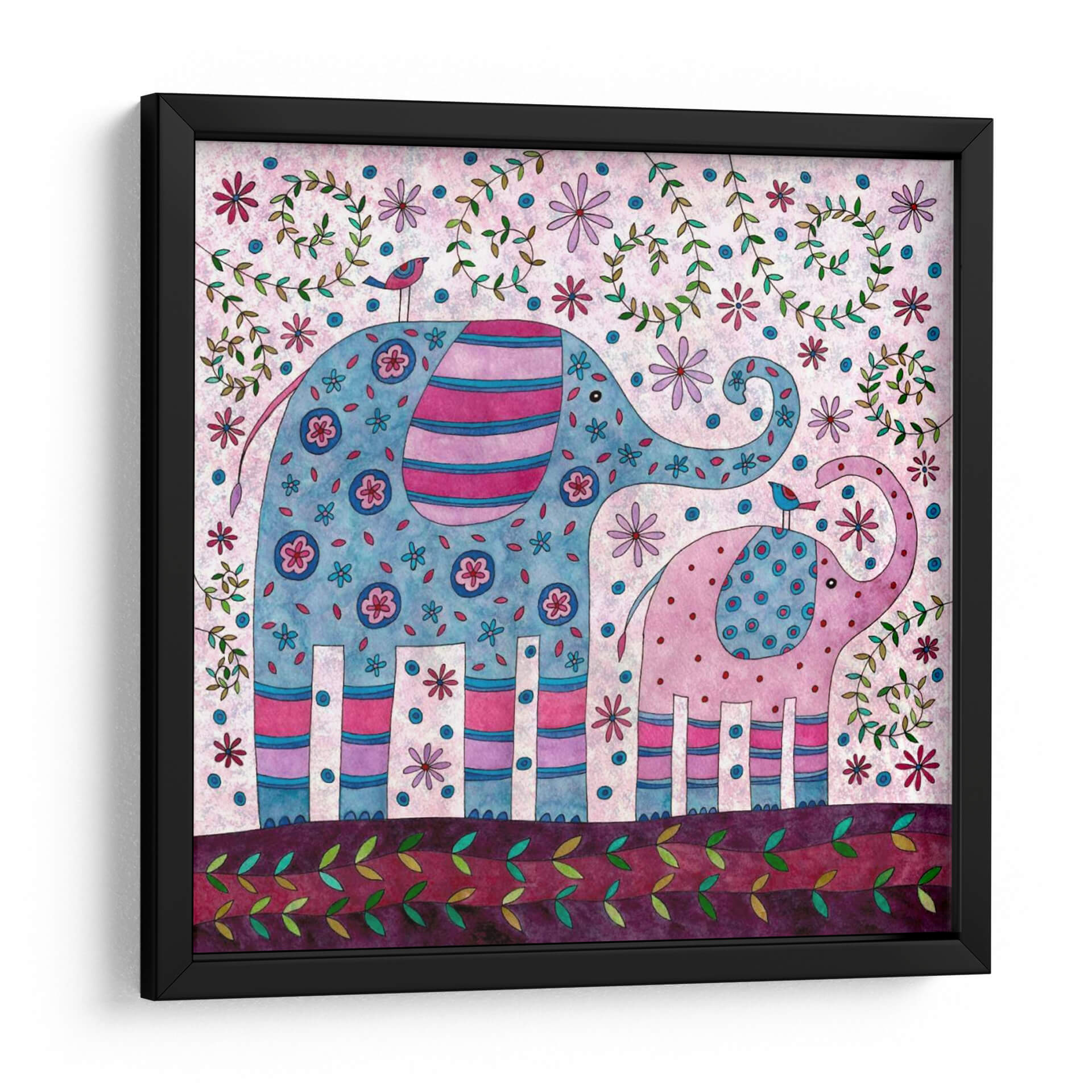 Sumérgete en la ternura y la alegría con "Senda De Los Elefantes", una encantadora obra de arte de Kim Conway que transformará cualquier espacio. Este cuadro decorativo captura la esencia de la inocencia y la conexión familiar a través de la tierna imagen de dos elefantes, uno grande y otro pequeño, adornados con vibrantes patrones de flores y rayas en tonos azules y rosas. El fondo, salpicado de delicadas flores y zarcillos verdes sobre un suave tono rosado, crea una atmósfera lúdica y soñadora. La composición, centrada en esta adorable pareja y un pequeño pájaro posado en el lomo del elefante mayor, evoca sentimientos de paz, dulzura y armonía. Ideal para añadir un toque de calidez y color a dormitorios infantiles, salas de estar acogedoras o cualquier rincón que necesite una dosis de encanto y serenidad. "Senda De Los Elefantes" es más que una simple pieza decorativa; es una invitación a la felicidad y al amor incondicional, perfecta para quienes buscan un arte que hable al corazón.