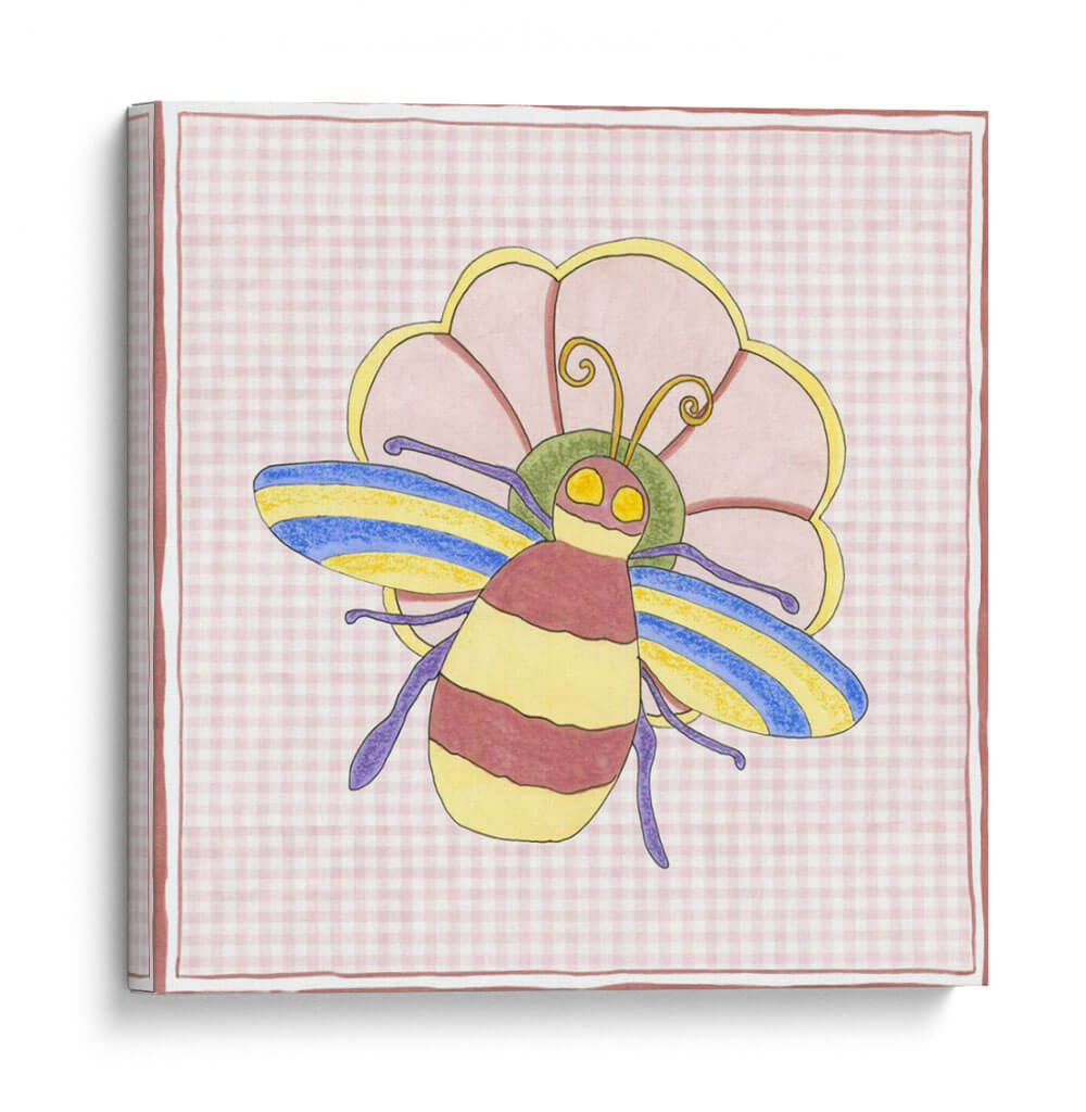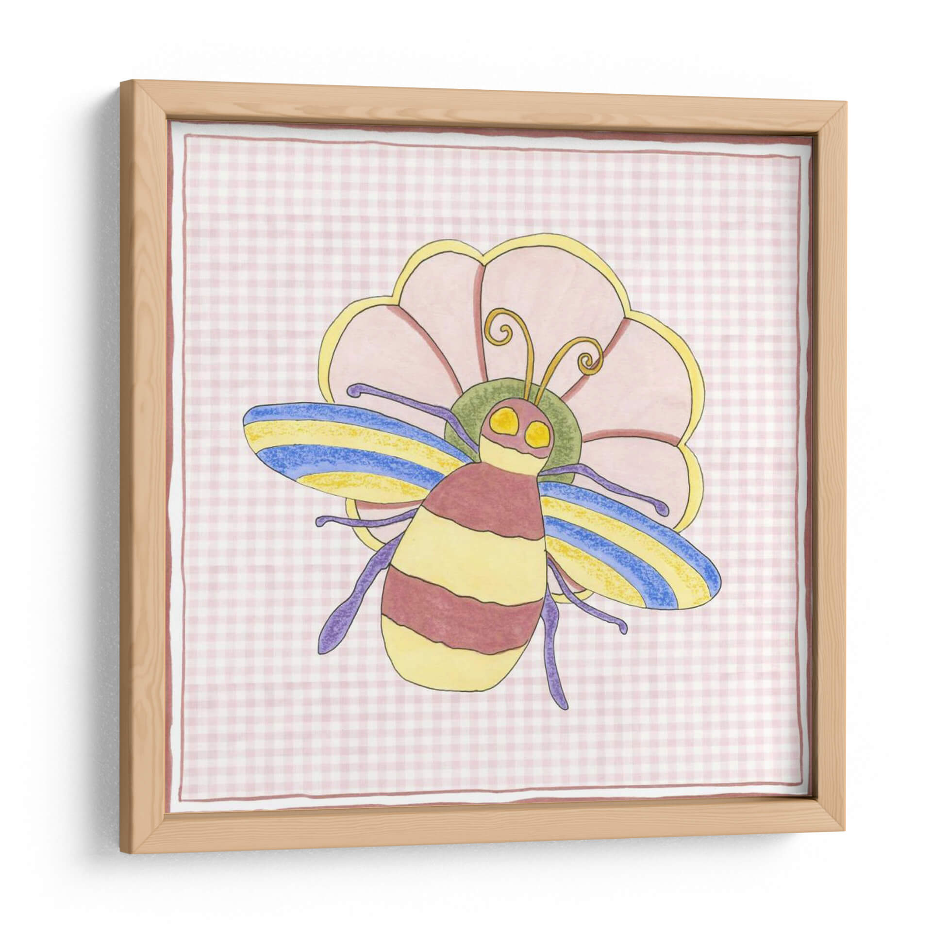 Adéntrate en un mundo de dulzura y color con "Silueta En Gingham Rosa I", una encantadora obra de arte de Nancy Slocum. Esta pieza captura la esencia lúdica de una abeja vibrante, posada delicadamente sobre el pétalo de una flor de ensueño, todo ello sobre un fondo de cuadros gingham en tonos rosados suaves. La paleta de colores, que combina amarillos cálidos, morados juguetones, azules vibrantes y delicados rosas, crea una atmósfera alegre y acogedora. El estilo artístico, con sus líneas definidas y su diseño casi naíf, evoca una sensación de inocencia y encanto, ideal para espacios que buscan un toque de originalidad y calidez. "Silueta En Gingham Rosa I" es perfecta para añadir un punto focal lleno de personalidad a una habitación infantil, una cocina con un toque campestre o incluso un estudio que necesite un estallido de energía positiva. Su composición equilibrada y su tema universalmente apreciado la convierten en una elección versátil para quienes desean infundir sus hogares con arte que celebre la belleza de la naturaleza de una manera única y artística. Descubre la magia de esta pieza y transforma tus paredes en un lienzo de alegría.