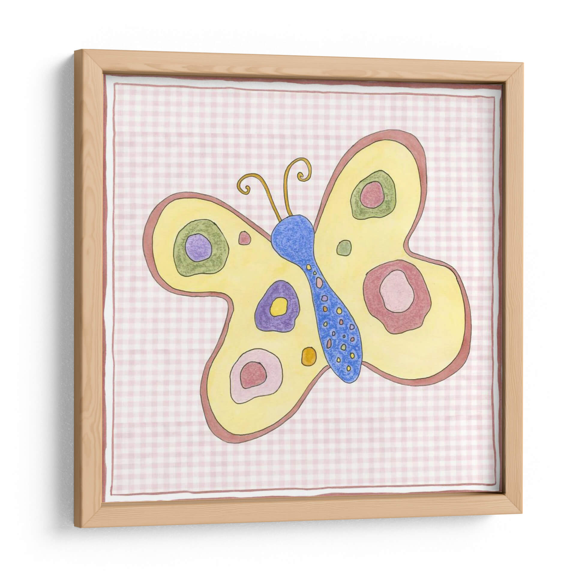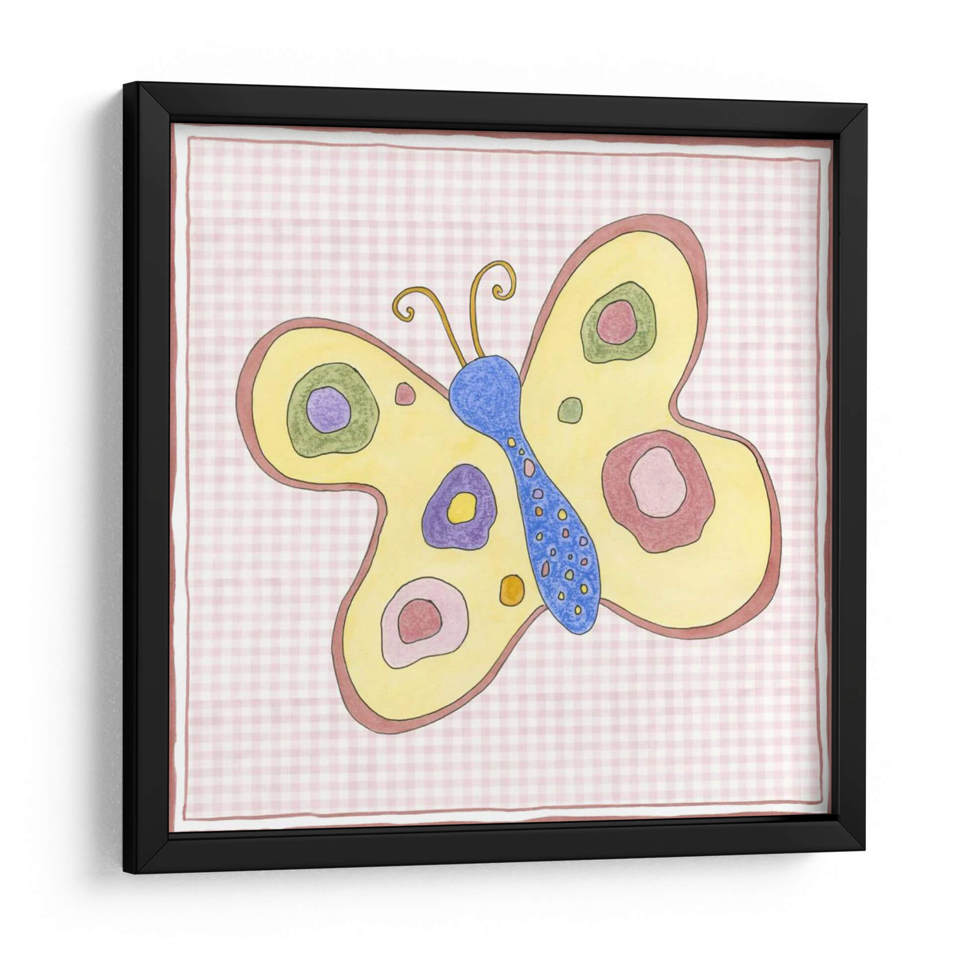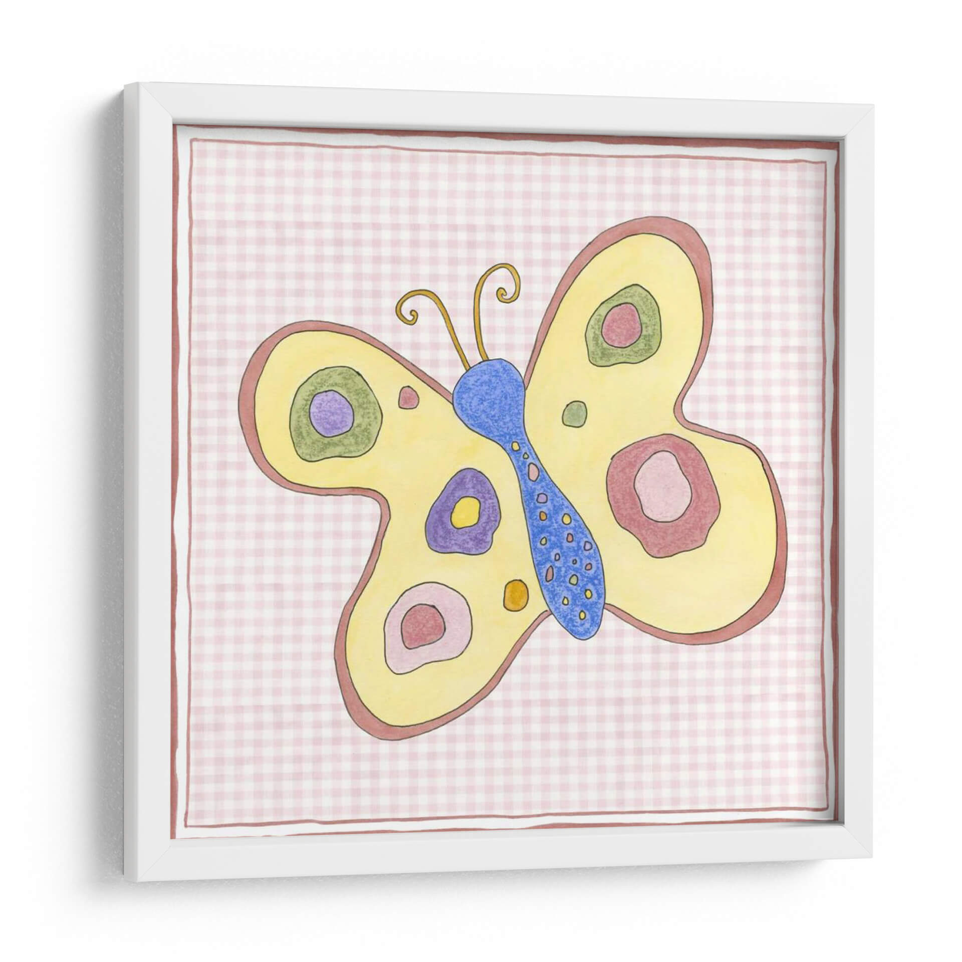 Aporta un toque de ensueño y color a tu hogar con "Silueta En Gingham Rosa Ii", una encantadora obra de arte que celebra la belleza etérea de las mariposas. Esta pieza, creada por la artista Nancy Slocum, presenta una mariposa estilizada en vibrantes tonos amarillos y azules, adornada con círculos concéntricos en morado, rosa y verde que añaden profundidad y un aire juguetón. El fondo, un delicado patrón de cuadros gingham en rosa pálido, evoca una sensación de nostalgia y calidez, creando un contraste suave pero cautivador con la figura central. El estilo artístico, con sus contornos definidos y una paleta de colores alegre, se inclina hacia lo lúdico y lo decorativo, ideal para espacios que buscan infundir vitalidad y una pizca de fantasía. Es perfecta para añadir un acento de color y un punto focal en habitaciones infantiles, dormitorios o cualquier rincón que necesite un soplo de alegría primaveral. "Silueta En Gingham Rosa Ii" es más que una simple decoración; es una invitación a soñar despierto y a encontrar la belleza en los detalles más simples de la naturaleza. Una pieza versátil que encaja en decoraciones modernas, rústicas o incluso eclécticas, aportando siempre una dosis de optimismo.