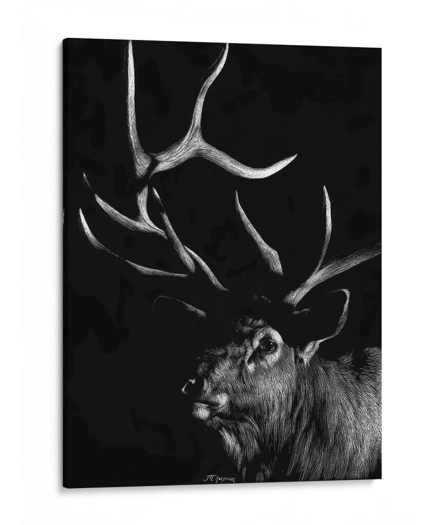Captura la majestuosidad de la naturaleza con "Actitud", una obra de arte contemporánea que inmortaliza la imponente figura de un ciervo en un impresionante retrato en blanco y negro. La obra destaca por su detallado realismo y el dramático contraste entre las luces y sombras, resaltando la textura del pelaje y la magnificencia de las astas. El fondo oscuro, casi abismal, centra toda la atención en el majestuoso animal, creando una atmósfera de misterio y poder salvaje. Este cuadro decorativo es perfecto para aquellos que buscan añadir un toque de elegancia rústica y fuerza a su hogar u oficina. Su paleta monocromática lo hace increíblemente versátil, integrándose a la perfección en decoraciones modernas, minimalistas o incluso industriales. Imagina este retrato como el punto focal de tu sala de estar, aportando un aire de serenidad y conexión con el mundo natural, o como una pieza inspiradora en tu estudio. "Actitud" no es solo una decoración, es una declaración de estilo que evoca respeto por la vida silvestre y la belleza atemporal de la naturaleza.
