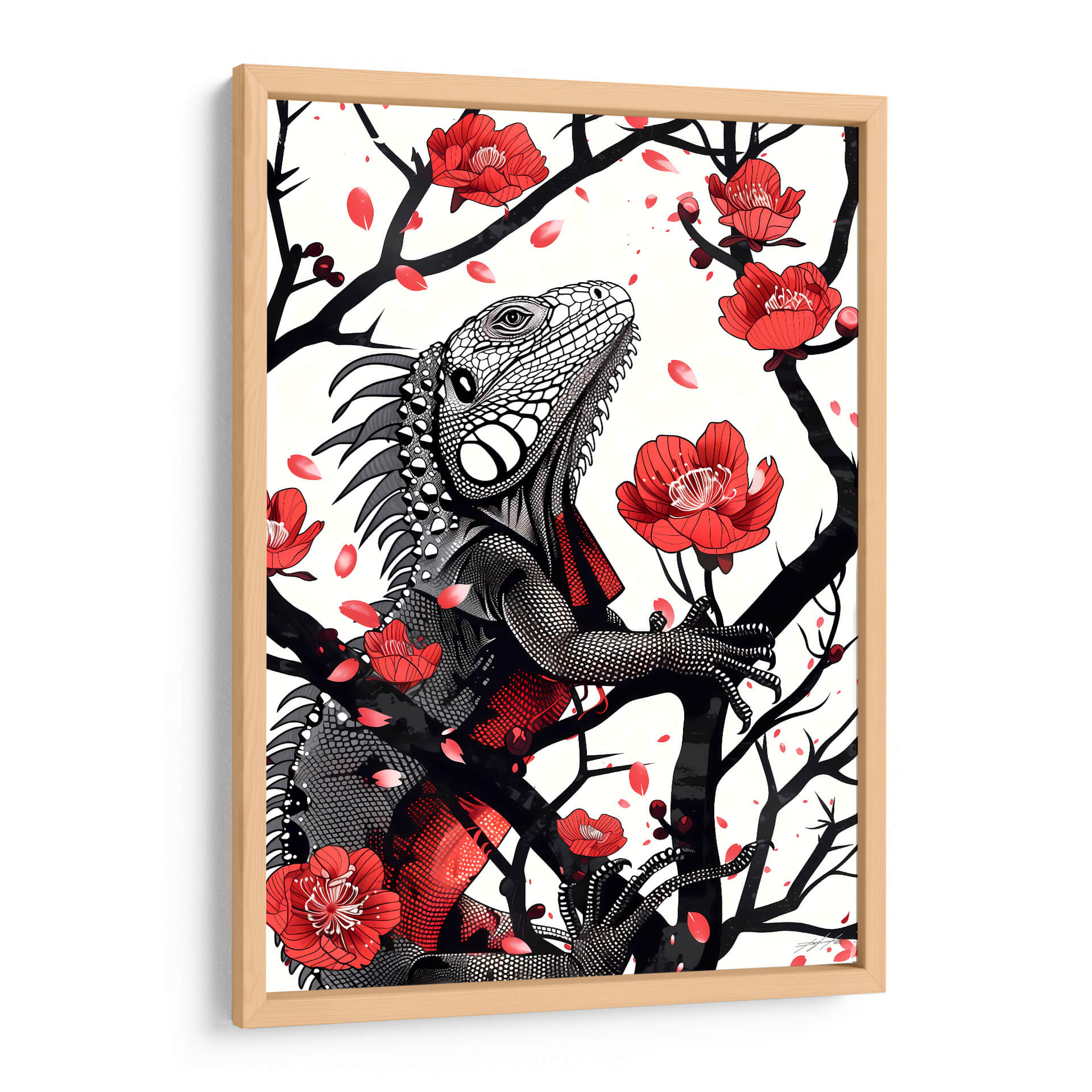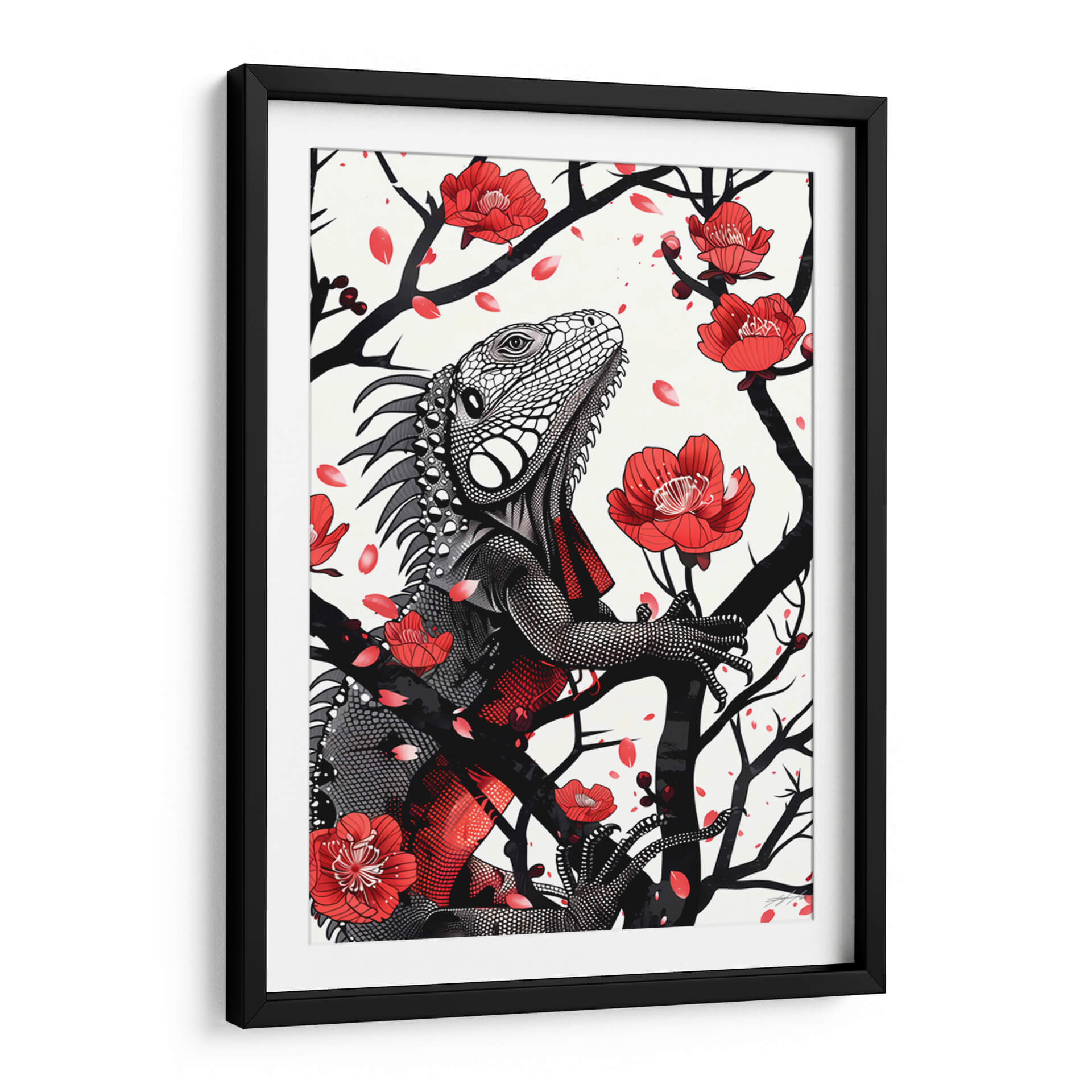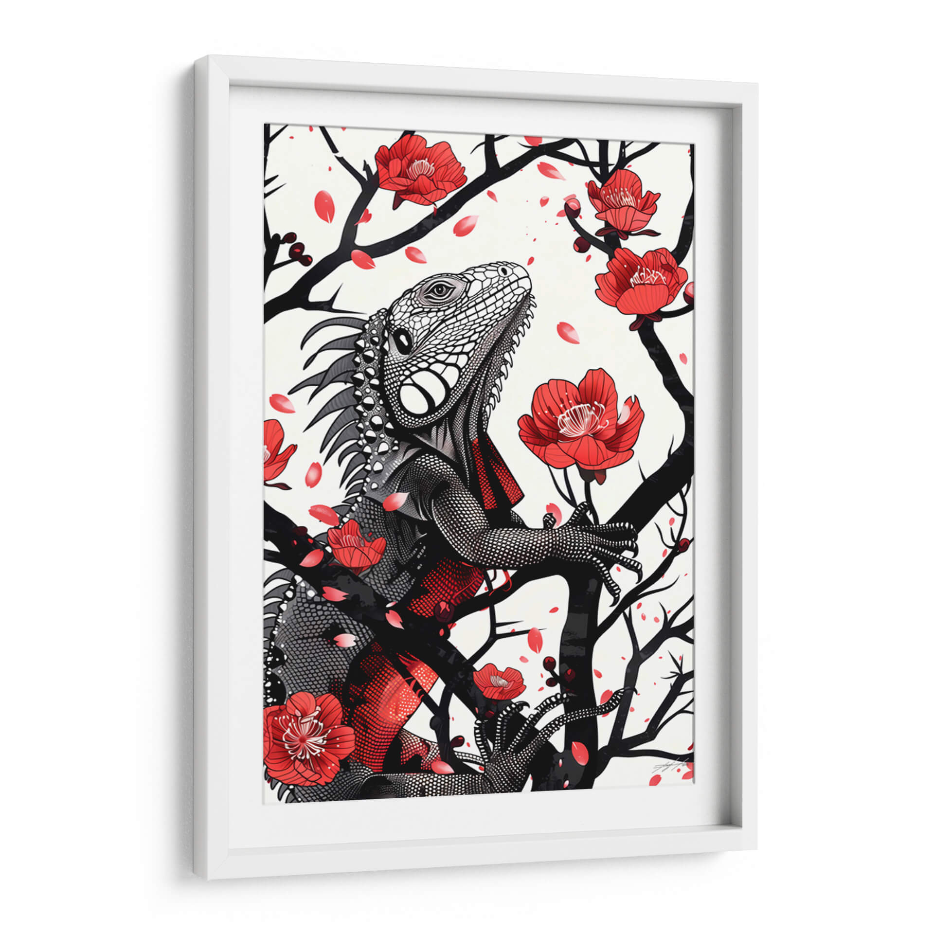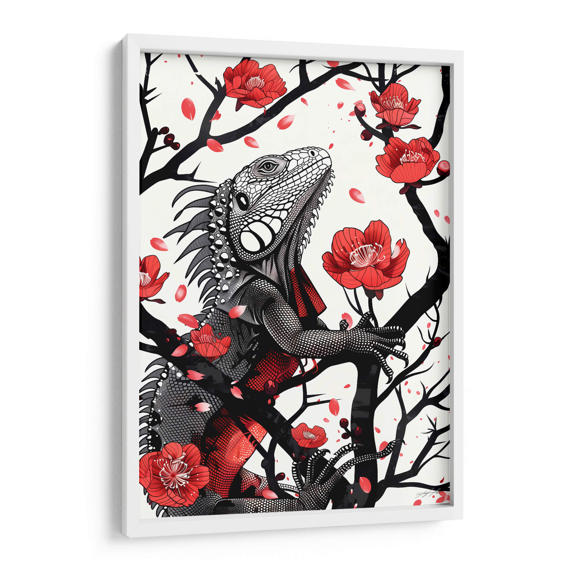 Sumérgete en la cautivadora belleza del cuadro decorativo "Alma de Iguana Roja" del artista DeLaVegaGaming. Esta obra maestra contemporánea presenta una iguana detallada, representada con una intrincada técnica de grabado, posada grácilmente entre ramas florales de cerezo en plena floración. Los vibrantes pétalos rojos y las flores contrastan audazmente con el elegante diseño en blanco y negro del reptil y las siluetas oscuras de los árboles, creando una composición visualmente impactante y llena de vida. La paleta de colores, dominada por el rojo intenso y el blanco y negro, evoca una sensación de energía contenida y una delicada armonía entre la naturaleza y la figura central. Su estilo único, que fusiona elementos realistas con un tratamiento gráfico y estilizado, la convierte en una pieza versátil, perfecta para añadir un toque de exotismo y sofisticación a cualquier espacio. Ideal para salas de estar modernas, estudios o como punto focal en un dormitorio, este cuadro decorativo es una invitación a contemplar la fuerza serena y la belleza salvaje de la naturaleza, transformando tu hogar en una galería personal llena de carácter y estilo. Deja que "Alma de Iguana Roja" sea la pieza que despierte conversaciones y admiración en tu entorno.