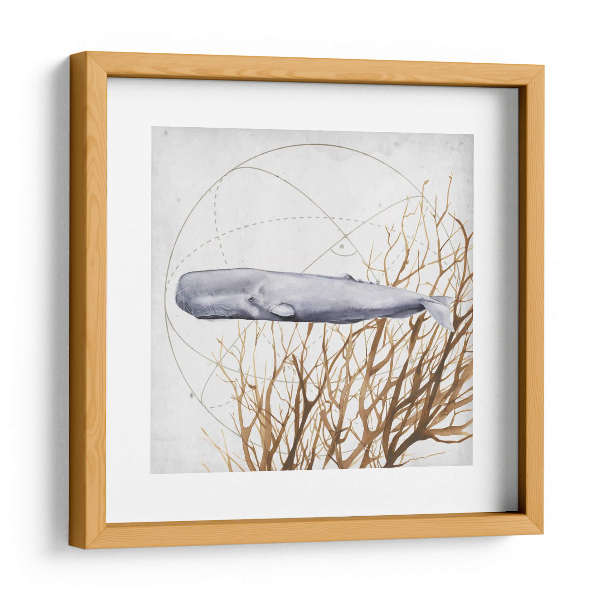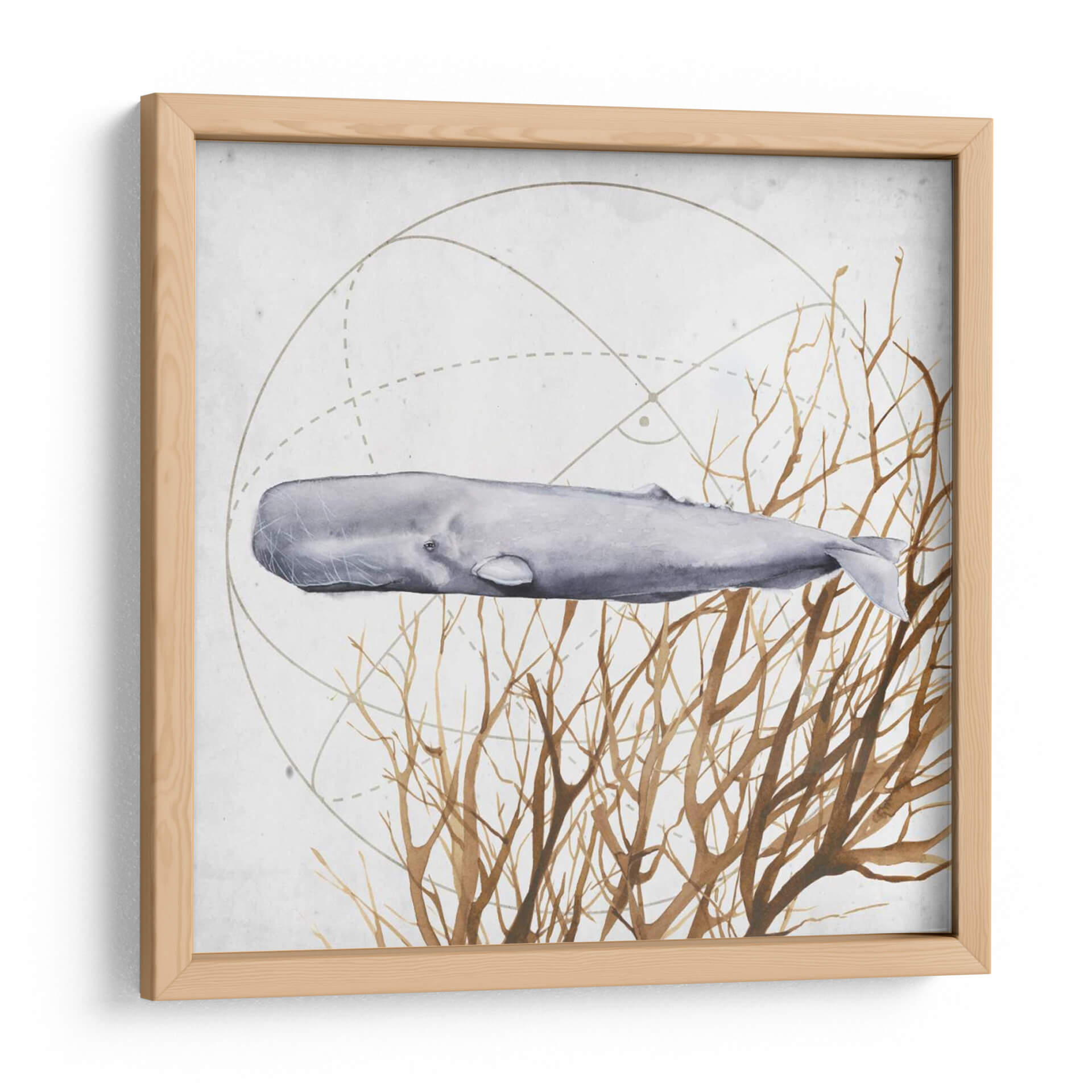Sumérgete en la serena majestuosidad del océano con "Amor Del Mar Iv", una obra de arte cautivadora de Grace Popp. Este cuadro decorativo presenta un cachalote en escala de grises, representado con delicadeza acuarela, que parece flotar en un fondo texturizado de color hueso. Rodeando a la imponente criatura marina, emergen ramas de un tono sepia cálido, evocando la sensación de un ecosistema submarino o un jardín misterioso. Un intrincado diseño geométrico con líneas finas y discretos puntos y arcos enmarca sutilmente la composición, añadiendo un toque de misticismo y orden al conjunto. La paleta de colores, dominada por grises suaves, marrones terrosos y el fondo neutro, crea una atmósfera de calma y contemplación, perfecta para aquellos que buscan un remanso de paz en su hogar. "Amor Del Mar Iv" es ideal para salas de estar, dormitorios o estudios que deseen incorporar un elemento natural y espiritual. Su estilo, que fusiona lo figurativo con toques abstractos y geométricos, lo convierte en una pieza versátil capaz de complementar tanto decoraciones modernas como rústicas o bohemias. Deja que esta obra te transporte a las profundidades marinas y te conecte con la fuerza serena de la naturaleza.