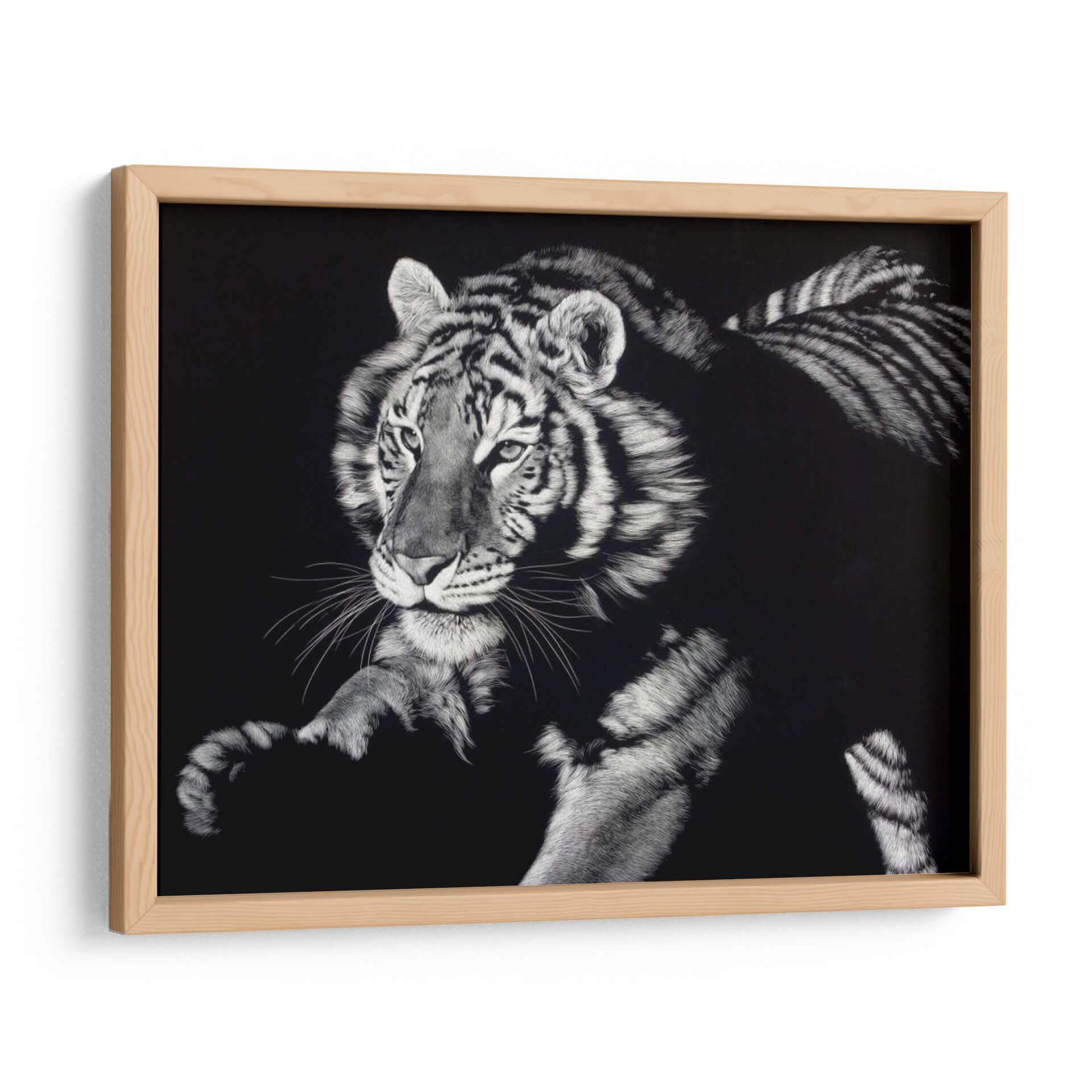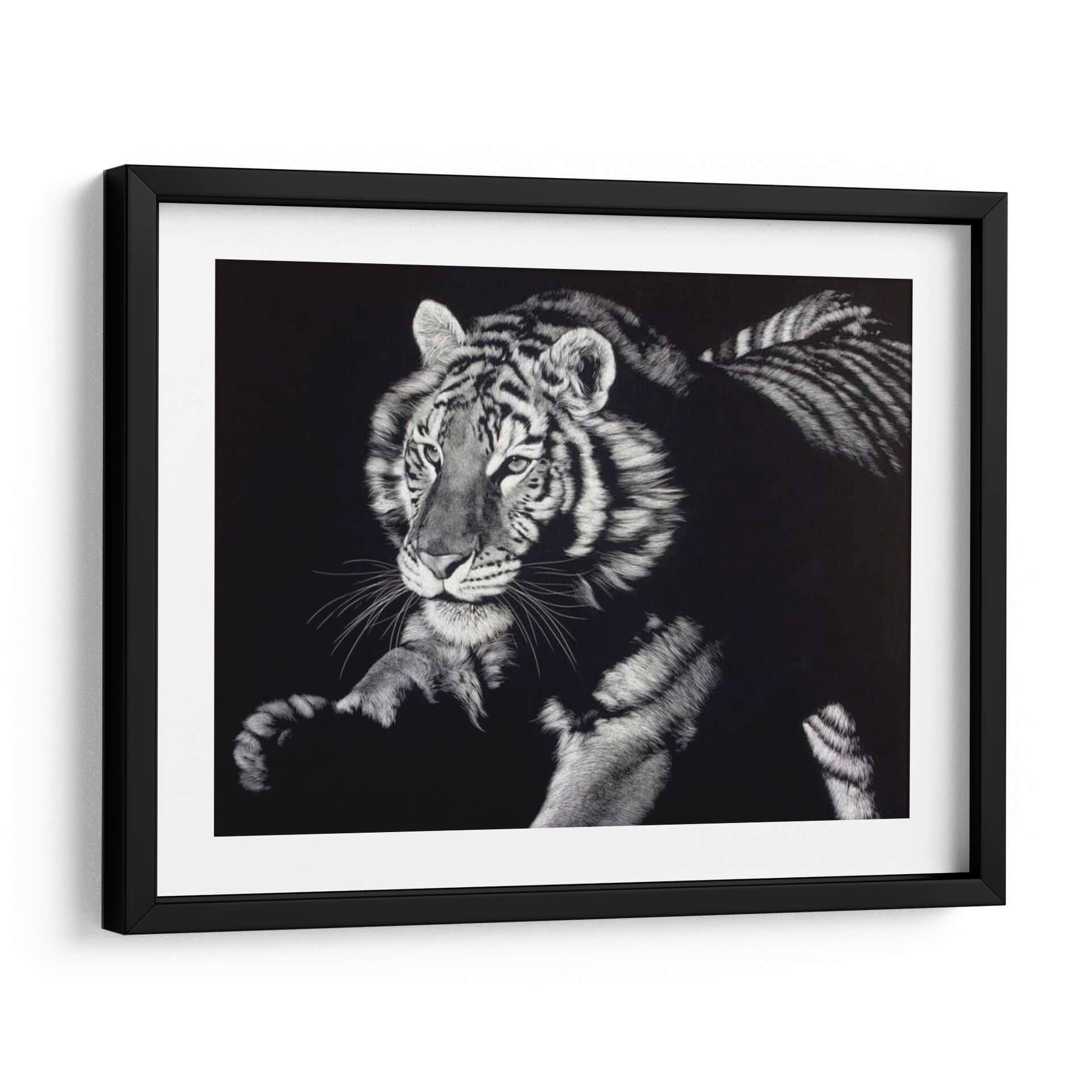 Sumérgete en la intensidad salvaje y la elegancia indómita con el cuadro "Ardiendo Intensamente" de Julie T. Chapman. Esta obra maestra captura la esencia de un tigre en todo su esplendor, con un contraste impactante entre las rayas vibrantes y el fondo oscuro. La técnica detallada resalta la textura del pelaje, transmitiendo una sensación de poder y misterio que cautivará a cualquier espectador. Ideal para espacios que buscan un toque de dramatismo y sofisticación, este cuadro decorativo se convertirá en el punto focal de tu sala de estar, estudio u oficina. Su paleta de colores monocromática, centrada en blancos y negros, permite una versatilidad excepcional para integrarse en diversas decoraciones, desde las más modernas hasta las más clásicas. Permite que la fuerza y la belleza de este felino inspiren tu entorno y añadan una dimensión de carácter único a tus paredes. "Ardiendo Intensamente" no es solo una pieza de arte, es una declaración de estilo y una ventana a la naturaleza en su forma más pura y poderosa.
