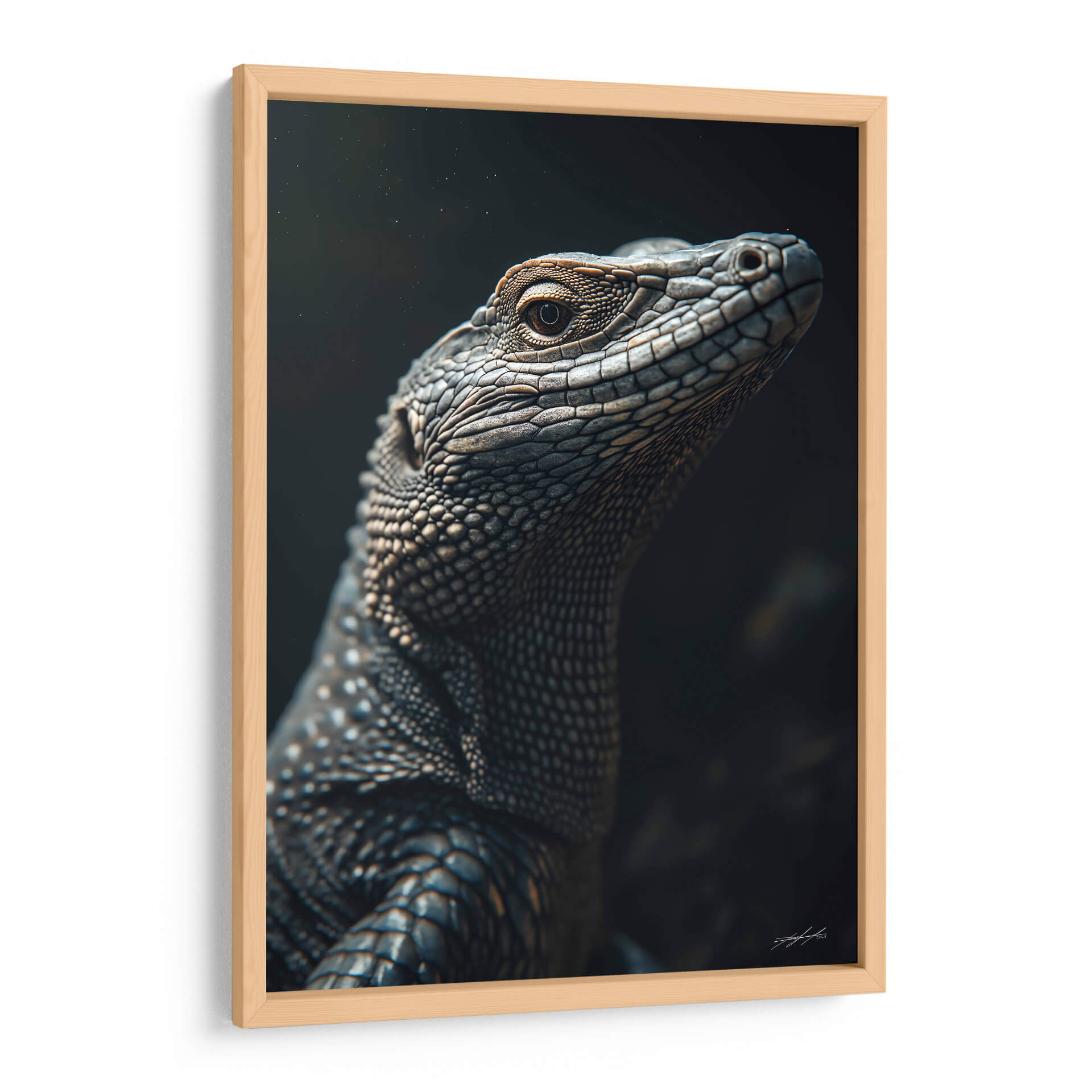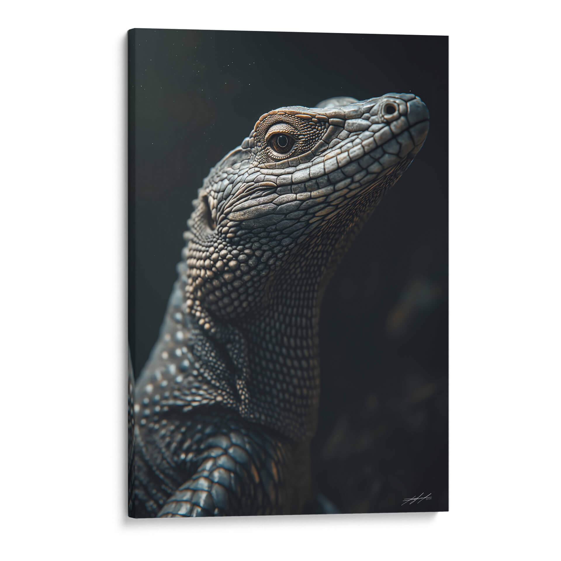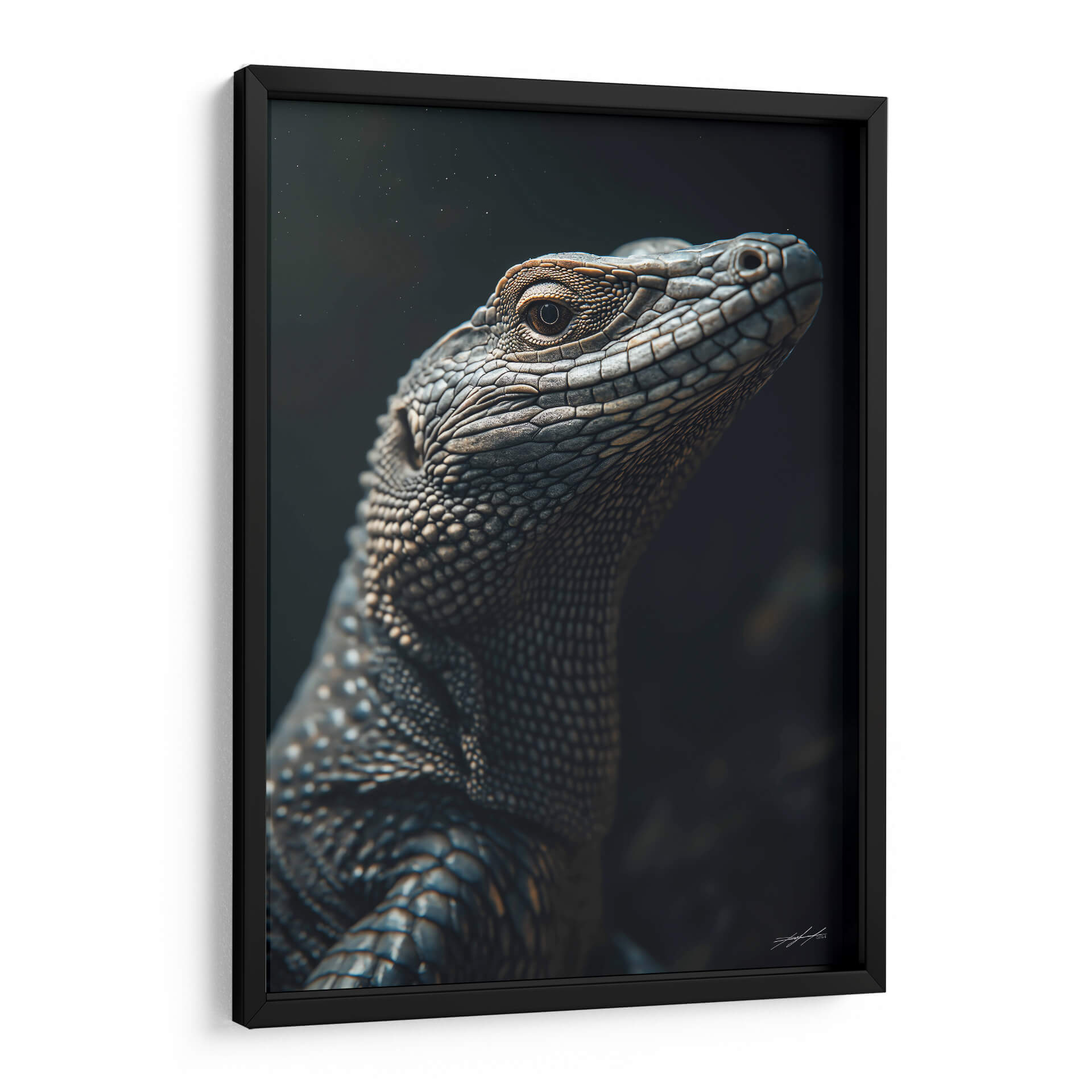 Sumérgete en la misteriosa elegancia de "Belleza Animal - Lagarto", una obra de arte contemporáneo que captura la esencia salvaje con un detalle asombroso. Este cuadro decorativo presenta un primer plano dramático de un lagarto, donde cada escama está meticulosamente renderizada, creando una textura hipnótica y realista. La paleta de colores, dominada por tonos oscuros y profundos, se ve sutilmente realzada por reflejos de luz que resaltan los ojos penetrantes y la intrincada piel del reptil, generando una atmósfera de intriga y poder silencioso. El estilo realista, combinado con una composición que enfoca la mirada del espectador en los detalles cautivadores de la criatura, hace de esta pieza un punto focal impresionante para cualquier espacio. Ideal para amantes de la naturaleza, del arte con un toque exótico o para aquellos que buscan añadir un elemento de sofisticación salvaje a su hogar u oficina. Este cuadro decorativo "Belleza Animal - Lagarto" no solo decora, sino que también evoca una conexión primal y un aprecio por las maravillas del mundo natural, transformando cualquier habitación en una galería personal llena de carácter y profundidad.