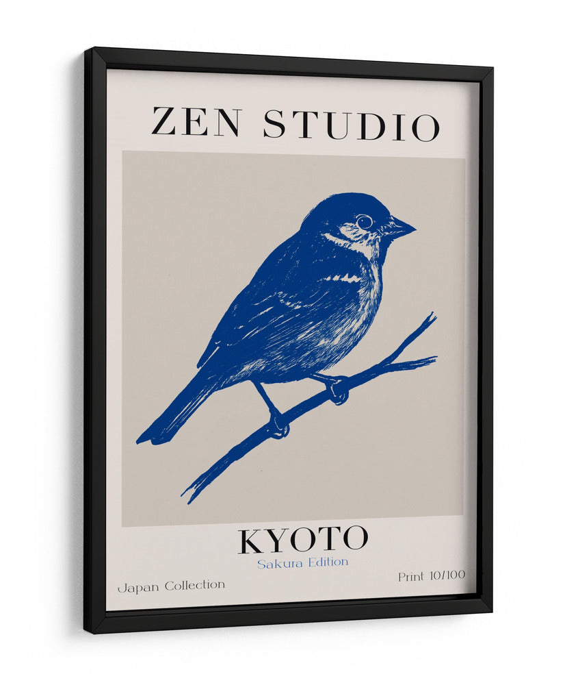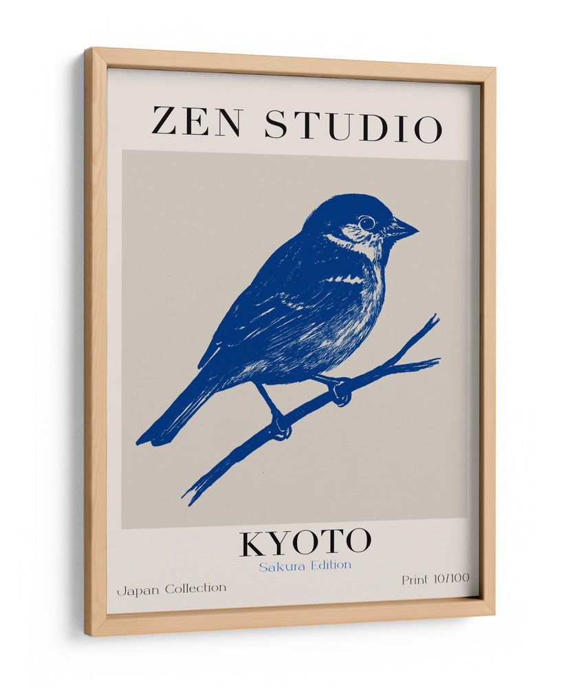 Transforma tu espacio con el encanto sereno de este cuadro decorativo, una pieza inspirada en la estética japonesa. La obra presenta un detallado boceto de un gorrión posado sobre una rama, ejecutado en un vibrante azul cobalto sobre un fondo neutro y sutil. Este contraste de color evoca una sensación de calma y elegancia, ideal para crear un ambiente de paz y armonía en cualquier habitación. Su estilo, que combina la delicadeza del boceto con la fuerza del color, lo convierte en un punto focal cautivador. La composición se centra en la figura del ave, transmitiendo una quietud contemplativa que invita a la reflexión. Perfecto para añadir un toque de naturaleza estilizada a tu sala de estar, dormitorio u oficina. Este cuadro no solo decora, sino que también inspira tranquilidad y una conexión con la belleza simple y efímera de la naturaleza. Una adición exquisita a tu colección de arte de pared.