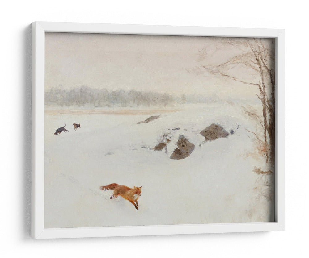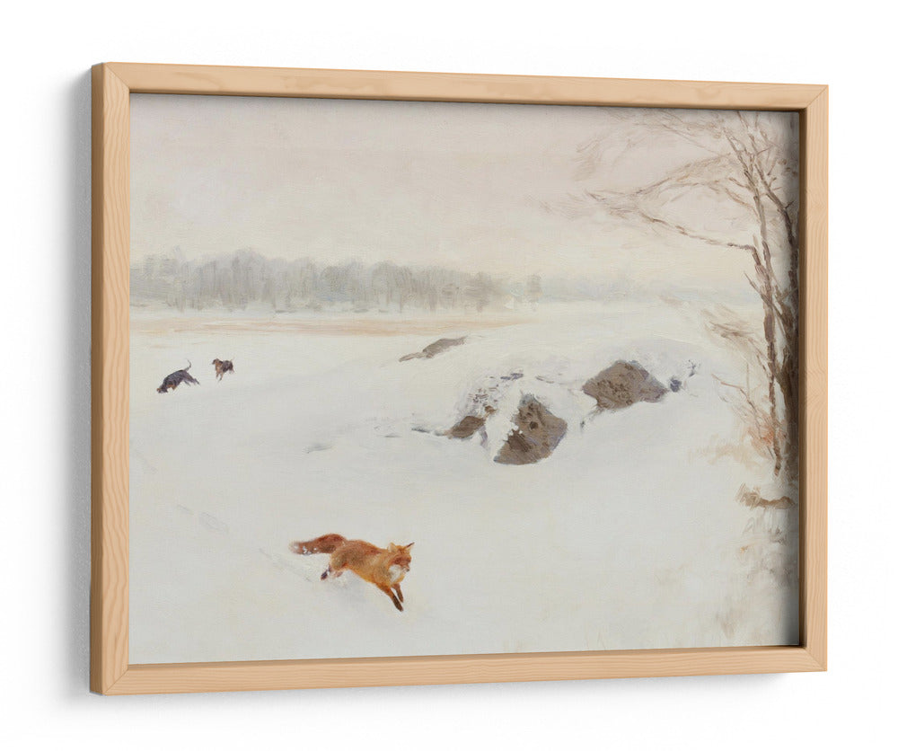 Sumérgete en la serena belleza de un paisaje invernal capturada en este cuadro decorativo, una obra maestra que evoca la calma y la vida salvaje. La pieza presenta un zorro audaz y dos perros persiguiéndolo a través de un manto de nieve prístina, bajo un cielo grisáceo y árboles escasos que anuncian la llegada del frío. La paleta de colores, dominada por blancos puros, grises suaves y toques cálidos del pelaje del zorro y el marrón de los árboles, crea una atmósfera melancólica pero vibrante. El estilo, que recuerda al realismo naturalista con toques impresionistas en la representación del entorno, invita a la contemplación y añade profundidad a la escena. Este cuadro decorativo es ideal para aquellos que buscan infundir a sus hogares u oficinas una sensación de conexión con la naturaleza y la energía de la vida salvaje en su estado más puro. Un punto focal perfecto para salas de estar, estudios o cualquier espacio que necesite un toque de elegancia rústica y una historia visual cautivadora. Añade esta pieza única a tu colección y disfruta de la tranquilidad y la acción que ofrece.