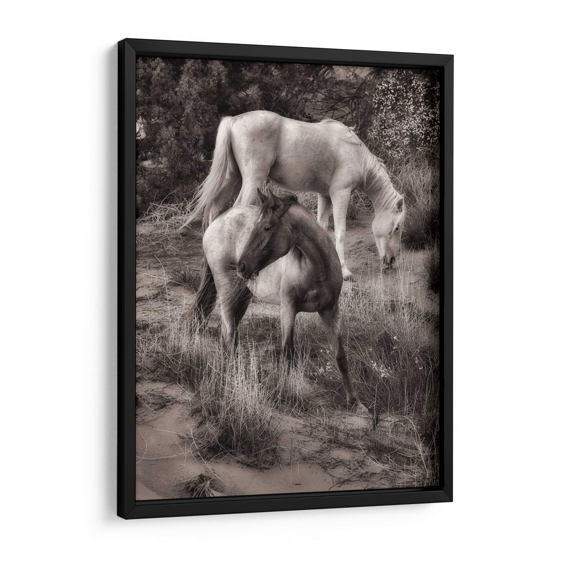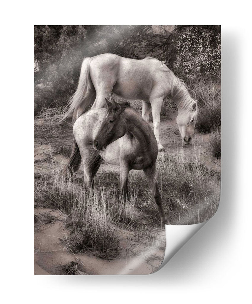 Captura la esencia indómita y la belleza serena de la naturaleza con el cuadro decorativo "Caballos De Playa II" de David Drost. Esta obra maestra captura dos caballos en un entorno natural evocador, presentados en una paleta de colores sepia que realza la textura y la forma de estos majestuosos animales. La composición, con un caballo en primer plano y otro pastando suavemente al fondo, crea una sensación de profundidad y calma. El estilo fotográfico, con un tratamiento que recuerda a la pintura clásica, otorga a la pieza una atmósfera atemporal y elegante. Ideal para espacios que buscan un toque de sofisticación rústica o una conexión con la vida salvaje. Los tonos neutros y terrosos de la obra la convierten en una adición versátil para cualquier decoración, desde la más moderna hasta la más tradicional. Imagina este cuadro decorativo aportando una vibra de tranquilidad y fuerza a tu sala de estar, estudio u oficina. "Caballos De Playa II" no es solo una imagen, es una invitación a la contemplación y a la apreciación de la elegancia natural en su máxima expresión, perfecta para amantes del arte ecuestre y la fotografía de naturaleza.