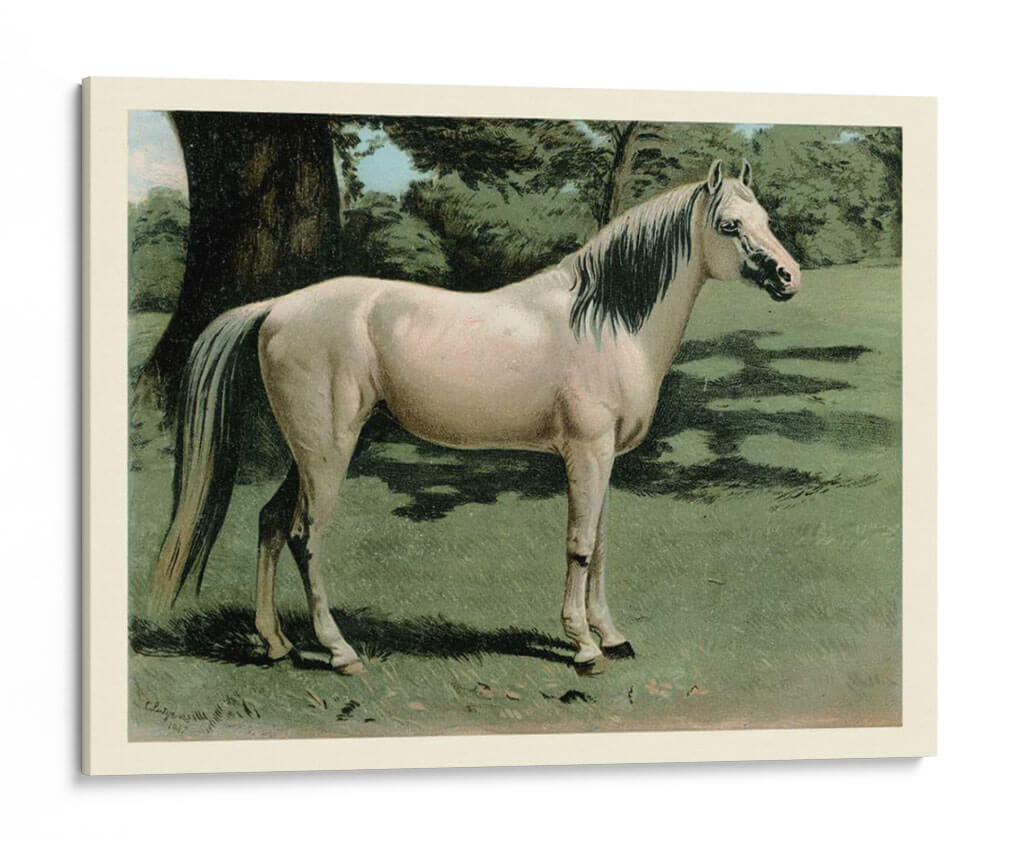 Captura la nobleza y la elegancia atemporal con "Cassells Horse I", una obra de arte que evoca la majestuosidad de la naturaleza y la fuerza serena de un corcel blanco. Este cuadro decorativo presenta un caballo blanco en un prado verde, bajo la sombra de un árbol frondoso, con un cielo azul claro asomando entre el follaje. La paleta de colores, dominada por verdes naturales, blancos cremosos y toques de azul y negro, crea una atmósfera de tranquilidad y conexión con el entorno natural. El estilo de la obra, con un toque clásico y una ejecución detallada, resalta la anatomía perfecta y el porte distinguido del animal. Es una pieza ideal para añadir un punto de sofisticación y calma a cualquier espacio, ya sea una sala de estar, un estudio o una oficina que busque inspirar grandeza y serenidad. "Cassells Horse I" no es solo una decoración, sino una ventana a la belleza indómita del mundo ecuestre, perfecta para amantes de los animales y del arte con un gusto refinado.