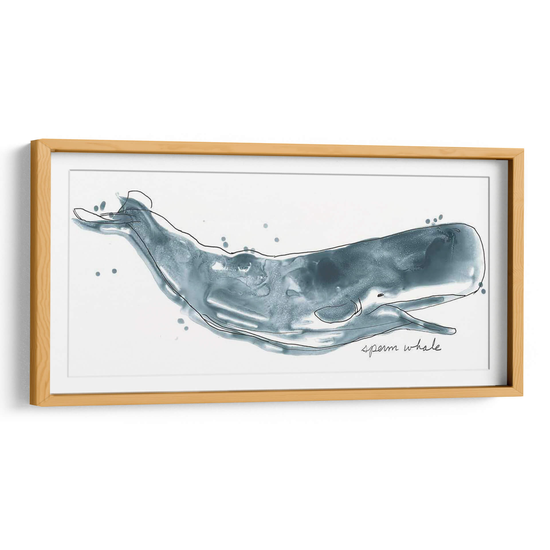Sumérgete en las profundidades marinas con "Cetacea Esperma Ballena", una cautivadora obra de arte de June Erica Vess. Este cuadro decorativo captura la majestuosidad y el misterio de una ballena esperma en un estilo acuarelado y etéreo. Los tonos de azul profundo, salpicados con toques más claros y líneas de contorno fluidas, crean una sensación de movimiento y gracia submarina. La composición minimalista, centrada en la silueta de la ballena contra un fondo blanco o texturizado, permite que la figura principal destaque, evocando una atmósfera de serenidad y asombro. Es la pieza perfecta para añadir un toque de elegancia natural a tu salón, dormitorio o estudio, transportando la calma del océano a tu hogar. Ideal para amantes de la vida marina, el arte contemporáneo y la decoración que inspira tranquilidad y contemplación. Añade esta obra maestra a tu colección y deja que su belleza trascienda el tiempo y el espacio.