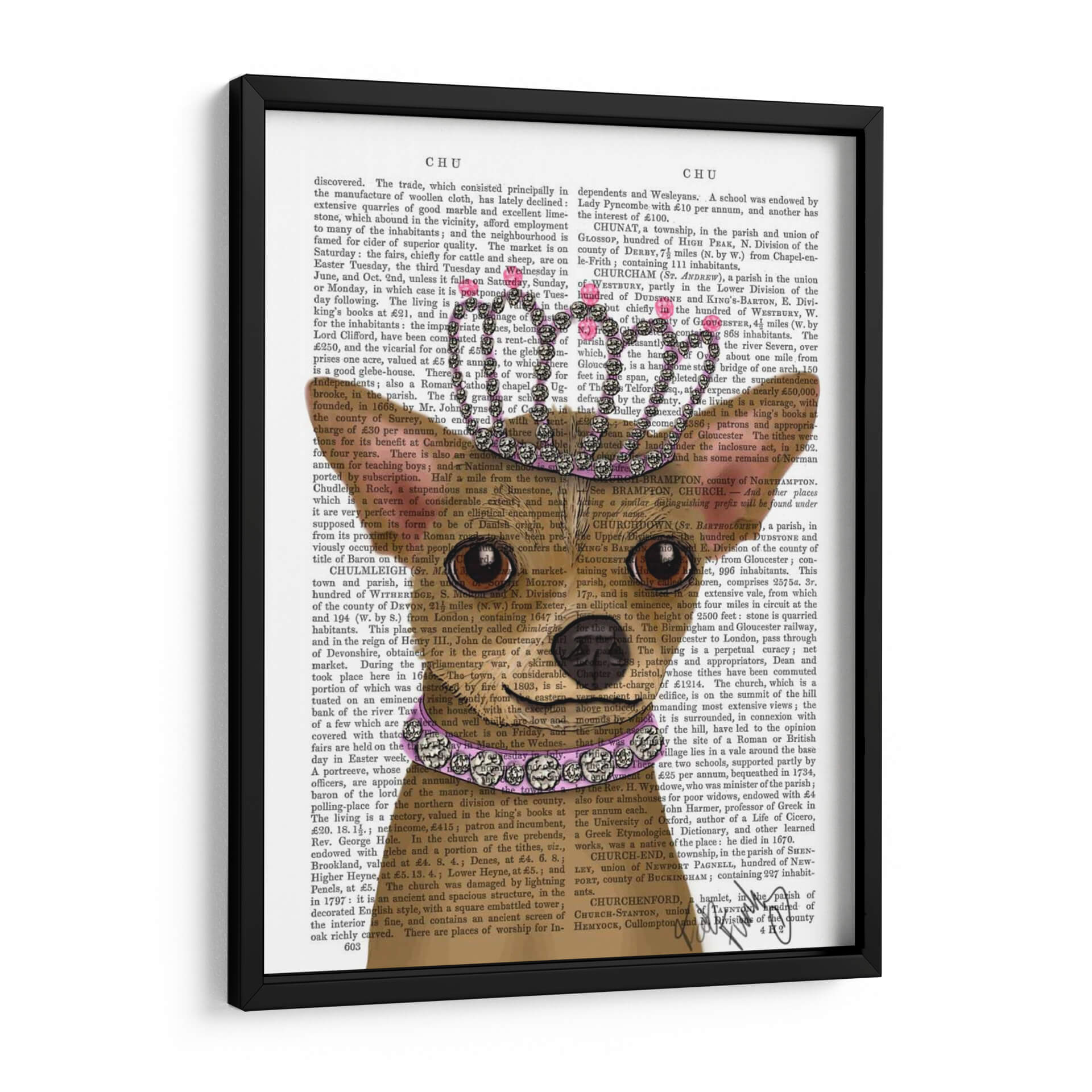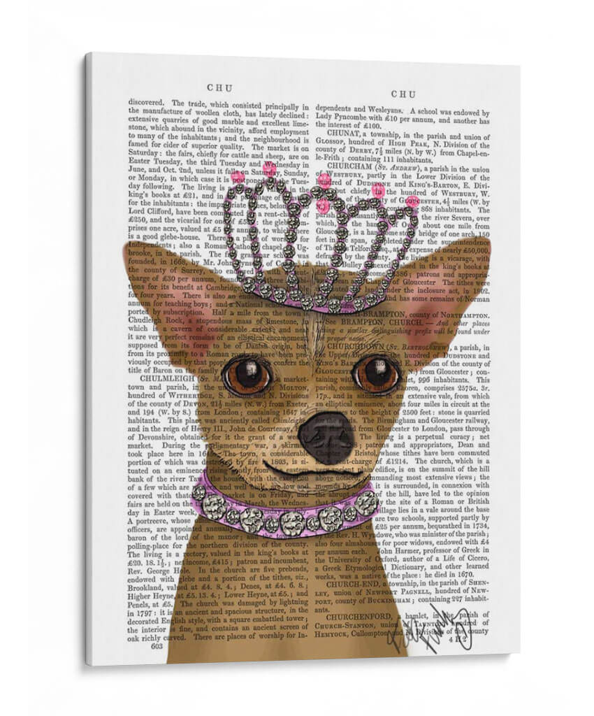 Transforma tu espacio con el encantador cuadro decorativo "Chihuahua Y Tiara", una obra de arte digital que captura la dulzura y la elegancia con un toque de fantasía. Este diseño presenta un adorable chihuahua adornado con una tiara brillante y un collar de perlas, posando con una mirada tierna sobre un fondo de texto antiguo, creando un contraste fascinante entre lo clásico y lo moderno. La paleta de colores, dominada por tonos cálidos y terrosos del fondo con los detalles brillantes de la tiara y el collar, aporta una sensación de calidez y sofisticación. La composición, centrada en el carismático personaje, lo convierte en un punto focal perfecto para cualquier habitación. Ideal para amantes de los animales y para aquellos que buscan añadir un elemento de personalidad y alegría a su decoración, este cuadro es perfecto para salones, dormitorios o estudios. Su estilo único fusiona la ternura de un animal con un toque de realeza, generando una atmósfera juguetona pero refinada. "Chihuahua Y Tiara" no es solo una pieza decorativa, es una declaración de estilo que evoca sonrisas y admiración, añadiendo un carácter distintivo a tu hogar u oficina y creando un ambiente acogedor y lleno de encanto.
