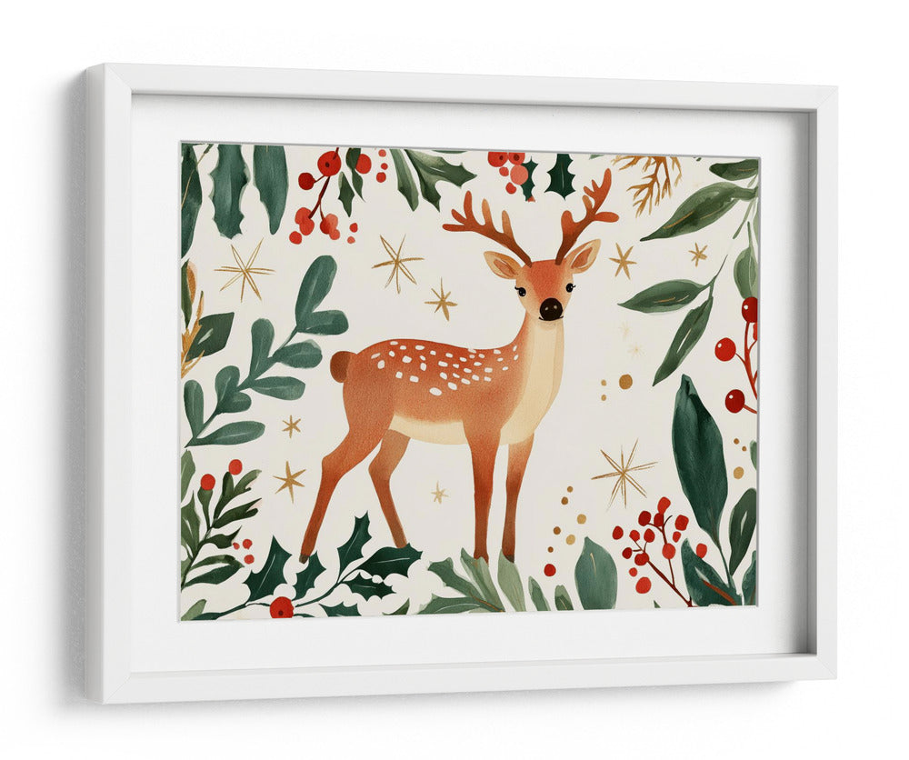 Sumérgete en la magia del bosque con "Ciervo del Bosque Encantado", una obra de arte digital que captura la esencia de la naturaleza y la fantasía. Este cuadro decorativo presenta un tierno ciervo en un entorno exuberante, rodeado de follaje verde profundo y vibrantes bayas rojas, salpicado de delicadas estrellas doradas que evocan un ambiente de cuento de hadas. La paleta de colores, dominada por tonos tierra cálidos, verdes naturales y toques festivos de rojo y dorado, crea una atmósfera acogedora y serena, ideal para cualquier rincón del hogar que busque un toque de calidez y encanto. El estilo de ilustración, con acuarelas suaves y detalles encantadores, transmite una sensación de paz y asombro. Perfecto para añadir un punto focal único a tu sala de estar, dormitorio o incluso una guardería, este cuadro decorativo es una invitación a soñar despierto y a conectar con la belleza salvaje. Su composición equilibrada y el tierno sujeto lo convierten en una pieza versátil que complementará estilos de decoración rústica, moderna o escandinava, infundiendo serenidad y un toque de la magia invernal a tus espacios.