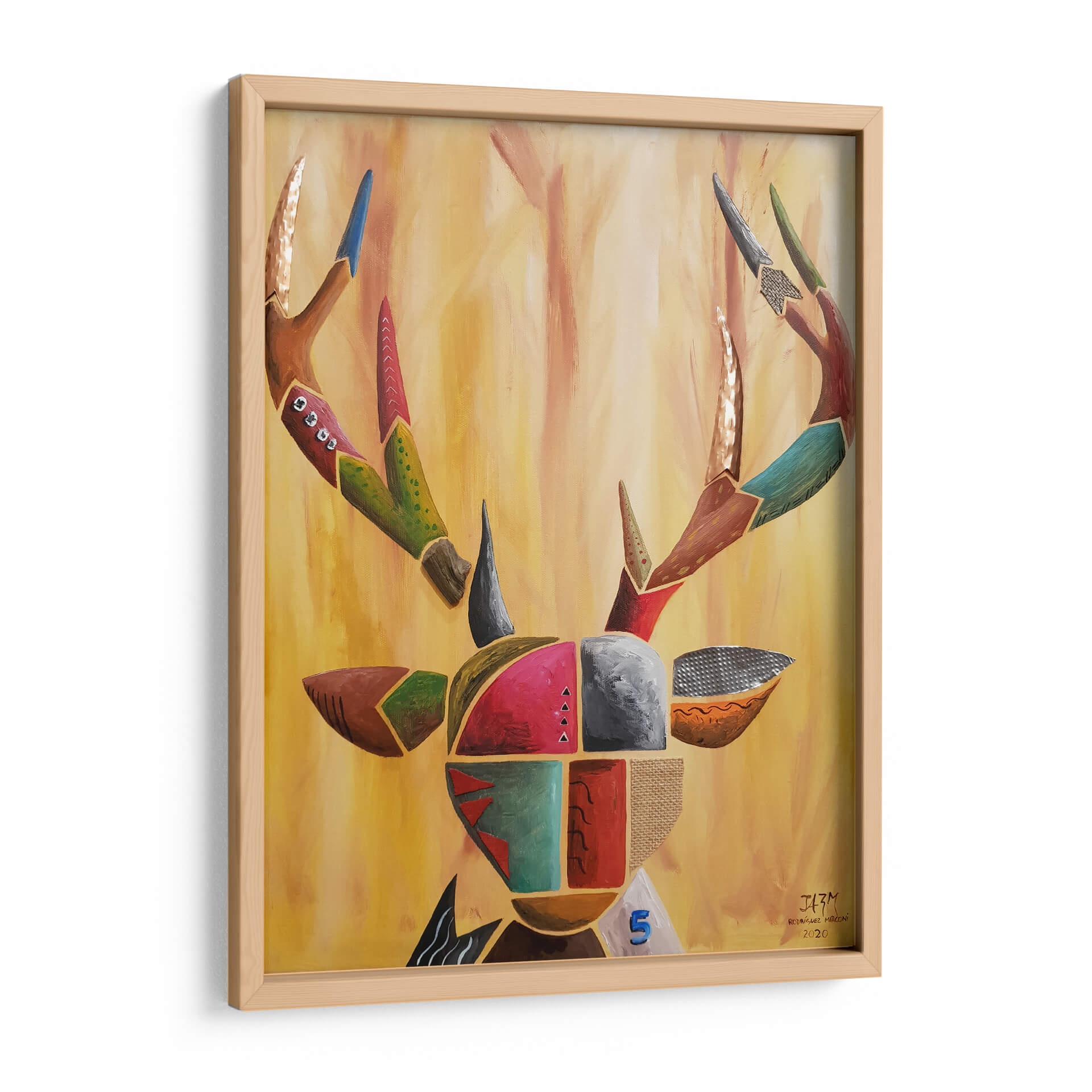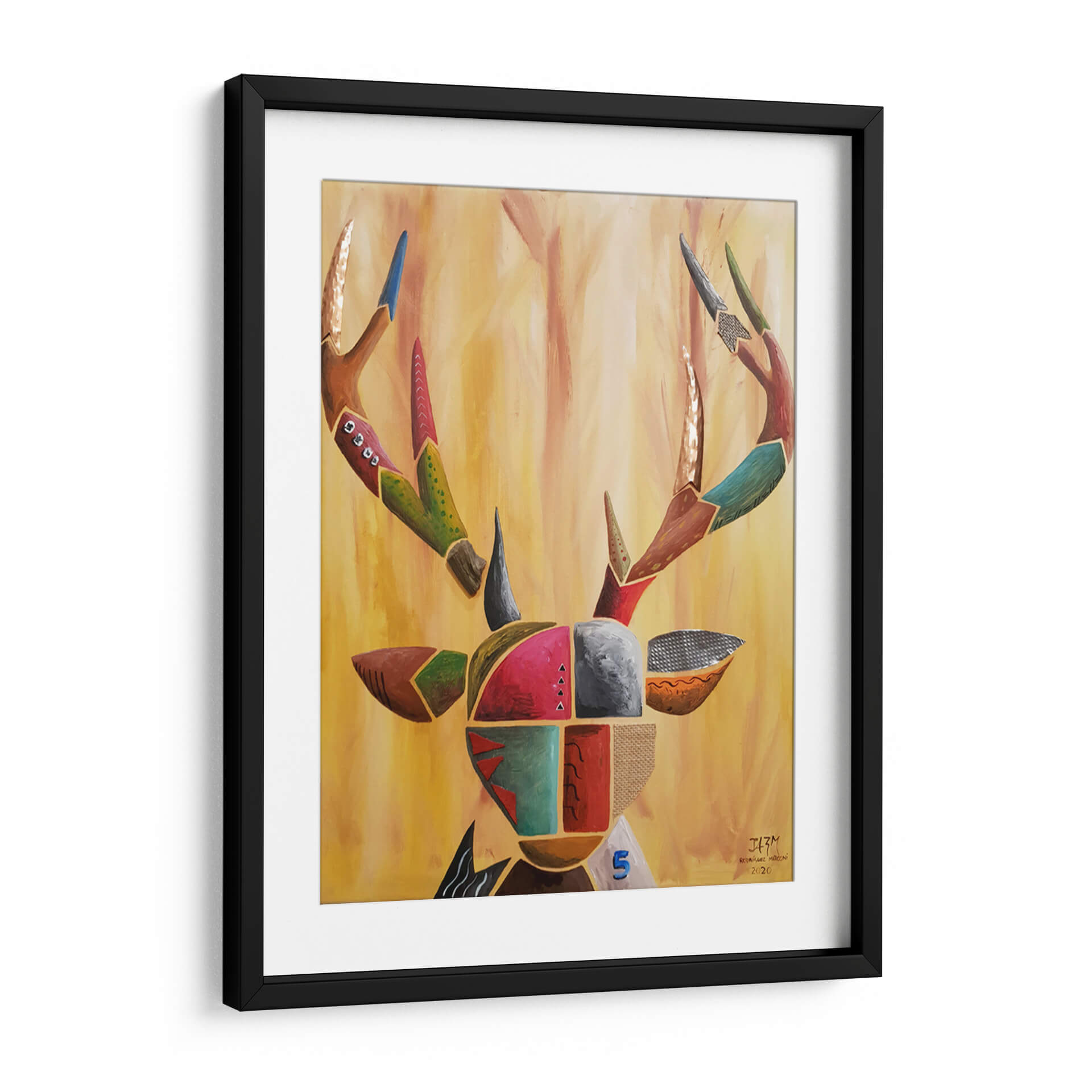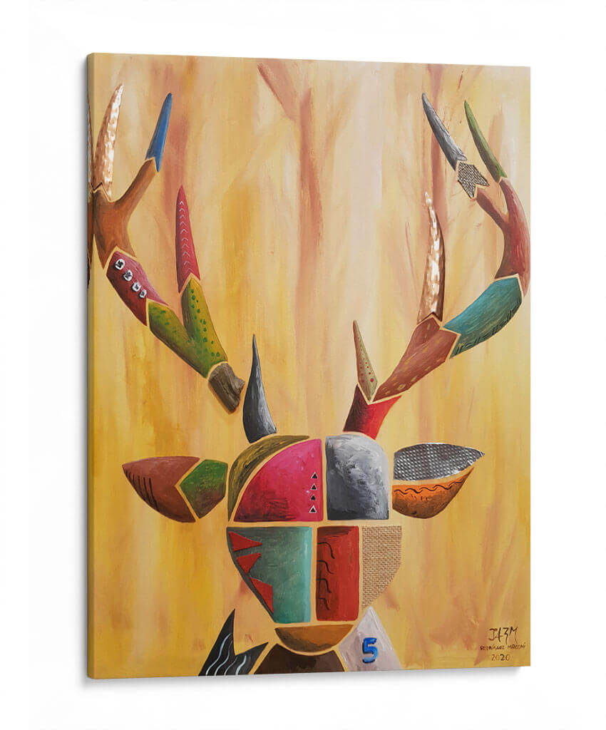 Descubre la majestuosidad y el encanto de "Ciervo frente", una obra de arte contemporáneo de Rodríguez Marconi. Este cautivador cuadro decorativo presenta una interpretación audaz y geométrica de un ciervo, donde las formas abstractas se entrelazan para crear una figura impactante. La paleta de colores, dominada por vibrantes tonos tierra y acentos de rojo, verde, azul y gris, evoca una sensación de calidez rústica con un toque de modernidad. La composición, centrada en la figura del ciervo con su imponente cornamenta, atrae la mirada y genera un punto focal dinámico para cualquier espacio. La textura visual, lograda a través de la fragmentación y la superposición de elementos, añade profundidad y un interés táctil a la pieza. Ideal para quienes buscan añadir un toque de originalidad y sofisticación a su hogar u oficina, este cuadro decorativo es perfecto para salas de estar modernas, comedores acogedores o estudios creativos. Su estilo único lo convierte en una pieza de conversación, capaz de inspirar admiración y reflejar un gusto por el arte contemporáneo y atrevido. Transforma tus paredes con esta representación artística que fusiona la naturaleza con la vanguardia.