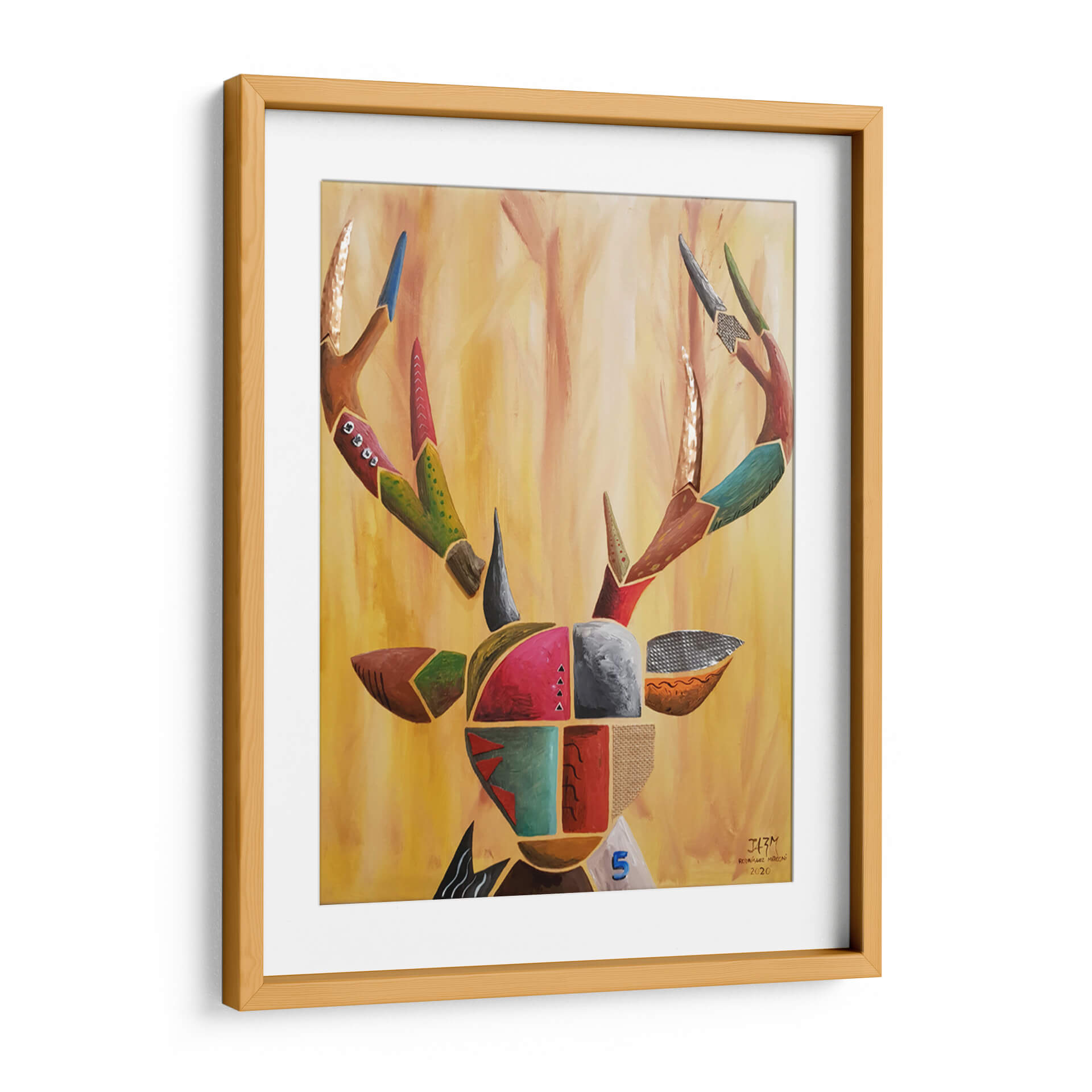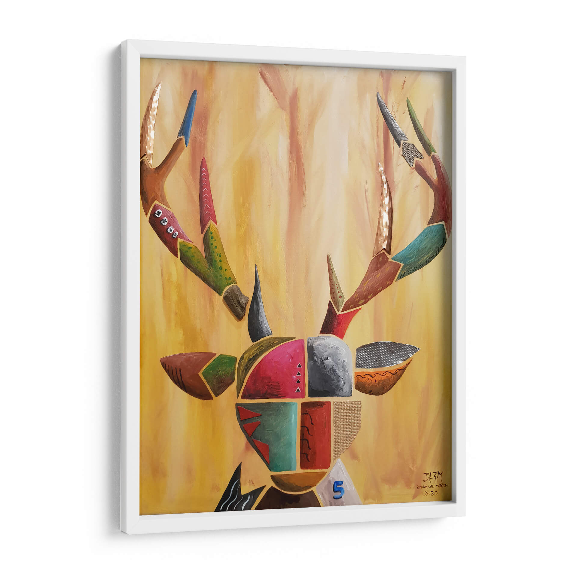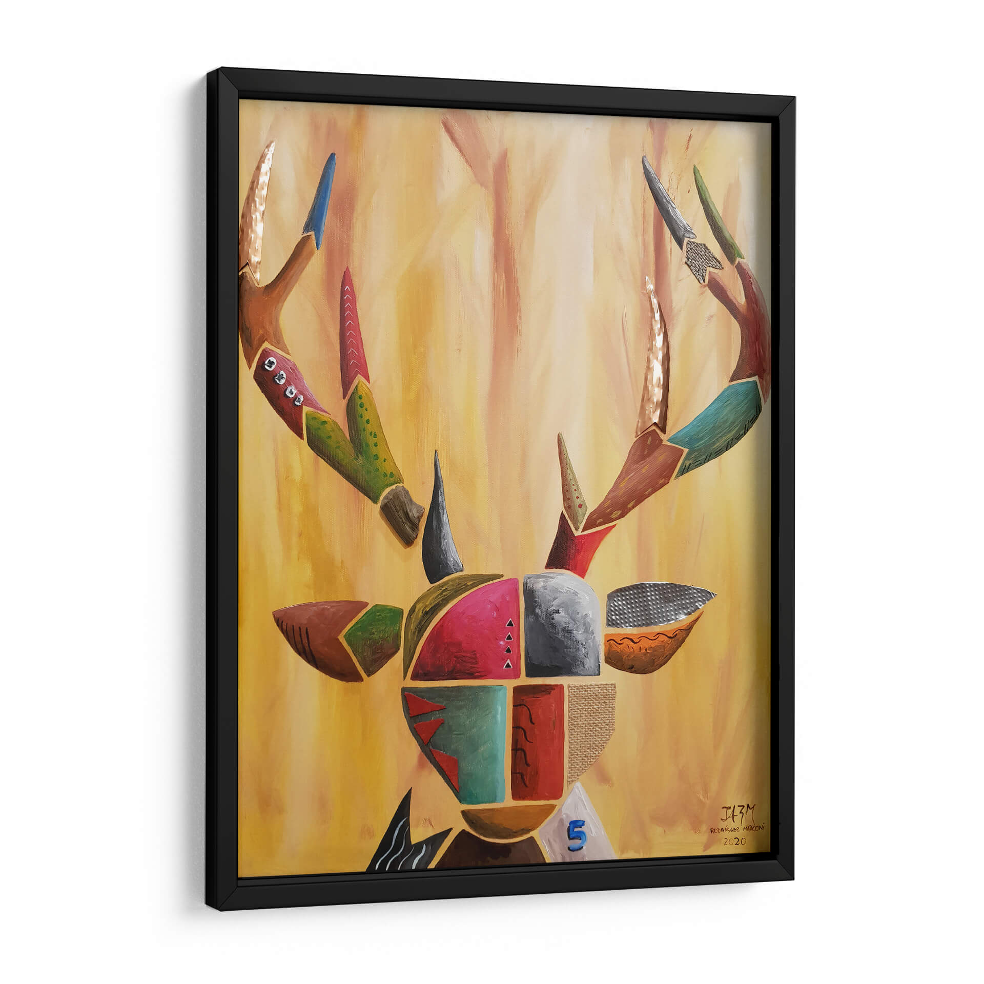 Descubre la majestuosidad y el encanto de "Ciervo frente", una obra de arte contemporáneo de Rodríguez Marconi. Este cautivador cuadro decorativo presenta una interpretación audaz y geométrica de un ciervo, donde las formas abstractas se entrelazan para crear una figura impactante. La paleta de colores, dominada por vibrantes tonos tierra y acentos de rojo, verde, azul y gris, evoca una sensación de calidez rústica con un toque de modernidad. La composición, centrada en la figura del ciervo con su imponente cornamenta, atrae la mirada y genera un punto focal dinámico para cualquier espacio. La textura visual, lograda a través de la fragmentación y la superposición de elementos, añade profundidad y un interés táctil a la pieza. Ideal para quienes buscan añadir un toque de originalidad y sofisticación a su hogar u oficina, este cuadro decorativo es perfecto para salas de estar modernas, comedores acogedores o estudios creativos. Su estilo único lo convierte en una pieza de conversación, capaz de inspirar admiración y reflejar un gusto por el arte contemporáneo y atrevido. Transforma tus paredes con esta representación artística que fusiona la naturaleza con la vanguardia.