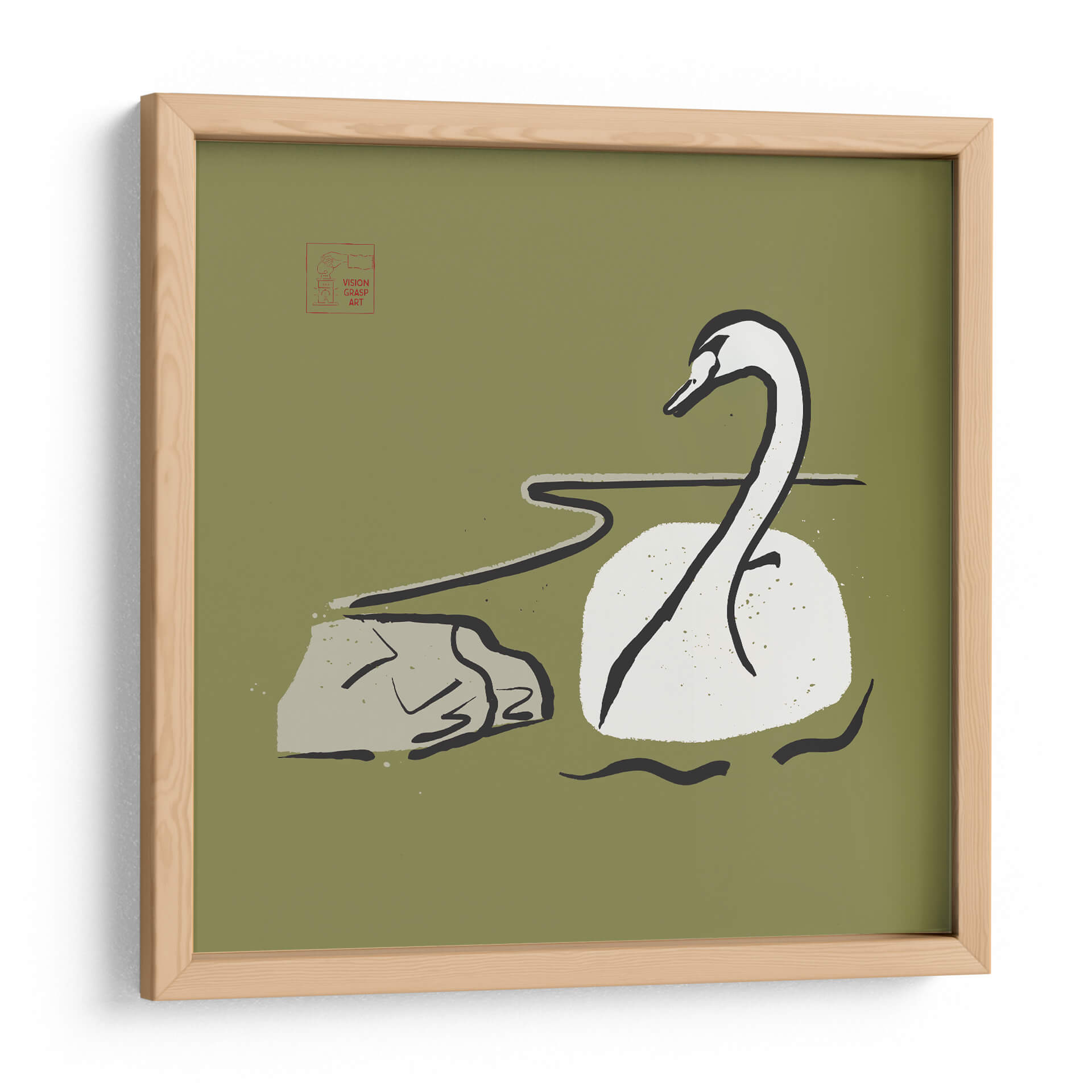 Sumérgete en la serenidad y la elegancia con este cautivador cuadro decorativo minimalista que presenta un cisne estilizado. La obra, titulada 'Cisne minimalista' del artista Vision Grasp Art, evoca una sensación de paz y contemplación a través de su paleta de colores suaves y su composición depurada. El fondo de tono verde oliva crea un ambiente terroso y tranquilo, mientras que las líneas negras audaces y las formas blancas nítidas dan vida a la figura del cisne y a elementos naturales como rocas y agua. Este diseño de arte mural es perfecto para aquellos que buscan añadir un toque de sofisticación sutil y calma a sus espacios. Ideal para dormitorios, salas de estar o estudios, este cuadro decorativo se integra armónicamente en decoraciones modernas, escandinavas o zen. Transforma tu hogar u oficina en un oasis de tranquilidad con esta pieza única que invita a la reflexión y la apreciación de la belleza simple. El arte minimalista es una elección atemporal para quienes valoran la estética limpia y el impacto emocional.