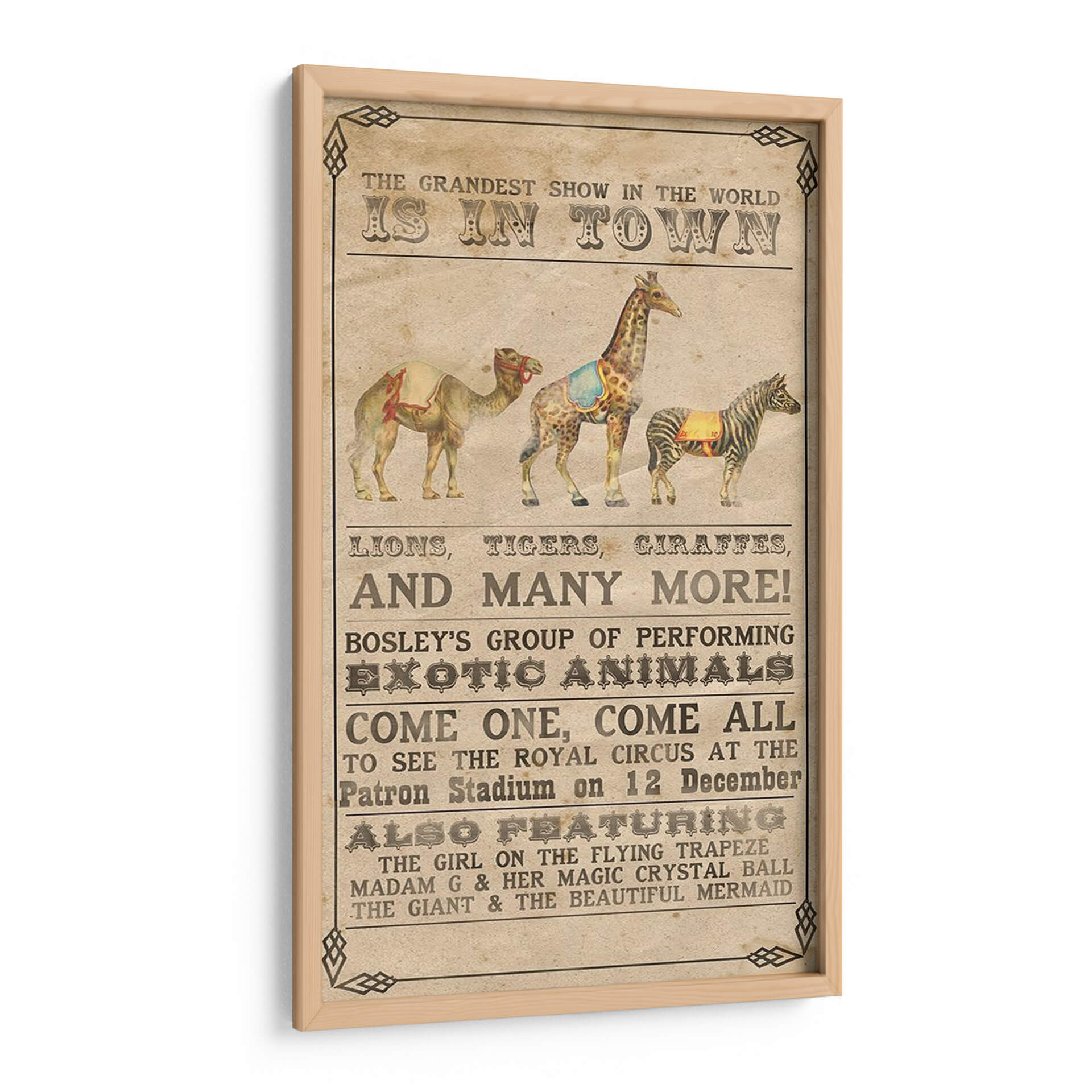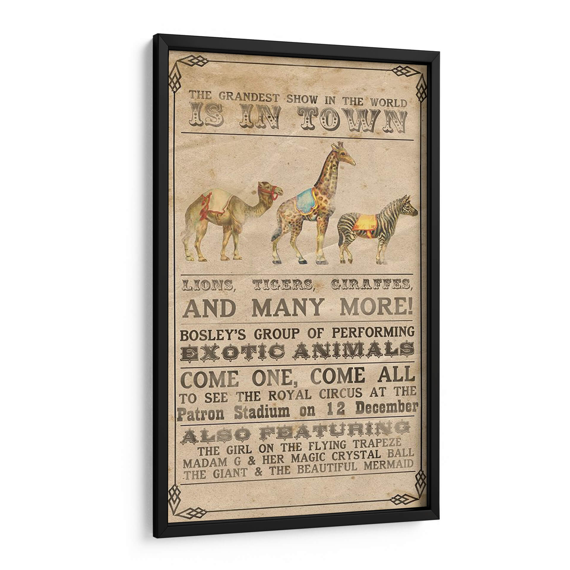 Sumérgete en la nostalgia y la emoción del circo con este cautivador cuadro decorativo 'Colección De Circo Vintage B' de Grace Popp. Esta obra de arte captura la esencia de los espectáculos itinerantes de antaño, presentando una vibrante colección de animales exóticos como un camello, una jirafa y una cebra, todos adornados con coloridos arreos. La estética de póster vintage, con su tipografía clásica y un fondo que evoca pergamino envejecido, transporta al espectador a una época de maravillas y entretenimiento. Los tonos tierra cálidos y los sutiles toques de color en los adornos de los animales crean una atmósfera acogedora y nostálgica. Este cuadro decorativo es ideal para añadir un toque de carácter y un aire retro a cualquier espacio, desde una sala de estar moderna hasta un estudio o una habitación infantil temática. Su diseño detallado y su temática atemporal lo convierten en una pieza de conversación perfecta para aquellos que aprecian el arte con historia y un encanto peculiar. Añade un toque de magia circense a tu hogar u oficina con esta pieza única.
