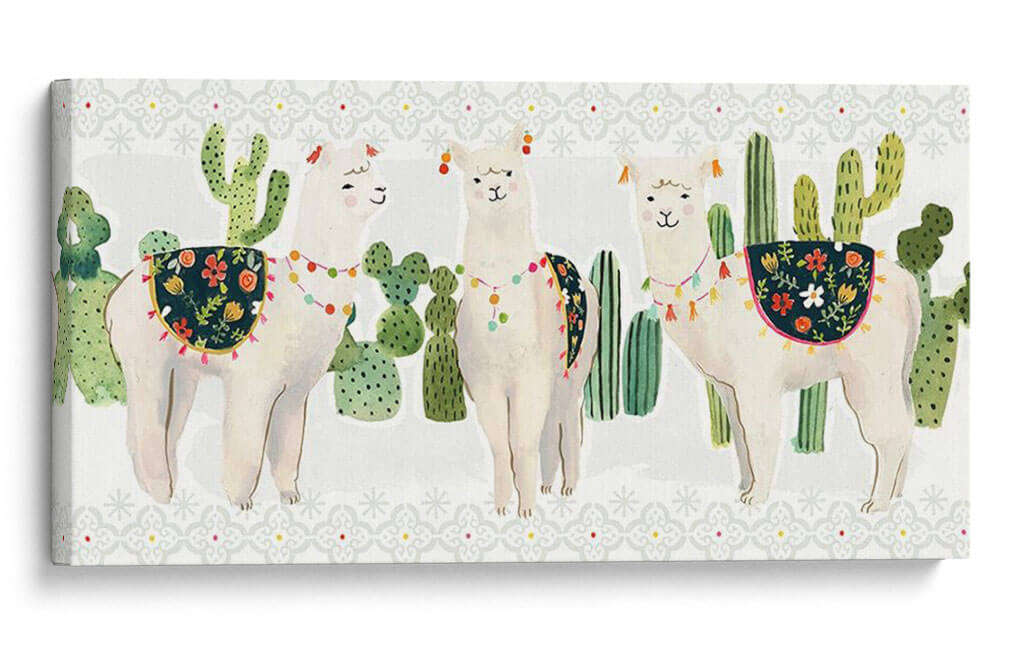 Celebra la alegría y el encanto con "Colección Dulce Alpaca D", una obra de arte vibrante que captura la esencia juguetona de las alpacas en un entorno desértico. Victoria Borges nos presenta una composición llena de vida, donde tres adorables alpacas blancas, adornadas con coloridas guirnaldas y mantas bordadas con flores, se erigen entre cactus de diversas formas y texturas. La paleta de colores, dominada por el blanco cremoso de las alpacas, el verde fresco de los cactus y toques de colores brillantes en los adornos florales y las guirnaldas, crea una atmósfera alegre y acogedora. El estilo, que combina la ternura de la ilustración con un toque de acuarela, evoca sentimientos de paz, diversión y una conexión con la naturaleza. Este cuadro decorativo es perfecto para añadir un toque de personalidad y calidez a cualquier habitación, ya sea una sala de estar moderna, un dormitorio infantil o una oficina que necesite un estallido de color y alegría. Su diseño único lo convierte en un punto focal encantador, ideal para quienes buscan arte que transmita positividad y un espíritu bohemio-chic. "Colección Dulce Alpaca D" es más que una simple decoración; es una invitación a sonreír y a disfrutar de la belleza en los detalles.