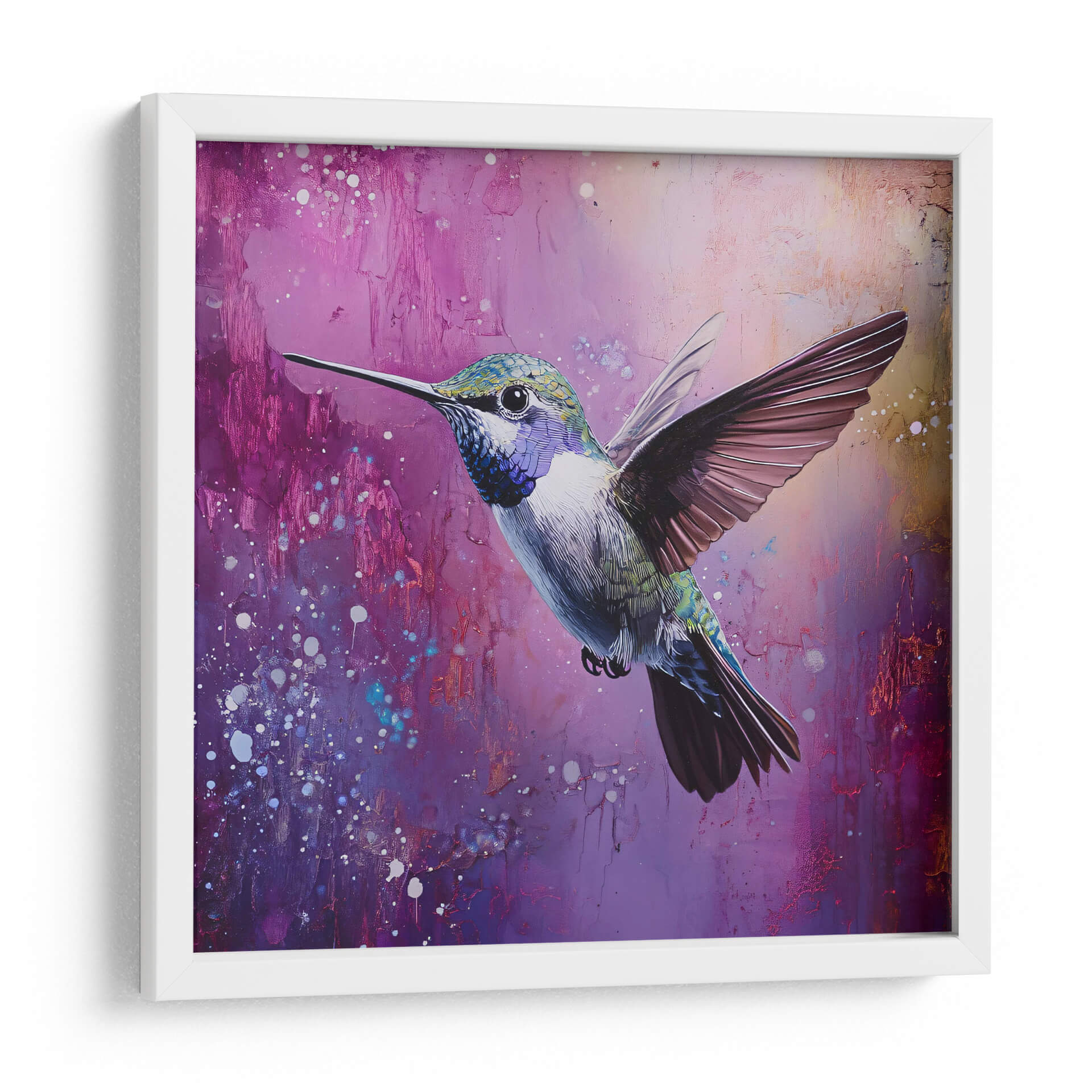 Captura la delicadeza y la vibrante energía de la naturaleza con este cautivador cuadro decorativo de un colibrí en pleno vuelo. La obra maestra, titulada 'Colibrí en morado' y creada por el talentoso artista Dav Madrid, presenta un colibrí detallado con plumaje iridiscente que capta la luz, posado contra un fondo abstracto de intensos tonos púrpuras y rosados. La técnica pictórica evoca una sensación de movimiento y fluidez, con salpicaduras de color que añaden dinamismo y profundidad a la composición. Los detalles en azul eléctrico y verde esmeralda del colibrí contrastan maravillosamente con el telón de fondo, creando un punto focal cautivador. Este cuadro decorativo es perfecto para añadir un toque de color y sofisticación a cualquier espacio, ya sea una sala de estar moderna, un dormitorio sereno o una oficina inspiradora. Su representación artística del colibrí, símbolo de alegría y ligereza, infunde una atmósfera de vitalidad y encanto en el ambiente. Ideal para amantes de la naturaleza, el arte contemporáneo y la decoración con personalidad.