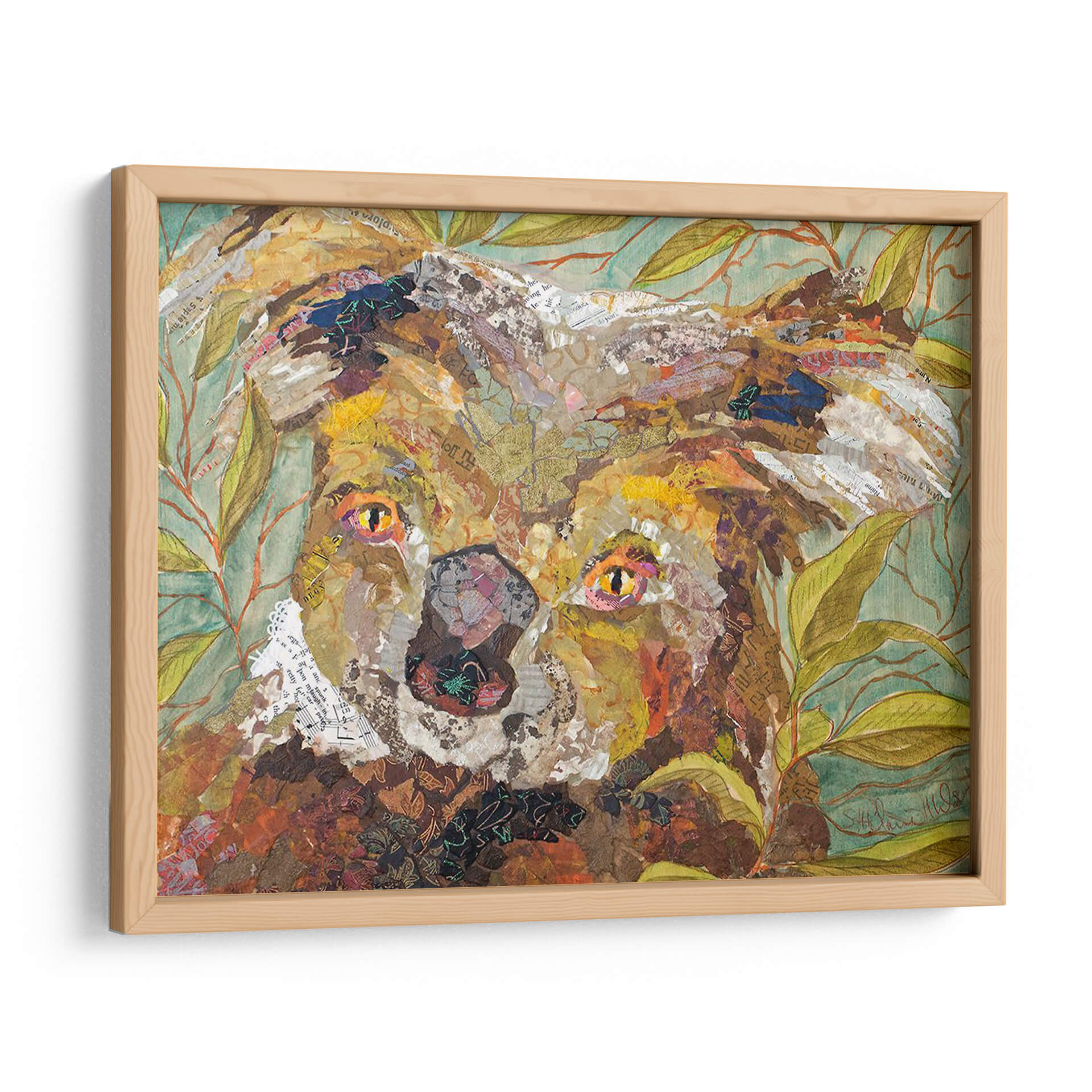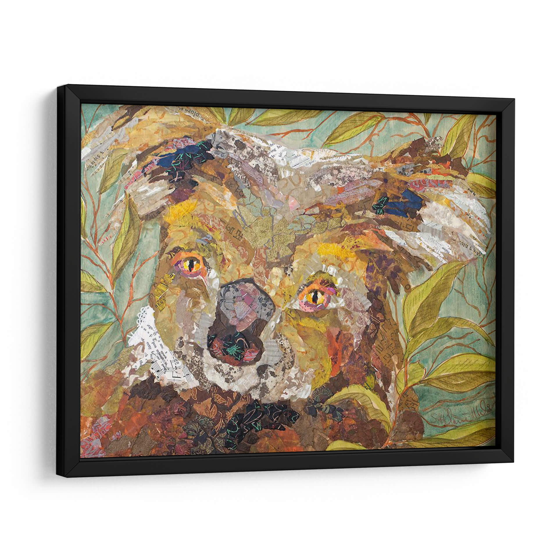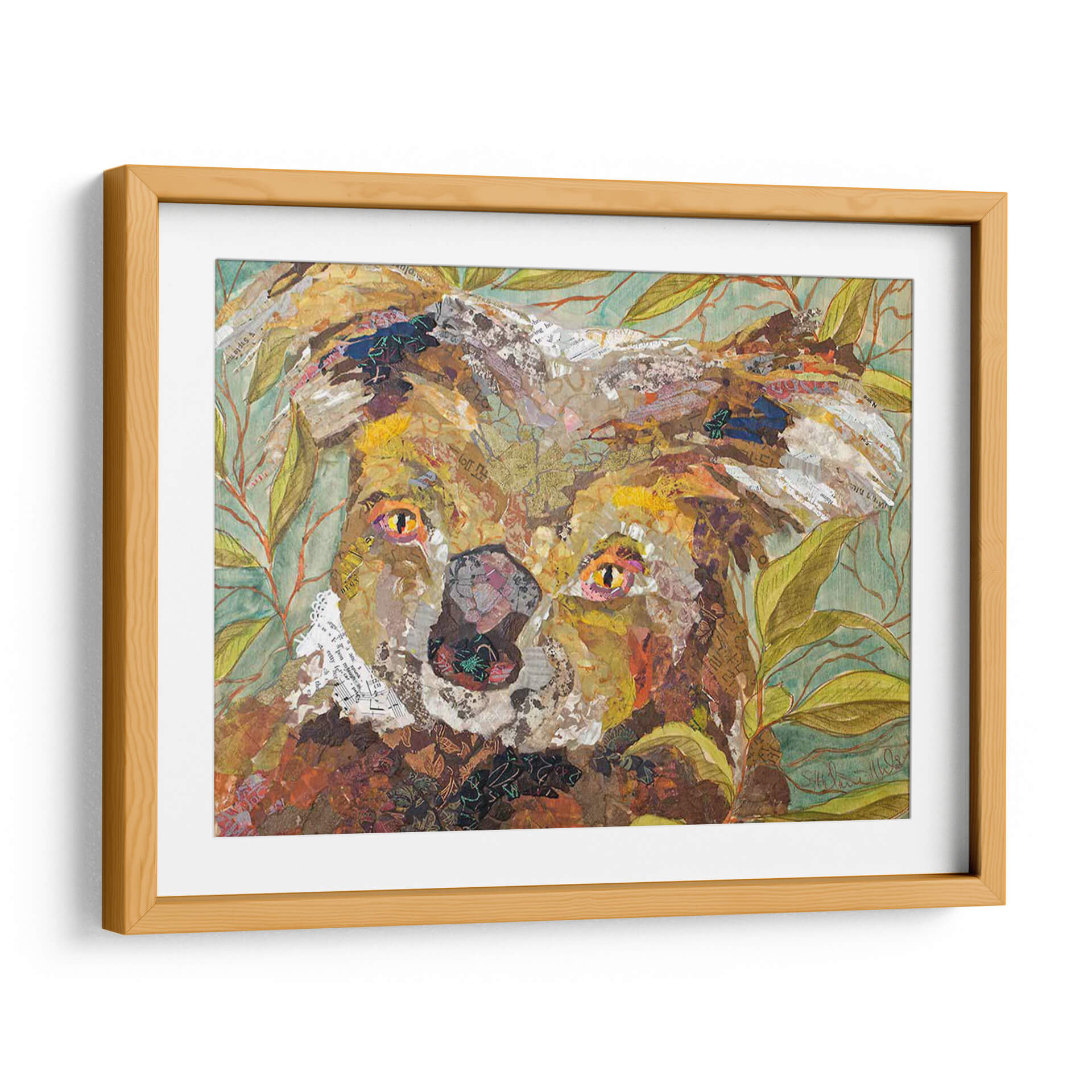Este cautivador cuadro decorativo 'Collage Koala II' de Elizabeth St. Hilaire te invita a adentrarte en un mundo de texturas y colores vibrantes. La obra presenta un primer plano de un koala, construido intrincadamente a partir de fragmentos de papel que crean una profundidad visual fascinante. Los ojos penetrantes del koala, con sus tonos anaranjados y amarillos, irradian una mirada curiosa y llena de vida, capturando la atención del espectador al instante. Alrededor de la figura principal, hojas estilizadas en tonos verdes y ocres envuelven al koala, sugiriendo un entorno natural y orgánico. La paleta de colores, rica en marrones, dorados, verdes y toques de azul y blanco, evoca una sensación de calidez y conexión con la naturaleza. El estilo de collage le confiere a la pieza una cualidad artesanal única, aportando un carácter contemporáneo y distintivo. Este cuadro es ideal para añadir un punto focal de interés a salones modernos, estudios o cualquier espacio que busque una conexión con la fauna y el arte original. Su composición detallada y su atmósfera acogedora lo convierten en una adición memorable a cualquier colección de arte decorativo.