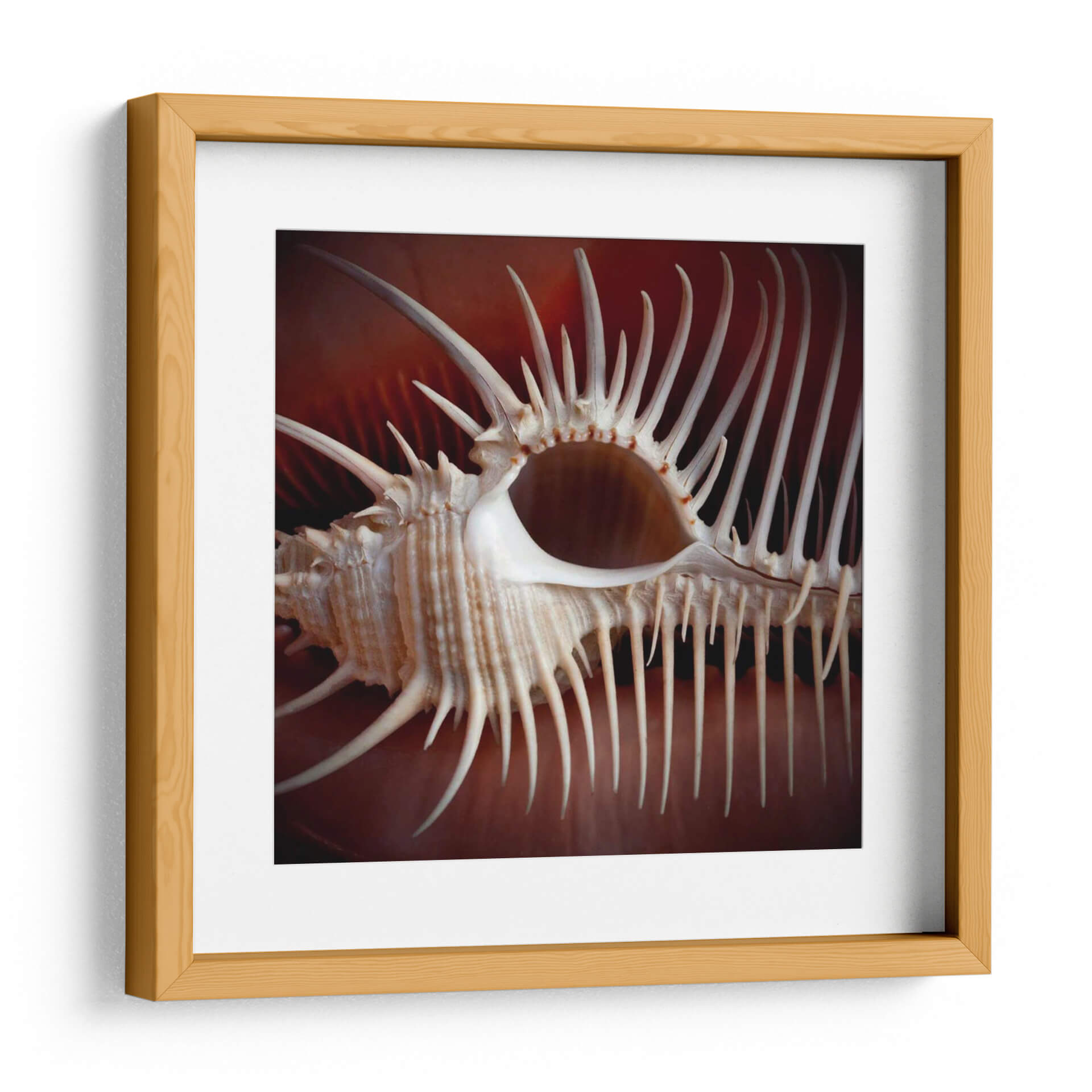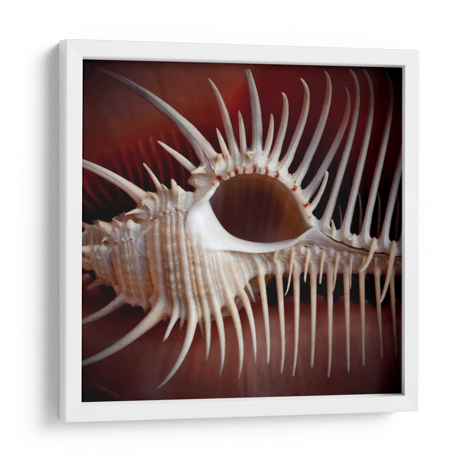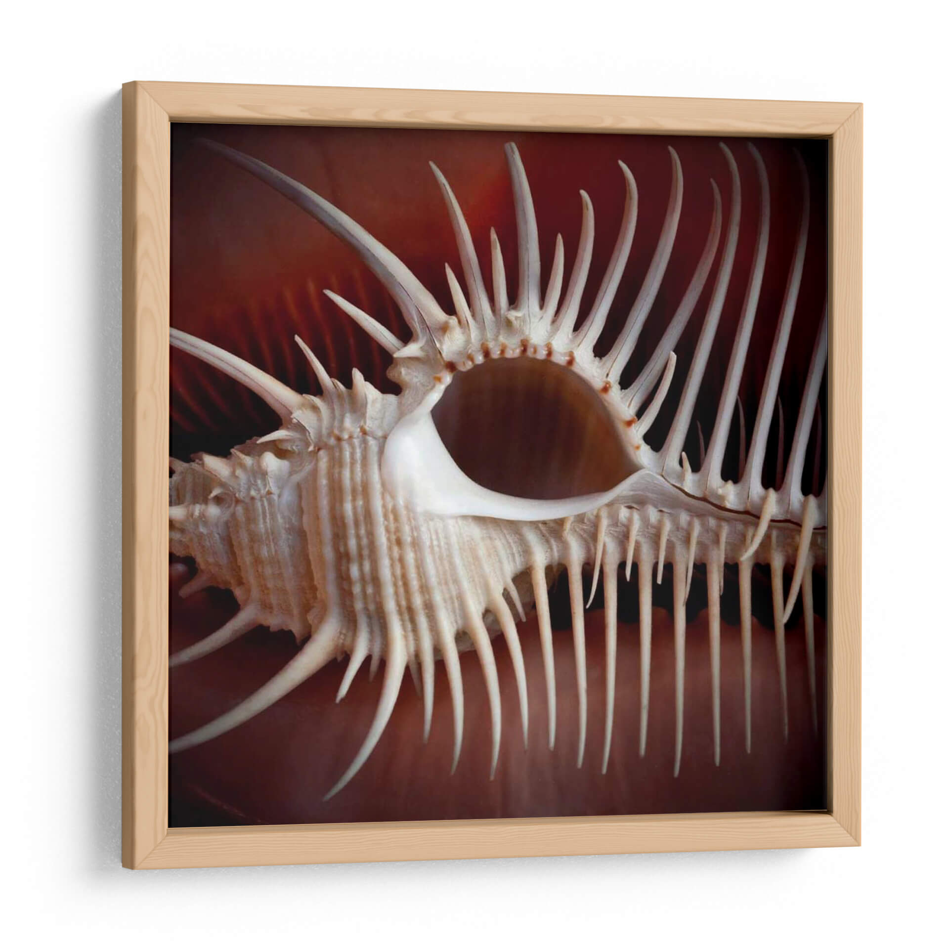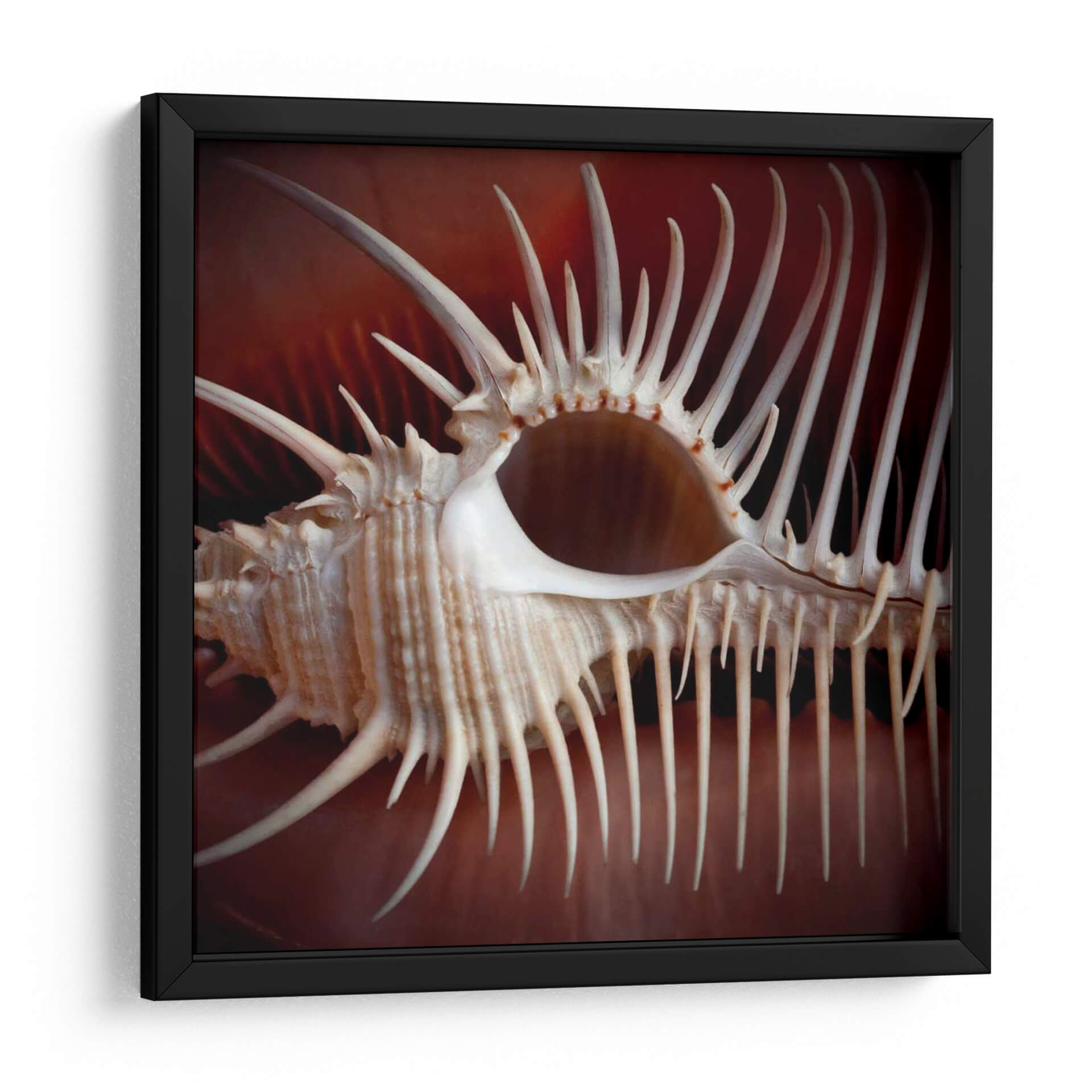 Sumérgete en la intrincada belleza del mar con "Conchas Macro VIII", una obra maestra del arte de pared que captura la esencia de la naturaleza en su máxima expresión. Esta pieza, una macrofotografía de una concha marina, revela detalles asombrosos y texturas complejas que te transportarán a las profundidades del océano. Los tonos cálidos y terrosos del fondo crean un contraste cautivador con las delicadas espinas y la forma orgánica de la concha, generando una atmósfera de serenidad y fascinación. El estilo fotográfico, con un enfoque cercano y un tratamiento de la luz excepcional, resalta la singularidad de cada elemento, creando un efecto casi escultórico. Es la pieza perfecta para añadir un toque de elegancia natural a tu sala de estar, dormitorio o cualquier espacio que busque una conexión con el mundo marino. Su composición detallada y la paleta de colores terrosos la convierten en un elemento decorativo versátil, capaz de complementar desde ambientes rústicos hasta decoraciones interiores contemporáneas. Deja que esta obra te inspire y te recuerde la asombrosa arquitectura que esconde el océano.