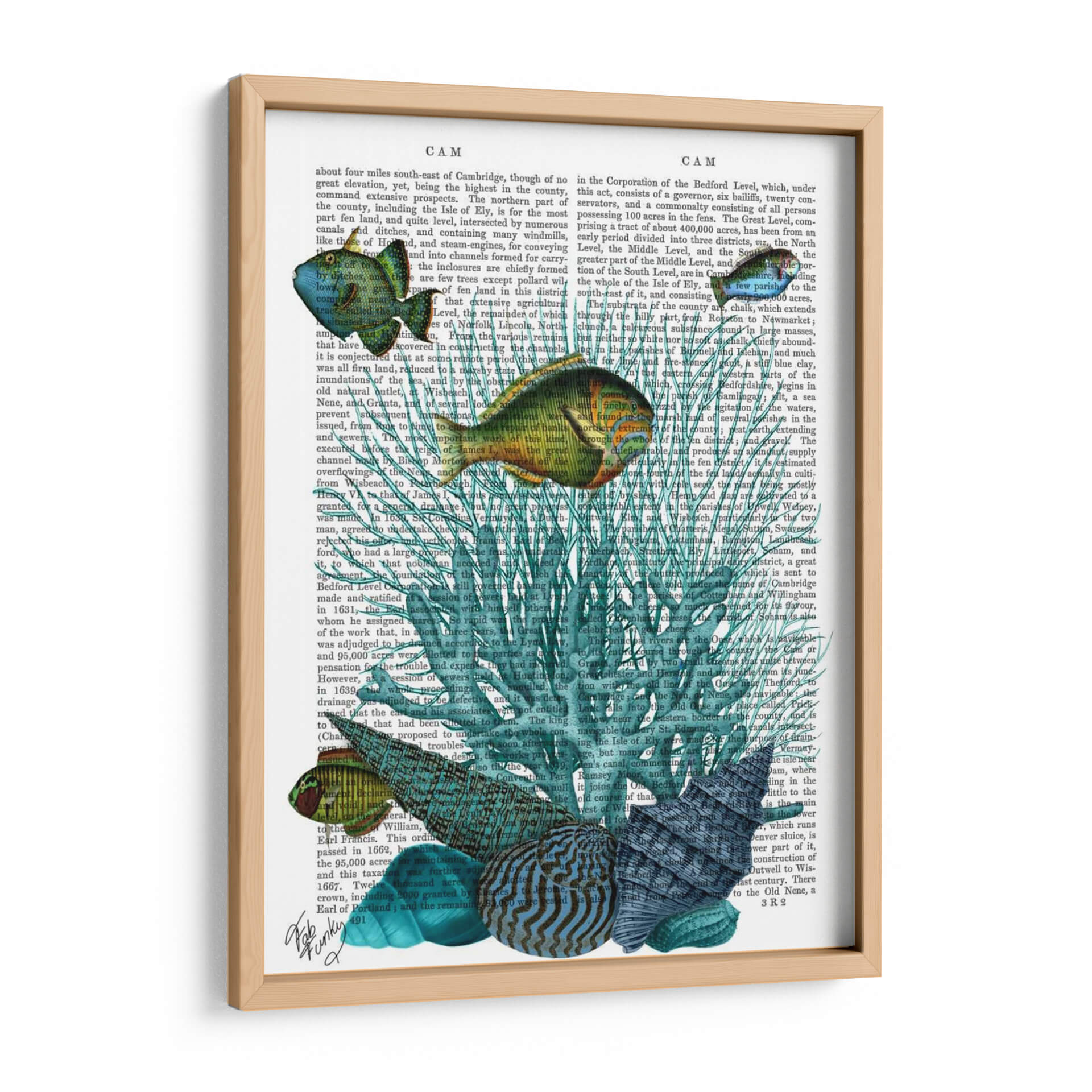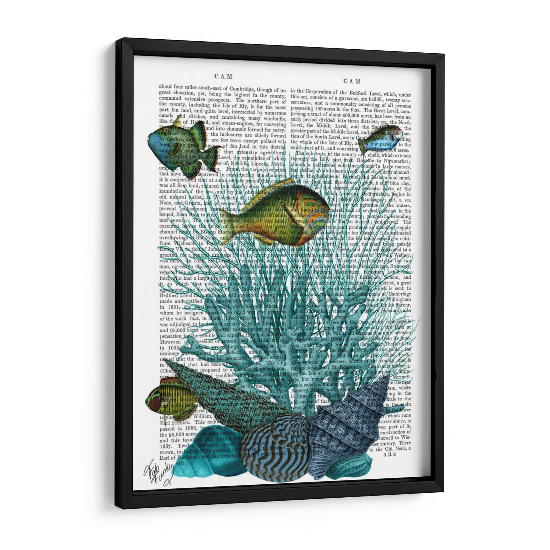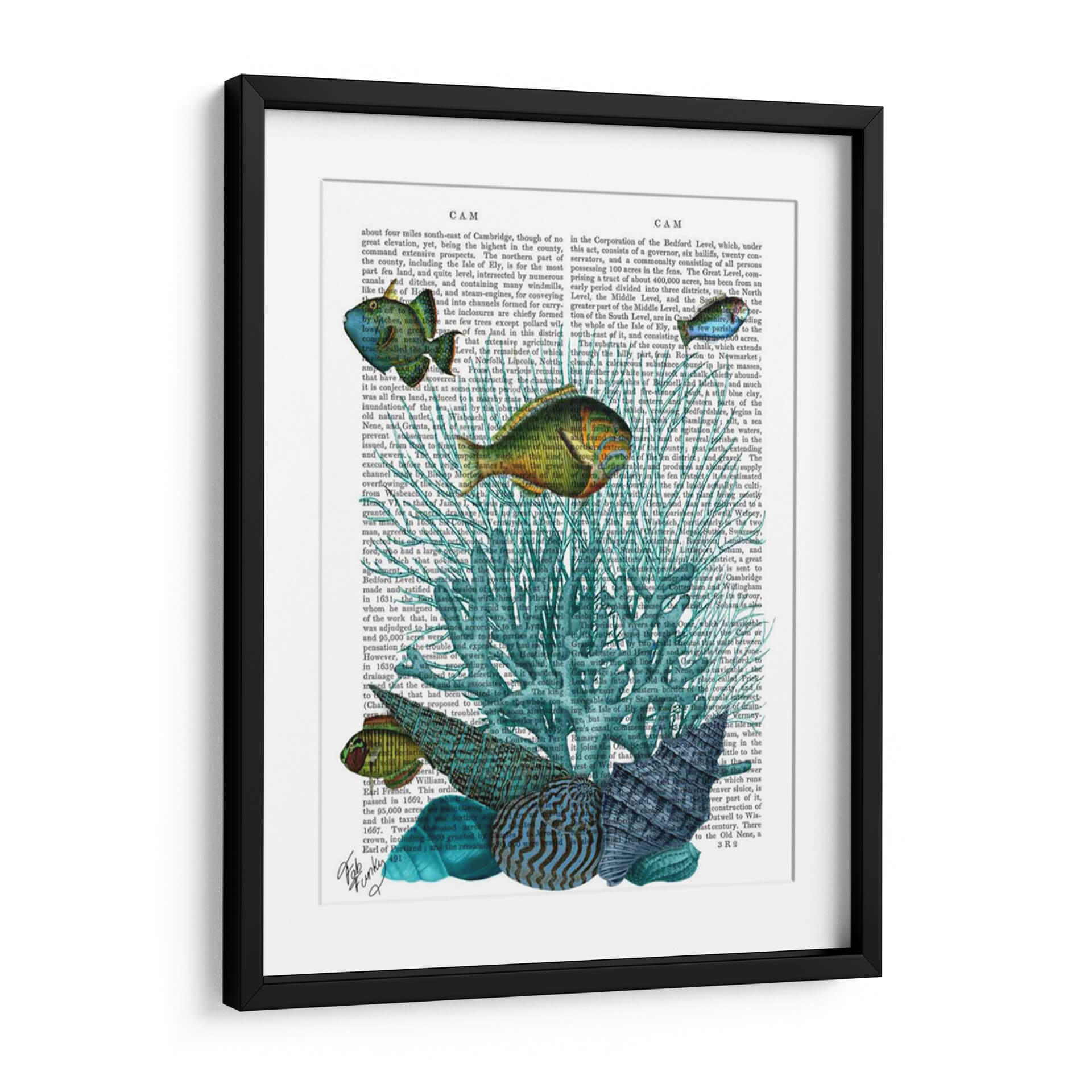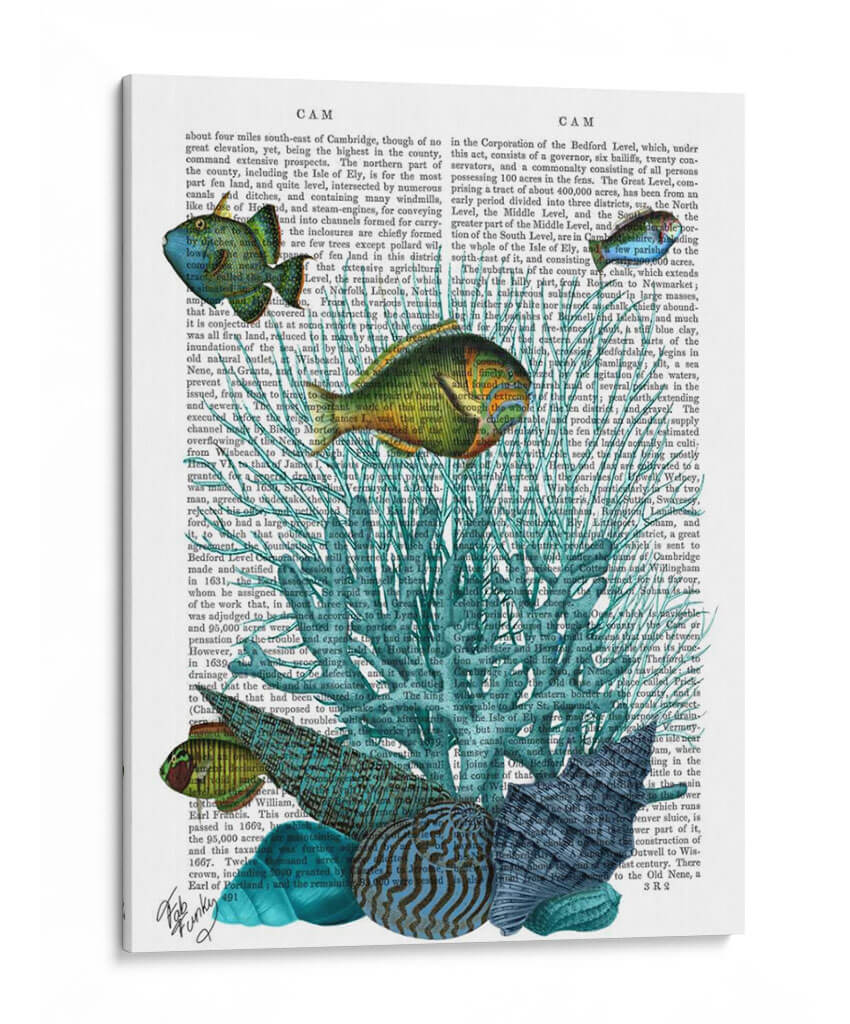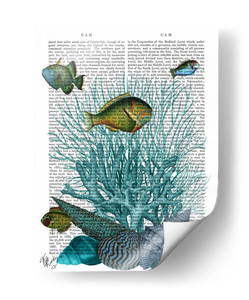 Sumérgete en las profundidades marinas con este cautivador cuadro decorativo, una obra maestra que combina la delicadeza de la vida acuática con el encanto del texto antiguo. La pieza presenta un vibrante despliegue de conchas y corales en tonos azules y verdosos, entrelazados con un fondo que simula páginas de un libro vintage. Los peces, representados con un realismo encantador y detalles intrincados, parecen nadar a través de la narrativa impresa, añadiendo un toque de movimiento y vida a la composición. Los colores predominantes, desde el turquesa profundo hasta el verde esmeralda y toques dorados en los peces, crean una atmósfera de serenidad y misterio, evocando la tranquilidad del océano. Este cuadro decorativo es ideal para quienes buscan añadir un elemento único y sofisticado a su hogar u oficina. Perfecto para salones, estudios o dormitorios, aportará una sensación de calma y una conexión con la naturaleza. Su estilo, que fusiona elementos de arte vintage y acuático, lo convierte en un punto focal distintivo y una pieza de conversación garantizada.