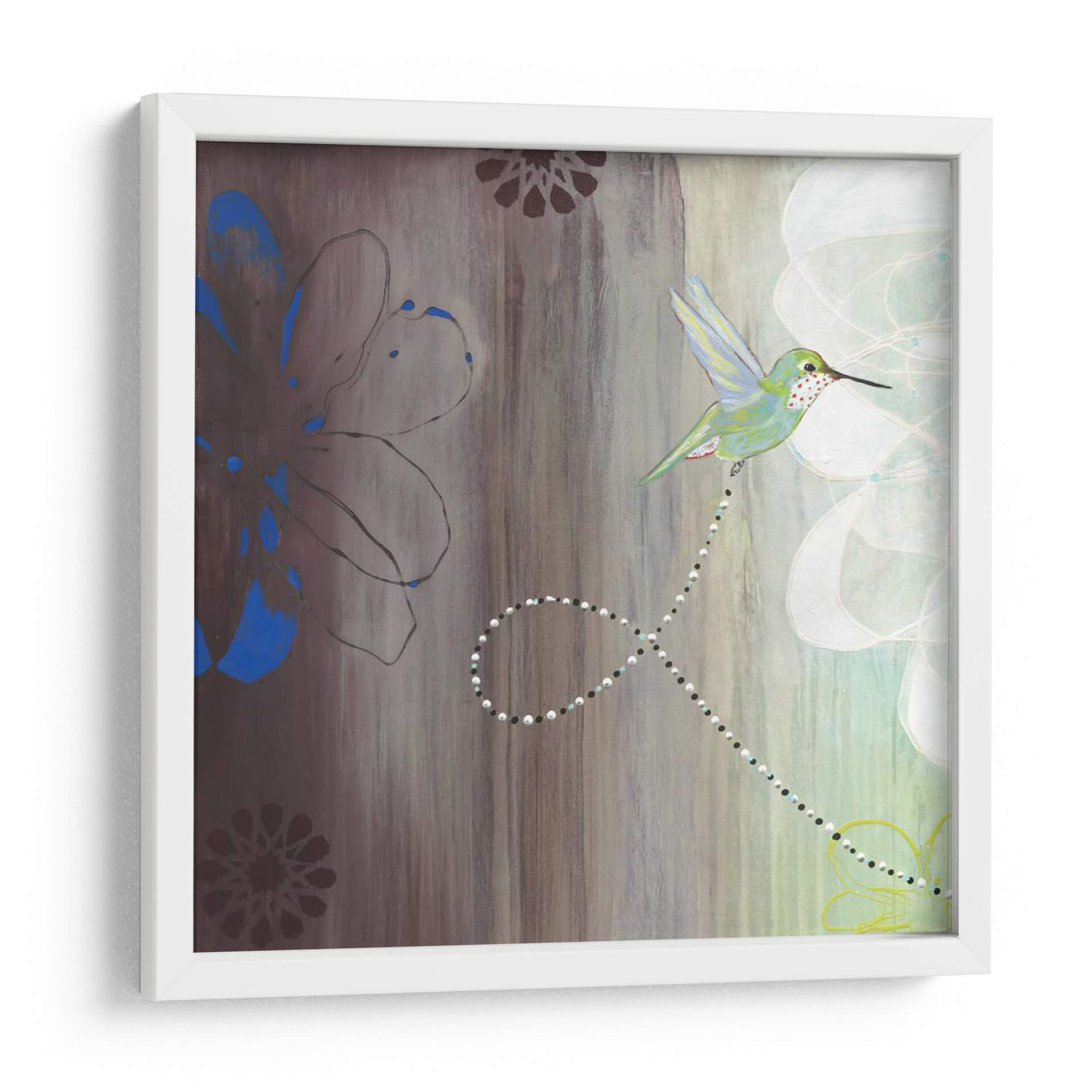 Sumérgete en la delicadeza y el movimiento con 'Conectado I', una obra de arte contemporáneo de Jodi Fuchs que captura la efímera belleza de la naturaleza. Este cuadro decorativo presenta un colibrí vibrante en tonos verdes y rojos, suspendido en el aire por un delicado hilo de perlas y puntos. El fondo, una composición abstracta de texturas en tonos tierra y grises, se complementa con sutiles flores estilizadas en azul y blanco, creando un contraste sutil pero cautivador. La obra evoca una sensación de ligereza, conexión y la magia de los pequeños detalles. El estilo artístico combina elementos figurativos con abstracción, resultando en una pieza única que atrae la mirada y fomenta la contemplación. "Conectado I" es ideal para añadir un toque de serenidad y sofisticación a cualquier espacio, desde una sala de estar moderna hasta un rincón tranquilo en tu oficina. Su paleta de colores versátil permite integrarla fácilmente en diversas decoraciones, aportando un aire de frescura y vitalidad. Descubre la armonía en este lienzo que celebra la conexión entre la vida y el arte.