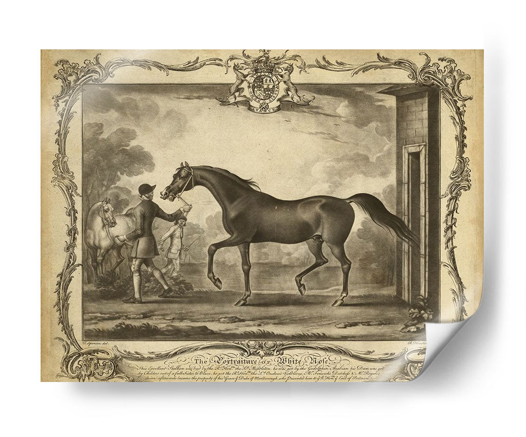 Sumérgete en la elegancia y la historia con este cautivador cuadro decorativo que presenta un retrato detallado de "Distinguidos Caballos Iv". La obra evoca una atmósfera de nobleza y tradición, capturando la majestuosidad de los equinos en una escena clásica. La paleta de colores sepia y tonos tierra aporta una sensación de calidez y sofisticación atemporal, ideal para complementar espacios que buscan un toque de distinción y carácter. La composición, enmarcada por intrincados detalles ornamentales, dirige la mirada hacia la figura central del caballo, resaltando su poder y gracia. Este cuadro es perfecto para añadir un punto focal de interés en salones, estudios o cualquier estancia donde se desee infundir un aire de refinamiento y apreciación por la estética ecuestre. Su estilo histórico lo convierte en una pieza versátil, capaz de integrarse tanto en decoraciones clásicas como en interiores contemporáneos que buscan un contraste único. Añade un legado visual a tu hogar con esta impresionante representación artística.