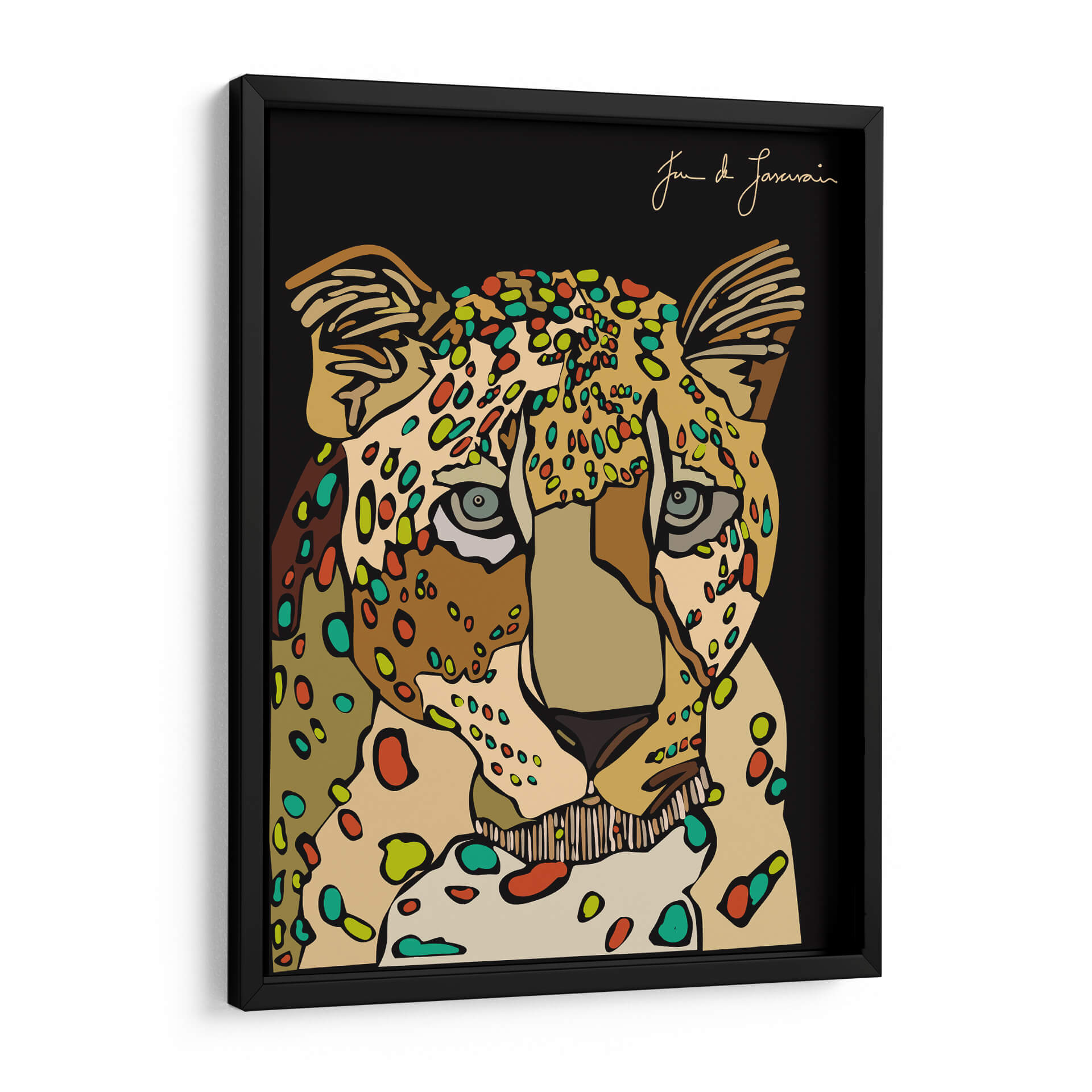 Embárcate en un viaje visual con "El Puma" de Juan de Lascurain, una obra de arte contemporáneo que captura la majestuosidad y el espíritu salvaje de este felino en un estilo único y vibrante. Este cuadro decorativo presenta un primer plano detallado del puma, con una paleta de colores rica y audaz que rompe con la tradición, salpicando su pelaje con toques de verde esmeralda, rojo carmesí y ocre dorado sobre un fondo negro profundo. La composición, centrada en la mirada penetrante del animal, irradia una mezcla de fuerza, misterio y elegancia natural. El estilo artístico, que combina líneas definidas con una explosión de formas circulares y orgánicas, confiere a la pieza una energía moderna y distintiva, evocando la esencia de la vida salvaje con un toque artístico vanguardista. "El Puma" es una pieza versátil que puede transformar cualquier espacio, aportando un toque de sofisticación salvaje a una sala de estar moderna, un toque de inspiración a una oficina o una declaración audaz en un dormitorio. Ideal para amantes del arte que buscan piezas con carácter y una narrativa visual potente, esta obra invita a la contemplación y añade profundidad a la decoración de interiores.