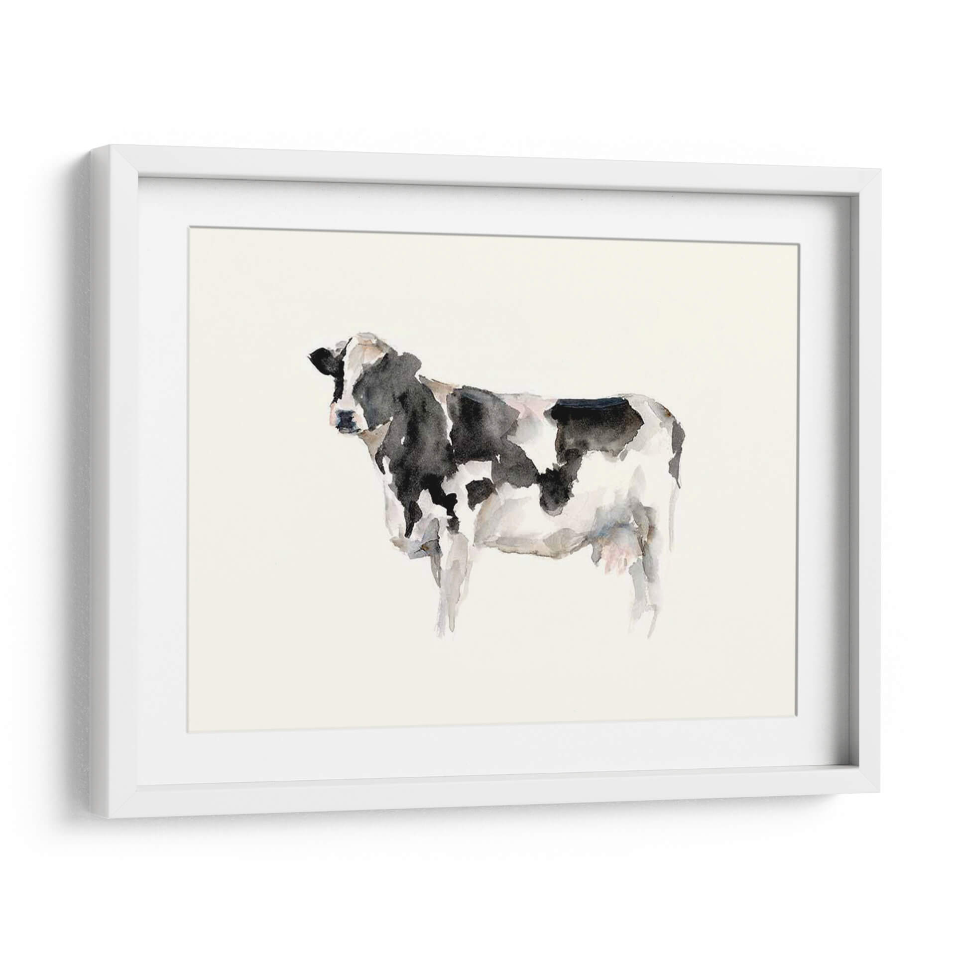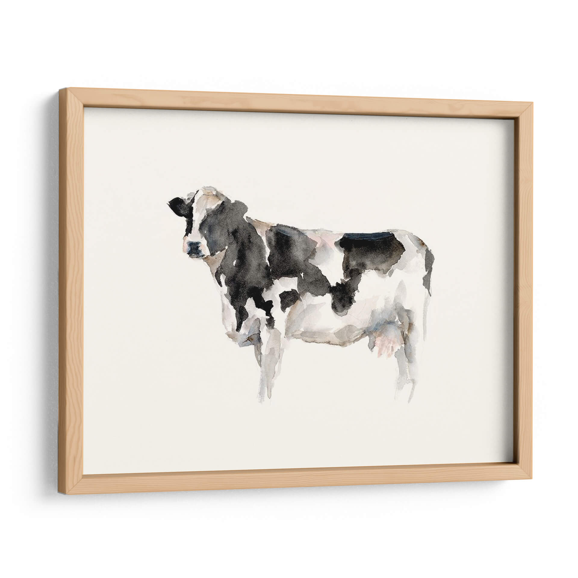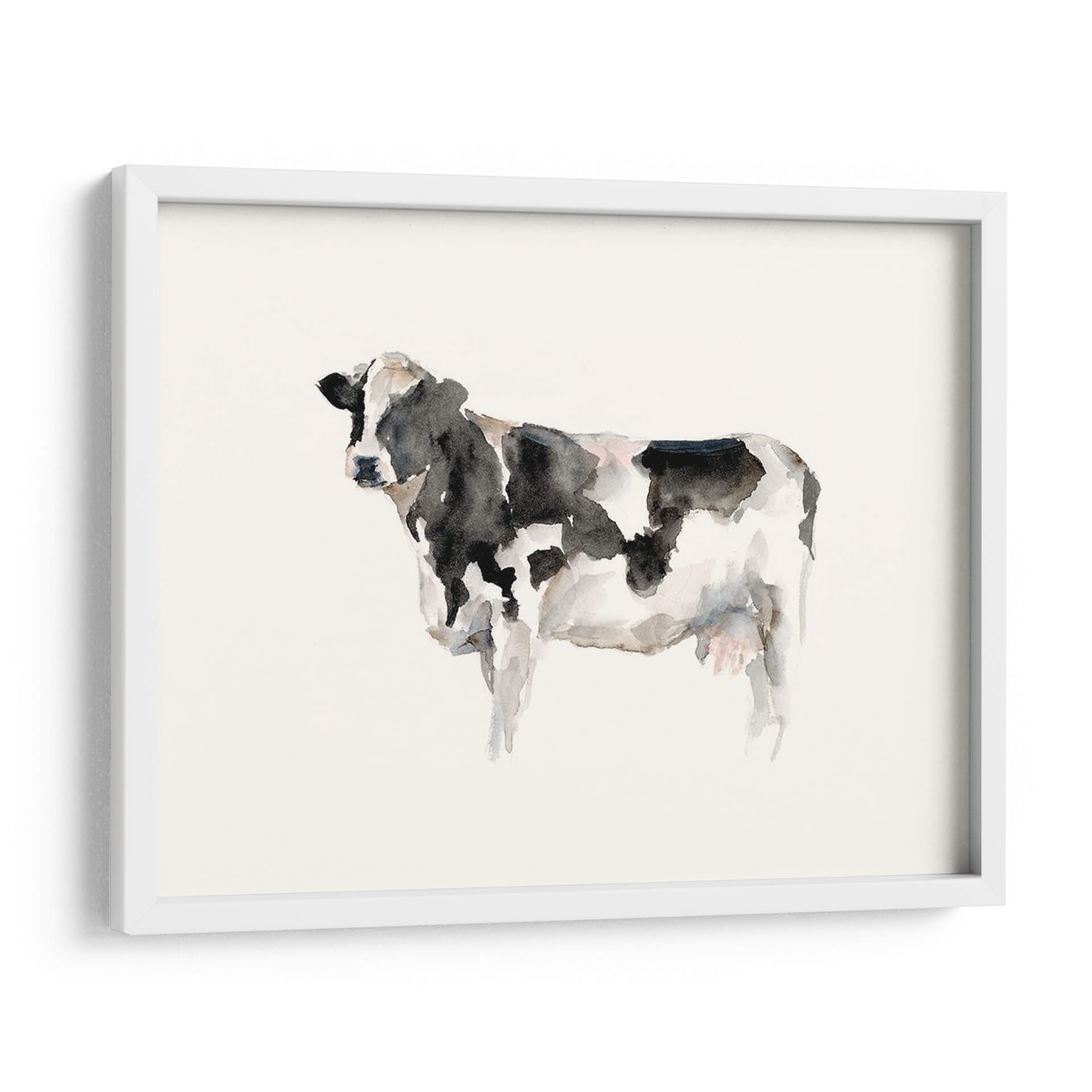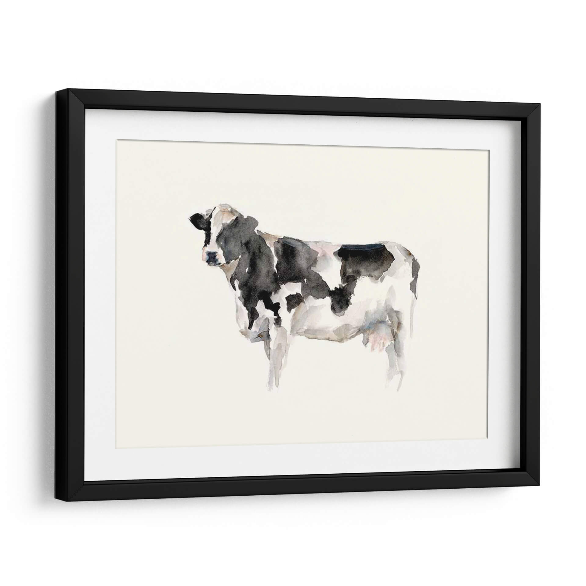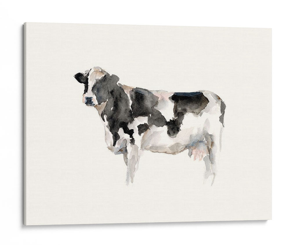 Este encantador cuadro decorativo de acuarela captura la esencia de la vida en la granja con una tierna representación de una vaca. El artista Ethan Harper utiliza una técnica de acuarela suelta y expresiva, donde las manchas de tinta negra y blanca se mezclan con sutiles toques de gris y rosa pálido, creando una textura rica y un aire etéreo. La composición minimalista, centrada en la figura de la vaca sobre un fondo neutro y claro, resalta la belleza sencilla del animal. Esta obra evoca una sensación de paz, autenticidad y conexión con la naturaleza, perfecta para añadir un toque rústico-chic a cualquier espacio. Ideal para dormitorios, salas de estar o cocinas que buscan un ambiente acogedor y relajado, este cuadro decorativo es una pieza versátil que aporta carácter sin abrumar. Transforma tu hogar en un refugio de tranquilidad con esta hermosa representación artística que celebra la serenidad del campo.