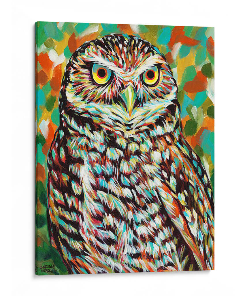 Captura la mirada penetrante y la vibrante personalidad de esta obra de arte única, "Fury Feather Friends II" de Carolee Vitaletti. Este cuadro decorativo presenta un retrato detallado y expresivo de un búho, ejecutado con una técnica impresionista audaz y una paleta de colores sorprendentemente rica. Las pinceladas sueltas y dinámicas dan vida a las plumas del ave, creando una textura visual fascinante que invita a la contemplación. Los tonos vibrantes de turquesa, naranja, amarillo y blanco se mezclan con marrones y negros profundos, generando un contraste cautivador que atrae la mirada hacia los penetrantes ojos amarillos del búho. La composición, centrada en el rostro del animal, otorga una sensación de intimidad y conexión. Esta pieza es ideal para añadir un toque de carácter y color a cualquier espacio, desde una sala de estar moderna hasta un estudio o dormitorio con un estilo ecléctico. "Fury Feather Friends II" no es solo una decoración de pared, es una declaración de estilo que evoca curiosidad y admiración. Descubre la magia del arte contemporáneo y transforma tu hogar con esta obra que combina la majestuosidad de la naturaleza con la audacia del arte abstracto.