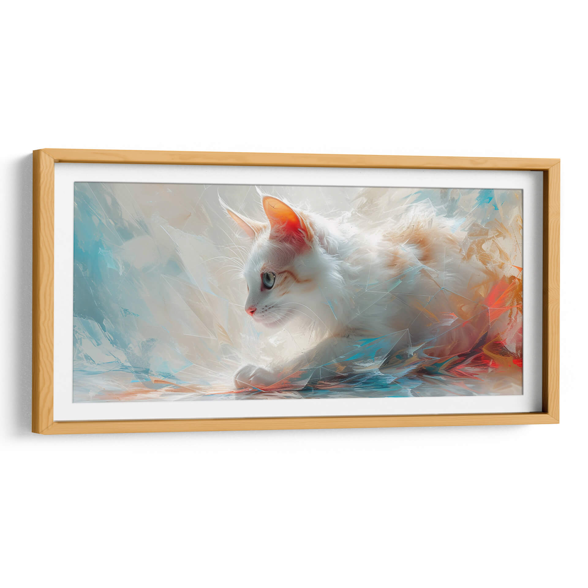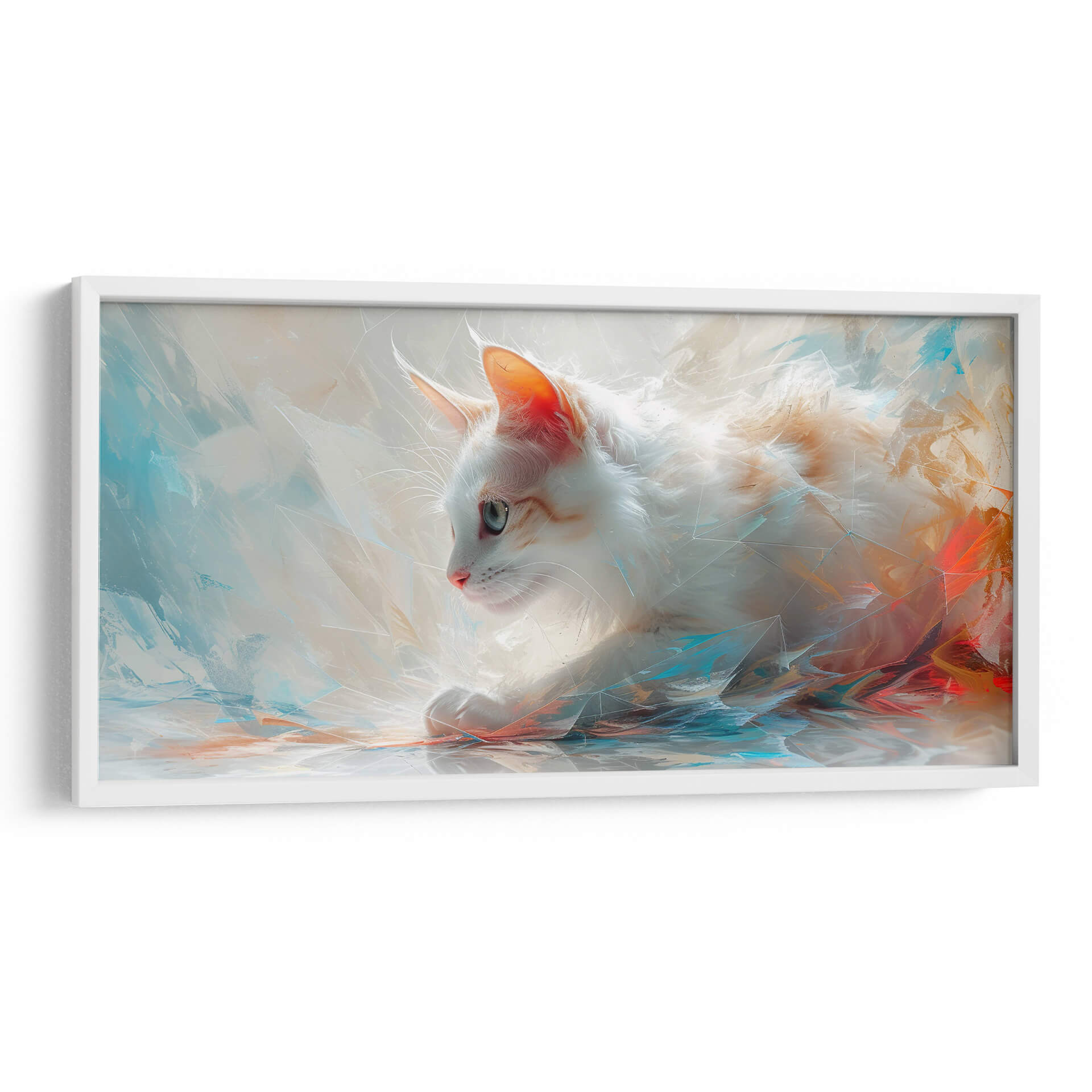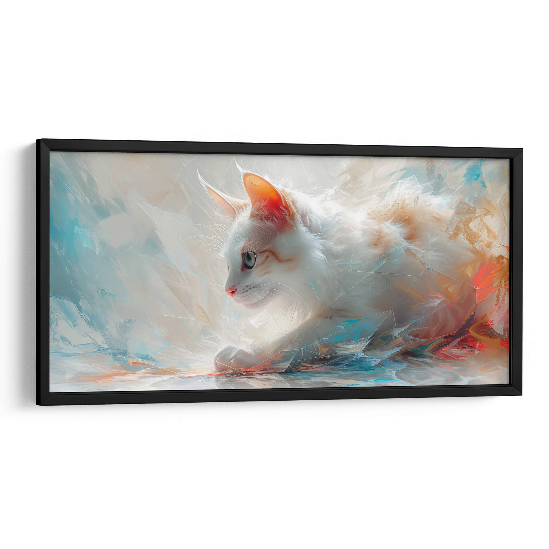 Sumérgete en la cautivadora belleza de "GATO 2", una obra de arte contemporáneo de Cecilia Flores que captura la esencia felina con un toque de abstracción vibrante. Este cuadro decorativo presenta un majestuoso gato blanco en una pose de observación, sus penetrantes ojos azules y sus delicadas orejas transmiten una mezcla de curiosidad y serenidad. La artista utiliza una paleta de colores que fusiona suaves tonos neutros con audaces pinceladas de azul turquesa, naranja y toques de rojo, creando un contraste dinámico que atrae la mirada. La composición, que juega con formas fragmentadas y texturas sugeridas, evoca una sensación de movimiento y energía, como si el gato emergiera de un torbellino de color. Ideal para quienes buscan añadir un punto focal elegante y enigmático a su hogar u oficina, este cuadro es una pieza versátil que puede complementar tanto decoraciones modernas como más tradicionales. "GATO 2" no es solo una representación de un animal, sino una expresión artística que despierta emociones y estimula la imaginación, transformando cualquier espacio en una galería personal llena de estilo y sofisticación. Descubre cómo esta pieza puede añadir vida y carácter a tus paredes.